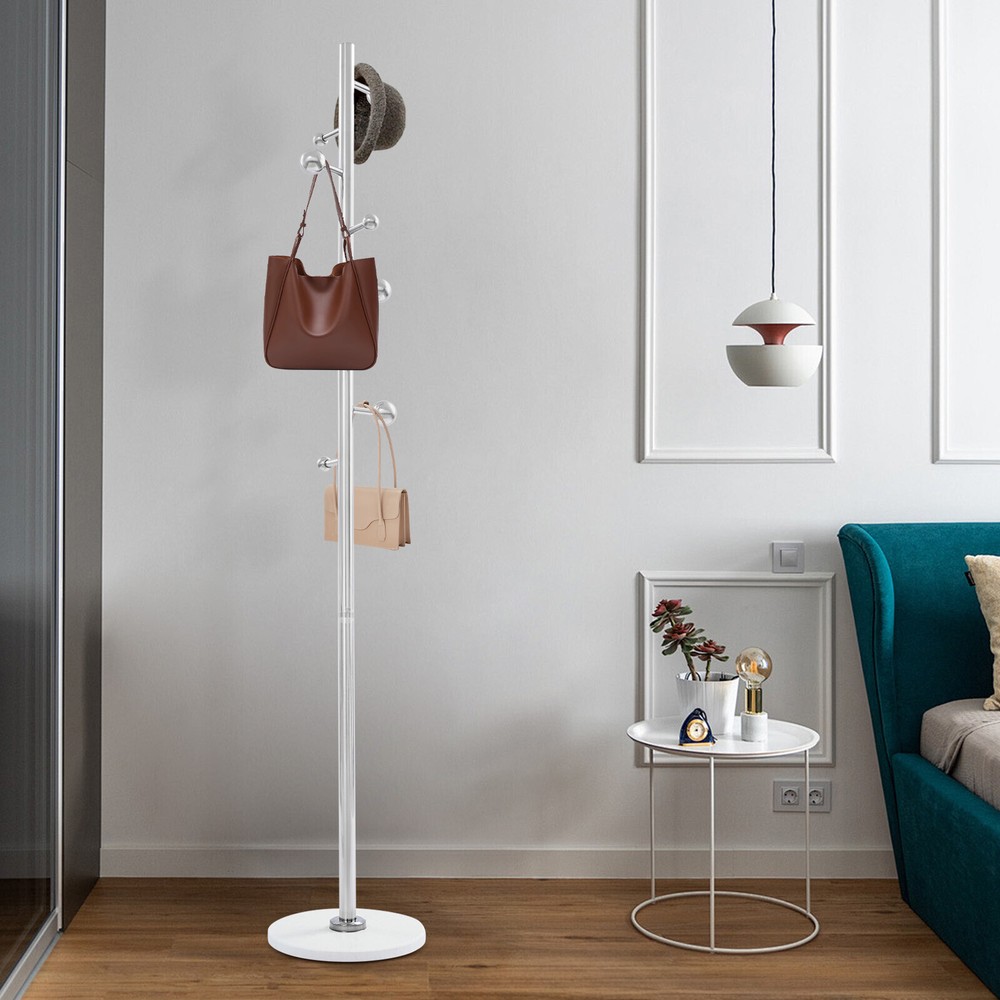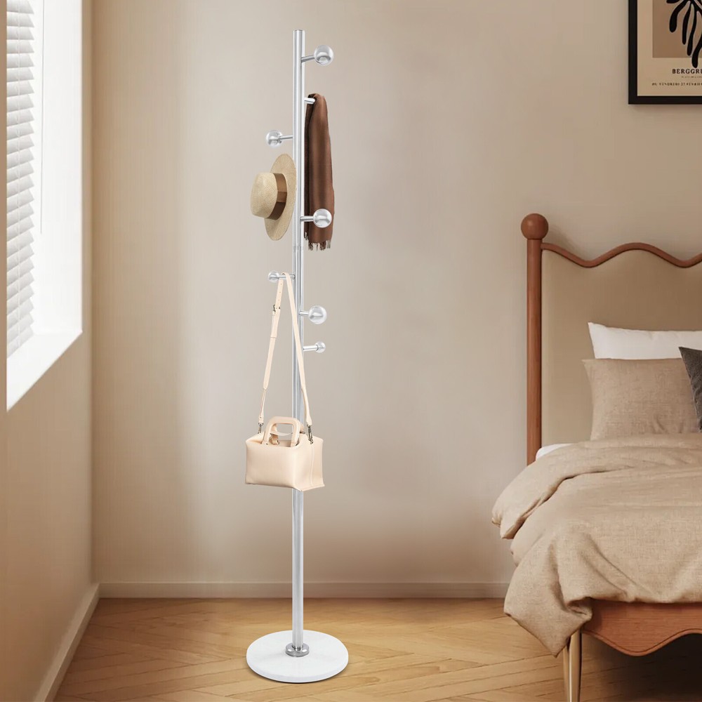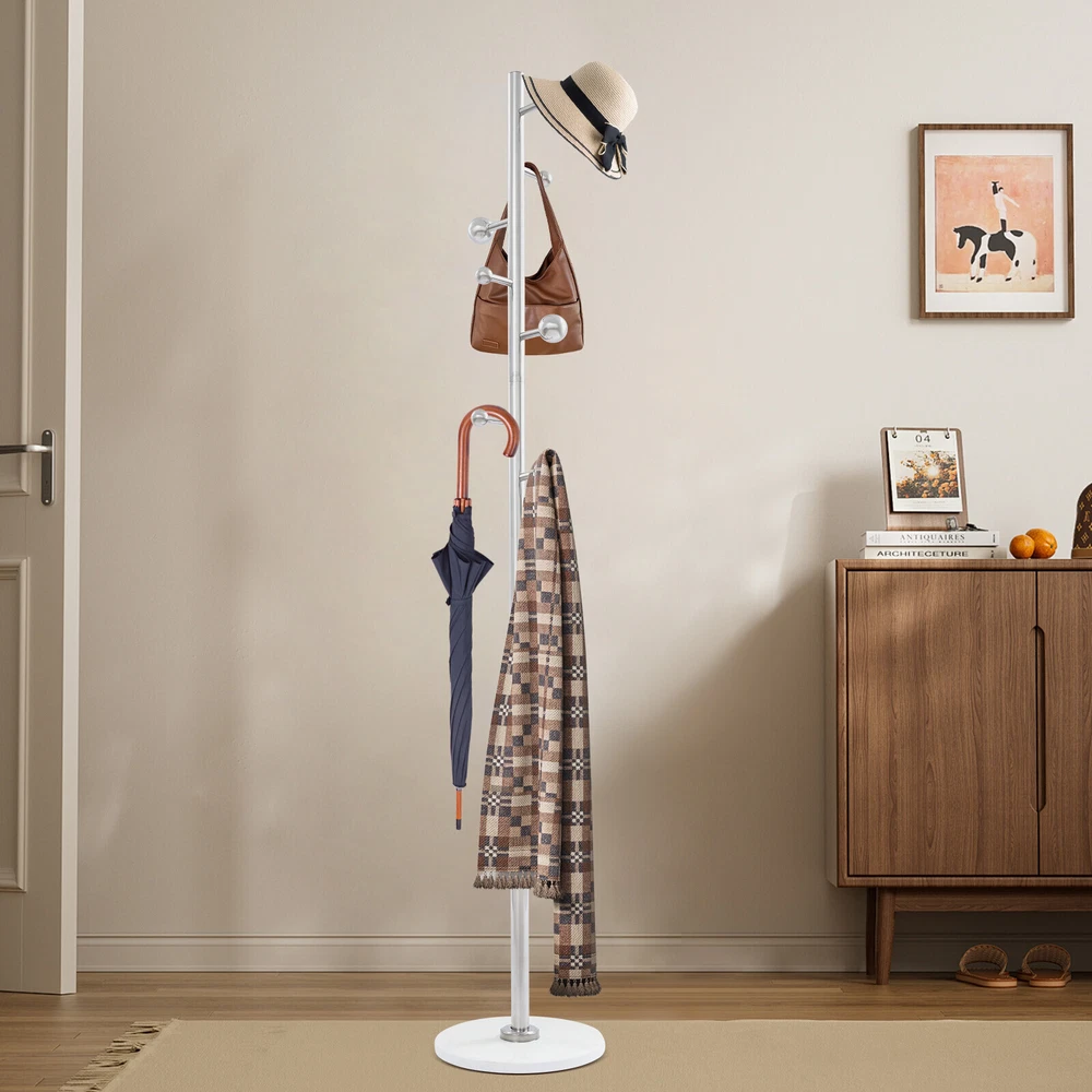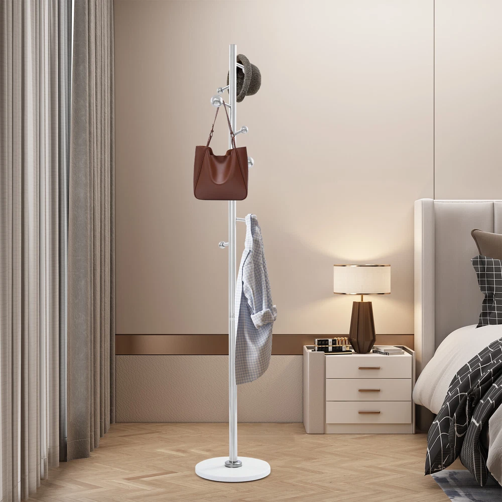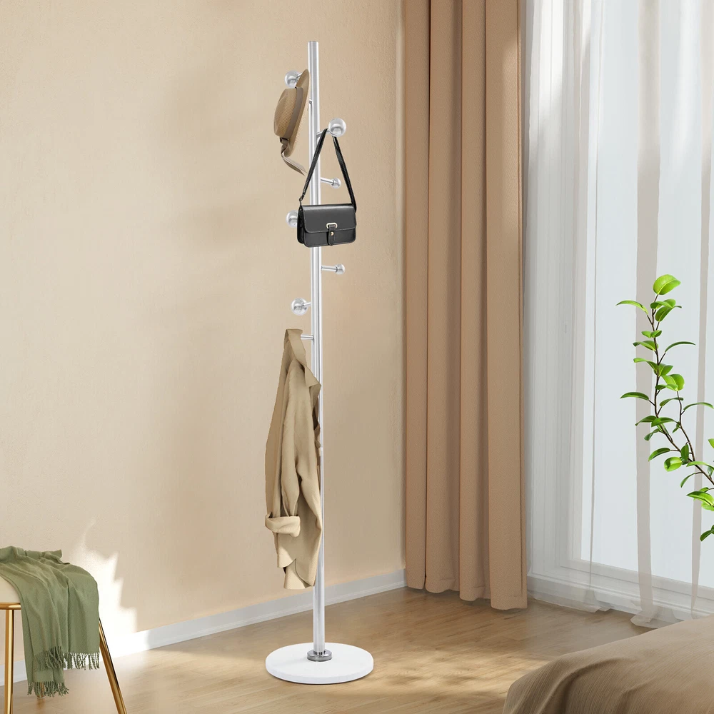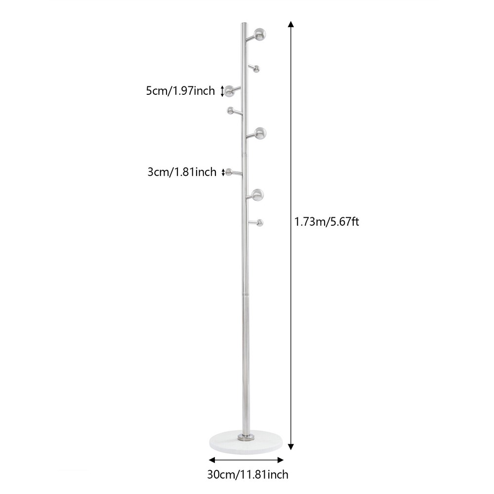 Application It is used in bedrooms, living rooms, hallways, foyers, offices, and small apartments to hang items such as clothes, hats, scarves, bags, umbrellas, skirts, and pants. Specification Color: White Style: Modern Material: Stainless Steel, Rock Slab Assembly Required: Yes Mounting Type: Free Standing Number of Hooks: 8 Spherical Hook Diameter: 3cm/1.18in, 5cm/1.97in Product Size(D*H): 30*173cm/11.81*68.11in Package Size: 60*40*7cm/23.62*15.75*2.76in Gross Weight: 4.7kg/10.36 lbs Net Weight: 4.46kg/9.83 lbs Package Included 1* Coat Rack Other Accessories for Installation Coat Rack For Entryway Freestanding Coat Stand Corner Coat Rack White 8 Hooks Welcom to yiyahahaho Description Are you still struggling with the clutter of clothing organization? Our coat rack can solve this problem well. It is made of high-class materials and fine craftsmanship and is a home storage boutique that combines practical functionality and artistic beauty. It is not only a suit rack but also a bright landscape in your home space, providing an elegant and practical habitat for your clothes, hats, scarves, and bags, and making your home more neat and orderly! Key Features Made to Last: It is made of premium stainless steel and rock slab materials and fine craftsmanship, which is scratch-resistant, rust-proof, sturdy, not easy to deform, and can withstand the test of time. Highly Stable: The thick materials, stable base for uniform strength, and sturdy main support rod make this product highly stable so that you can hang your clothing, bags, umbrellas, etc. with more assurance. Saving Space: It makes full use of vertical space with a small base footprint (11.81" in diameter) to fit rooms with limited space. Storage Assistant: It adopts a tree branch-shaped design, providing 8 hooks to give you enough space to hang clothes, bags, hats, scarves, etc. (not included), meeting your daily storage needs and making your home more tidy and beautiful. Aesthetic Appearance: The smooth lines, elegant silver, and staggered design of large and small ball hooks make it simple and fashionable, which can be well integrated into various styles of home decoration, enhancing the overall texture and style of the home. Simple Installation : You can easily install it without too much effort and time because of its simple structure and complete accessories. Easy to Clean: It has a smooth surface and an open structure, so you only need to wipe the dust or residue with a towel. Ideal Gift: With good performance and a modern appearance, it can be used as an ideal housewarming gift for parents, friends, and lovers so that they can also have a good clothing organization assistant. Customer Service: We stand behind all our guests and look forward to assisting you with your purchase. It is our pleasure to answer your confusion and questions. The end of the story between us is definitely not "we sell and you buy". Details Rounded Edge: The edges of the product are designed with rounded corners, better protecting your clothes and hands. Spherical Hook: It can prevent clothes hangers or bags from slipping, prevent clothes from being scratched, and improve the stability of hanging. Application It is used in bedrooms, living rooms, hallways, foyers, offices, and small apartments to hang items such as clothes, hats, scarves, bags, umbrellas, skirts, and pants. Specification Color: White Style: Modern Material: Stainless Steel, Rock Slab Assembly Required: Yes Mounting Type: Free Standing Number of Hooks: 8 Spherical Hook Diameter: 3cm/1.18in, 5cm/1.97in Product Size(D*H): 30*173cm/11.81*68.11in Package Size: 60*40*7cm/23.62*15.75*2.76in Gross Weight: 4.7kg/10.36 lbs Net Weight: 4.46kg/9.83 lbs Package Included 1* Coat Rack Other Accessories for Installation Notes Please note that items such as clothes and bags are not included in this product. Please allow the slight color difference caused by the shooting light and 1-3 cm error due to manual measurement, and make sure you do not mind before ordering. Payment Delivery details Terms of sales About us Contact us Payment We accept ebay payment 。 Fees such as import duties, taxes are not included in the item price or shipping costs. These charges are the buyer's responsibility. Delivery details Shipping: 2-9 working days to: USA Terms of sales We maintain high standards of excellence and strive for hundred percent customer satisfaction. Feedback is very important to us. We hope that you contact us immediately before you give neutral or negative feedback, so that we can address your concerns. It is impossible to address issues if we do not know about them! About us Your satis faction is our ultimate goal. We work hard to earn your trust and future business. Our certified technicians have tested each item before shipping. The unit comes with 1 year limited warranty on all manufacturing defects. a) If you receive a defective item, you may return it or ask for a discount. Please contact us within 14 days after you receive the package. b) What you returned must be intact and in its original packaging as re? u. Customer is responsible for shipping costs of the returned item. c) We will cover the cost of shipping back t with the shipping rate indicated in the registration page. We will send you a new unit or refund the full payment you paid. Thank you. Contact us Business Hour Business Hour: Monday To Friday: 8:30 AM to 5:00 PM (Beijing China time) Due to time zones, our reply to your questions may not be immediately. But within above working time, we will reply your email within 24 hours. If it's non-workdays, please kindly be patient and wait till Monday. Please contact us with ebay message. Please feel free to contact us if you have any questions. Monday To Friday: 8:30 AM to 5:00 PM (Beijing China time) Due to time zones, our reply to your questions may not be immediately. But within above working time, we will reply your email within 24 hours. If it's non-workdays, please kindly be patient and wa