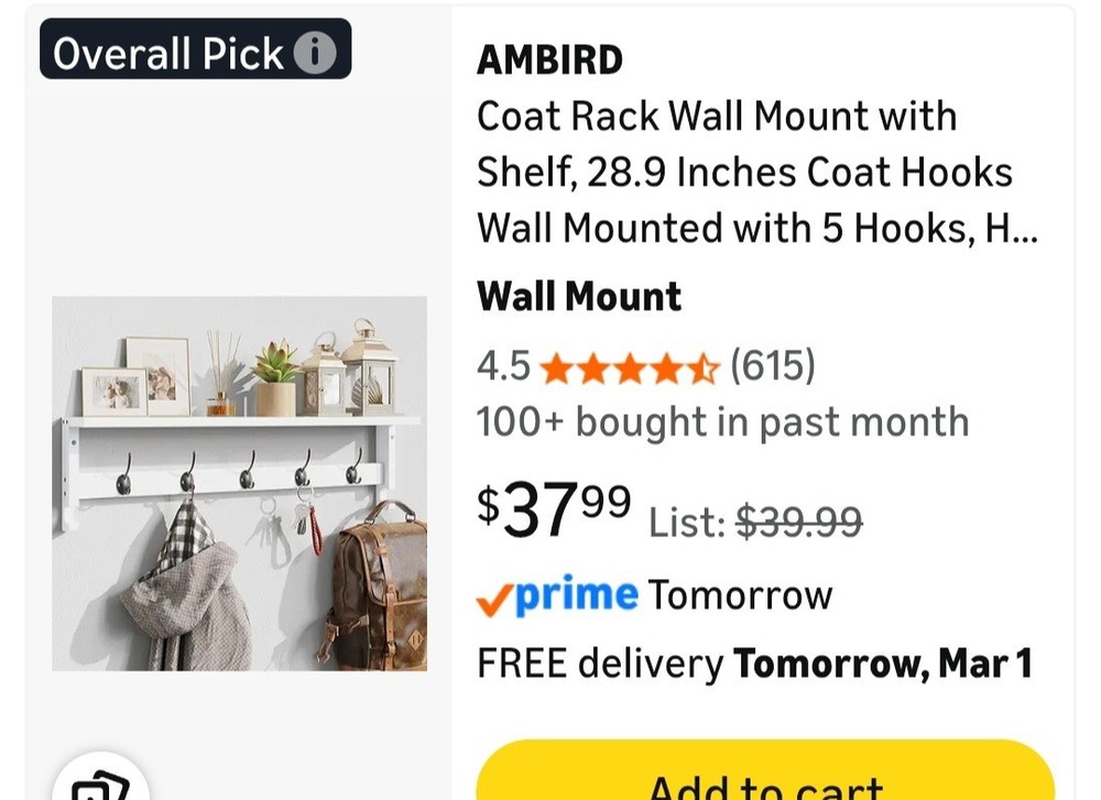 $ 18.76Wall Mount Hat Rack, Hat Storage Hanger, 3-Tier Wall-Mounted Hat Display Rack