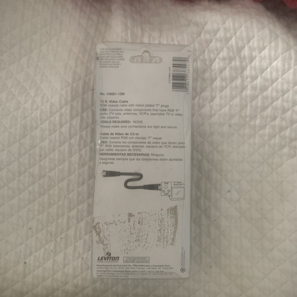 Coaxial Cable W/Nickel “F” Plugs RG6 12’ Leviton 013-C6851-12W