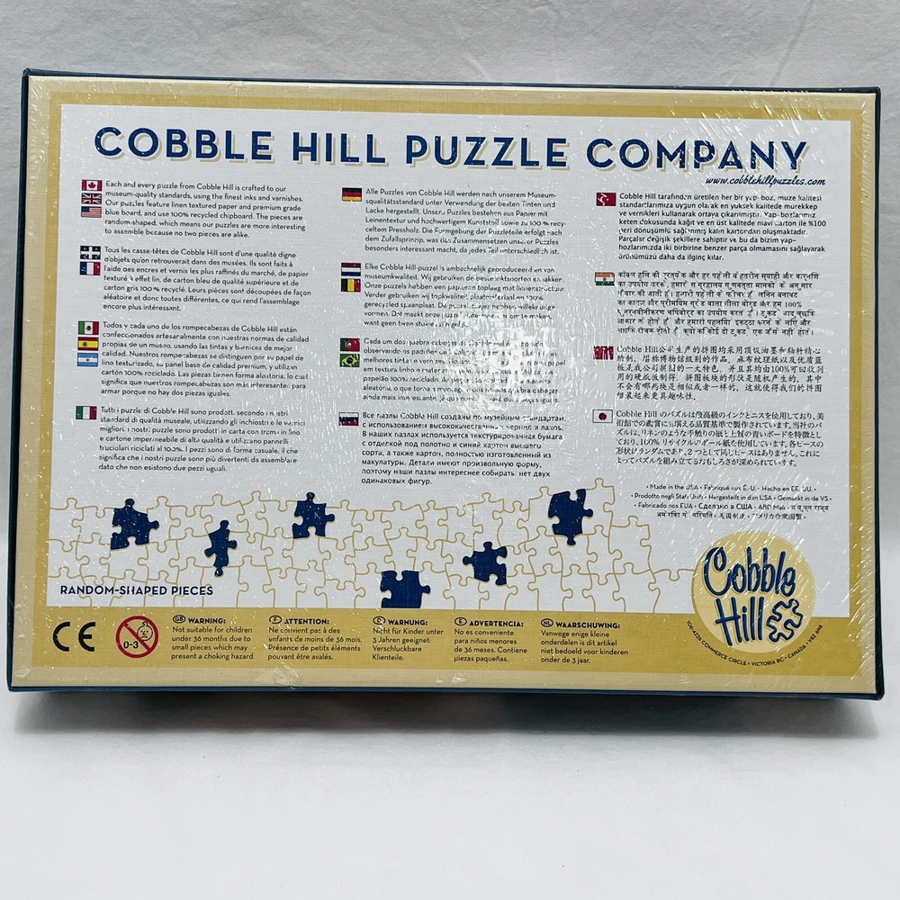 Cobble Hill used puzzle. Summer Horses. Poster included. There is a bend in one corner of box. See pictures for details. Also there is writing on the back of the box. This is also seen in pictures.