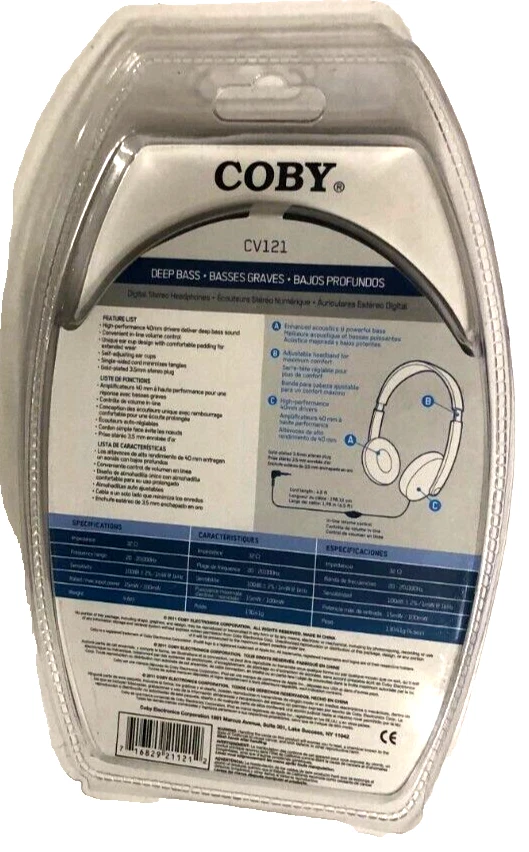 Vintage 90s Coby Electronic Corporation Model No. CV121 Black / White Deep Bass Digital Stereo Headphones (1991) Condition: New. Old stock