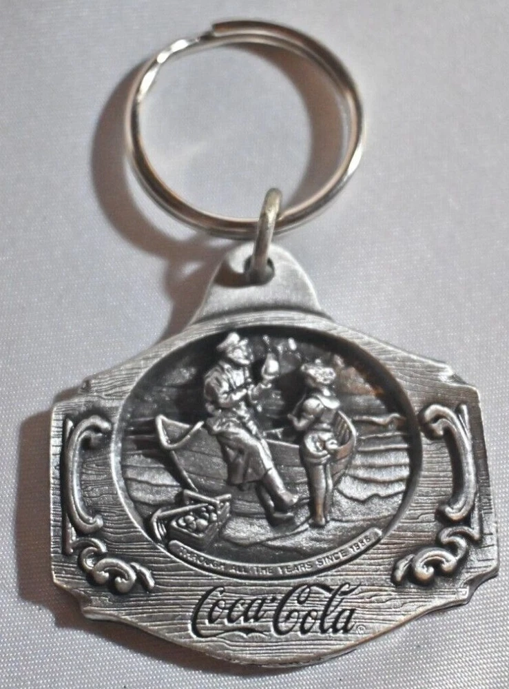 Choice of 5 Coca Cola metal key rings: 1. CC Refreshing & Delicious - Atlanta, GA; measures approximately 1 7/8 inches x 1 3/8 inches 2. CC Tiffany Lamp; measures approximately 1 inch x 1 1/2 inches 3. Boy fishing with dog (Rockwell); measures 1 1/2 inches x 1 5/8 inches; 1990; pewter 4. Through All the Years; measures approximately 1 1/2 inches x 1 5/8 inches; 1990; pewter 5. Birmingham Coca Cola Bottling - 5th Cola Clan Convention, Houston, TX August 1-3, 1979 This is from an extensive estate collection of Coca Cola collectibles that I am helping to liquidate. I am not an expert on Coca Cola branding by any means. If I have misrepresented an item, please send me a message so I may correct it. Please look in my store for additional Coca Cola items, or ask if you do not see what you are looking for, as it will take a while to list it all!!! Thank you! JE2287