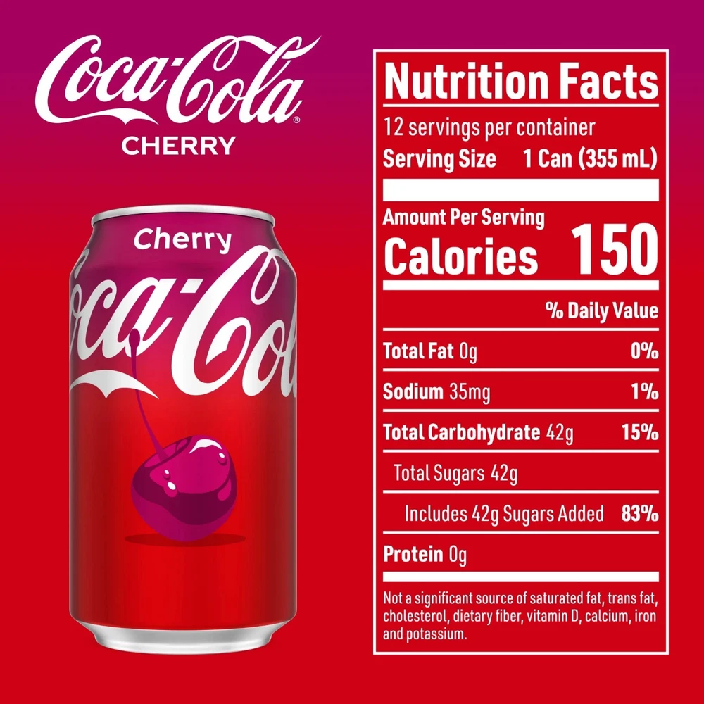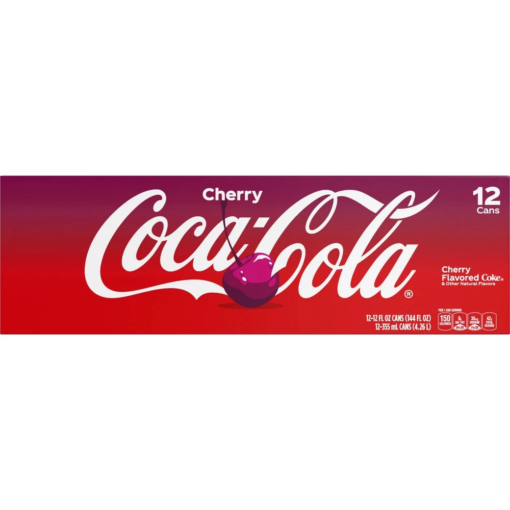 Coca Cola Soda Pop Cans. Item description from the seller: Coca-Cola Cherry is cola, with a little extra fun. Same fizzy, bold taste you love, but with a cherry twist that makes every sip unforgettable. It's the kind of flavored soda that turns ordinary moments into something a little more exciting. Call it a refreshing drink ,with personality. It's bubbly, bright, and always ready to bring the good vibes with every sip. This cherry soda knows how to show up. Picture it next to your favorite burger, a pile of salty fries, or a slice of that cheesy pizza you can't resist. It's the sparkling drink that fits right in at backyard BBQs, birthday parties, or just kicking back on the couch. You hear that fizz when you pour it over ice. That's the sound of something delicious waiting to happen. Coca-Cola Cherry is a crowd pleaser, a conversation starter, a reason to smile. Share it with friends, keep it stocked in the fridge, or sip it solo when you need a little joy. Cherry flavored, fizzy, and endlessly refreshing,this is cola turned up a notch. Enjoy the crisp and refreshing taste of Coca Cola Cherry soft drink, the iconic soda, that refresh taste buds. Crisp, bubbly, and endlessly refreshing this sparkling soda pop delivers bold cherry cola flavor, that's always just right. Perfect for BBQs, pizza nights, or kicking back ,with friends Cherry Coke is the fizzy drink, that fits every occasion. A carbonated caffeine drink to enjoy chilled ,for maximum refreshment. 12 fl oz cans of Coca Cola Cherry soda, a soft drink crafted, for celebrations, family dinners, and any moment you want to bring people together.