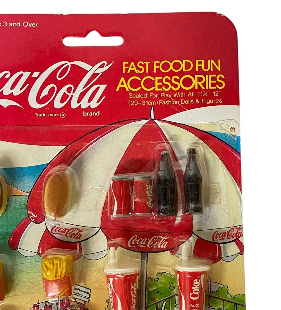 Coca-Cola Fast Food Fun Accessories VTG 80's New & Sealed No. 4037 BBI Toys 1986 ITEM: 1986 Coca-Cola Fast Food Fun Accessories SPECIFICS: No. 4037 BBI Toys 1986 ***PC monitors vary, take that into consideration when viewing photos CONDITION: vintage new & sealed with minor self-wear POSTAGE: Sent with Standard Parcel Delivery with tracking provided. Postage cost is made up of a handling fee, packing fee and postage materials. There is a same day or a two-day handling time on all items.