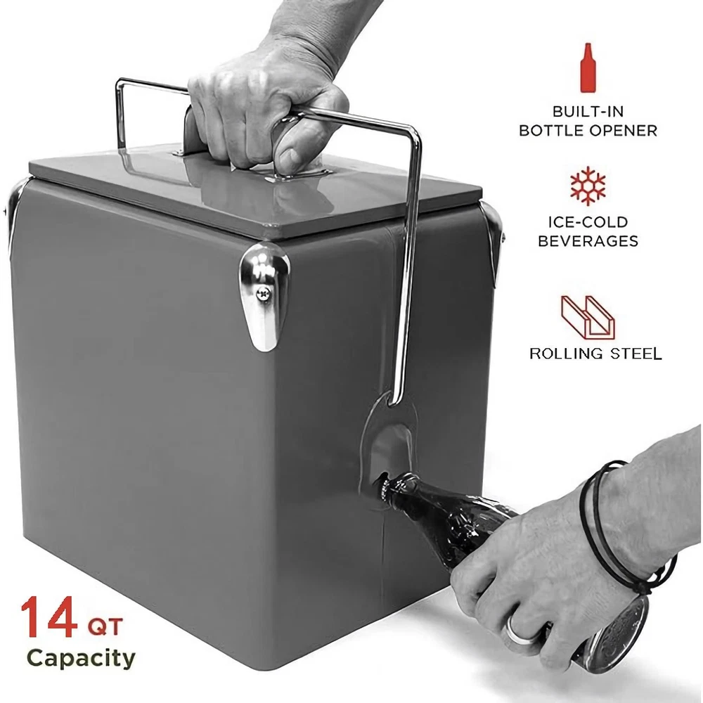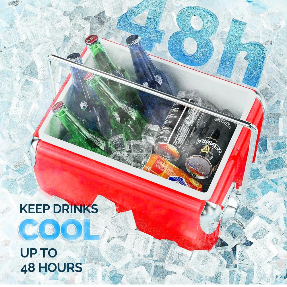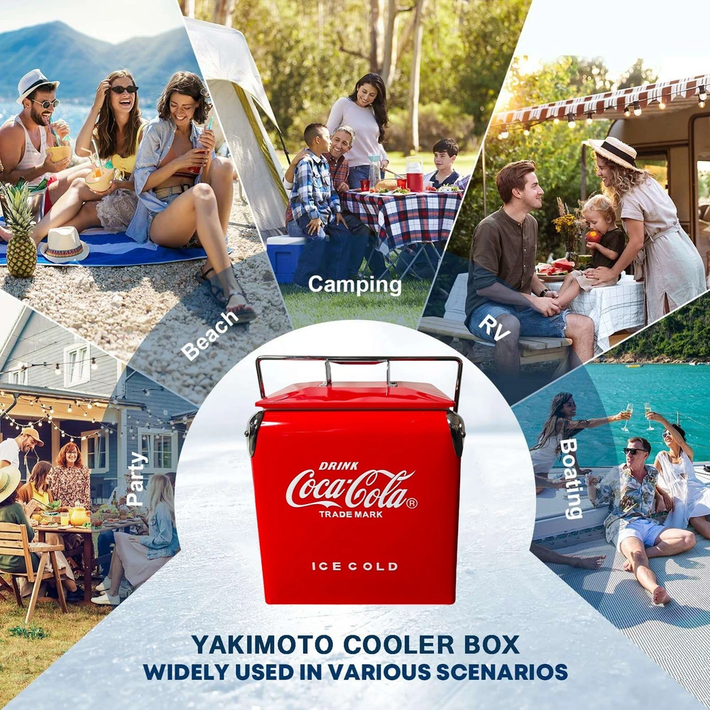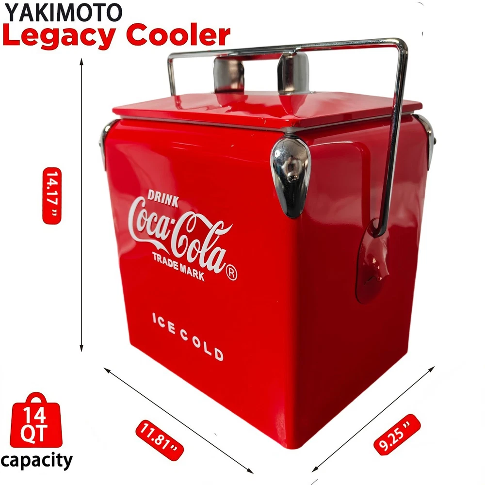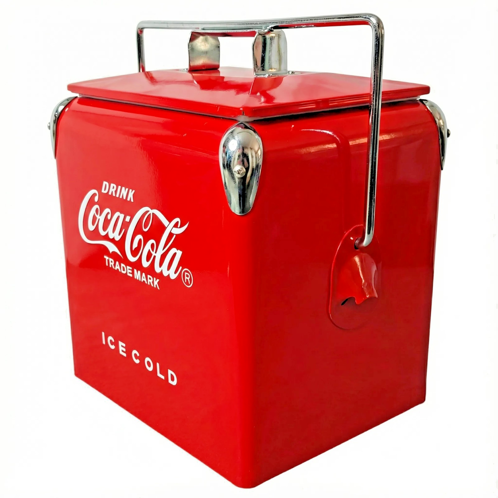 Coca-Cola Vintage Metal Ice Chest Cooler 13L (14Qt),Portable Outdoor Ice Bucket
