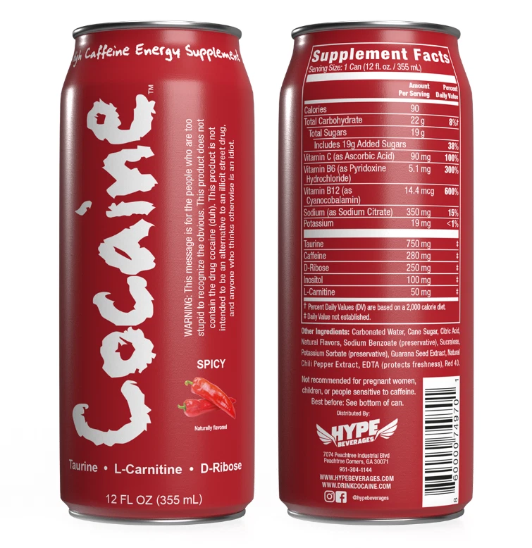 Fuel your day with the bold intensity of Cocaine Energy Supplement! This high-caffeine energy drink delivers a powerful boost with an exciting spicy kick, perfect for those who need an extra edge. Each can is packed with potent energy-boosting ingredients to help you stay alert, focused, and energized throughout your day or workout. Product Features: High Caffeine Formula: Packed with premium caffeine to supercharge your energy levels. Spicy Flavor Kick: A unique and bold spicy flavor that sets this drink apart from the rest. Powerful & Quick Energy: Feel the effects instantly and experience sustained energy without the crash. Whether you're powering through a long workday, hitting the gym, or need a pick-me-up for an all-nighter, Cocaine Energy Supplement is your go-to choice for maximum energy and excitement in every sip. Get ready to ignite your senses!