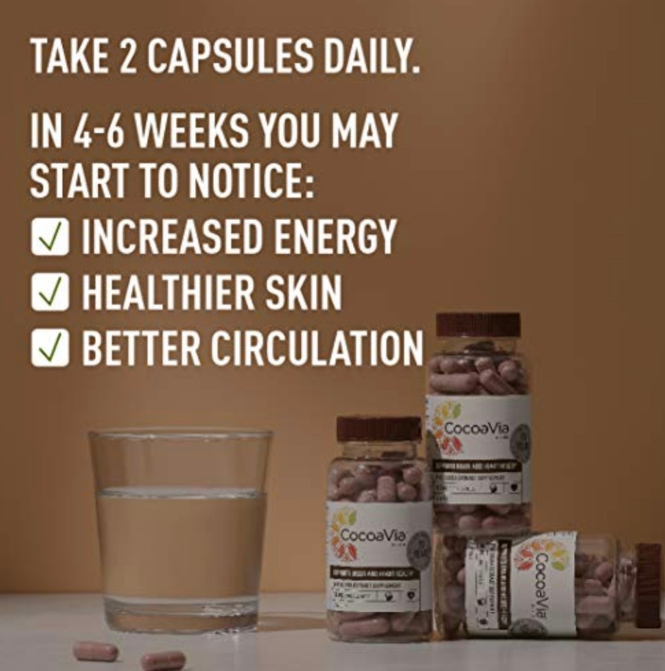 CocoaVia Heart & Brain Supplement, 60 Day, 450 mg Cocoa Flavanols, Memory & Circ Brand: CocoaVia Color: 450mg Features: BACKED BY SCIENCE: Includes the clinically proven ingredient Cocoa Flavanols for long term heart & cognitive health; Contains the same Ingredient Cocoapro as the Harvard led COSMOS study. Backed by over 20 years of scientific research. SUPPORTS CARDIOVASCULAR HEALTH: CocoaVia supplements help maintain healthy blood vessels and flexible arteries to increase blood flow for more energy and vitality. COGNITIVE SUPPORT & NITRIC OXIDE SUPPLY BOOSTER: Cocoa flavanols naturally increase nitric oxide levels, which help deliver essential oxygen and nutrients to your whole body. By improving circulation, CocoaVia helps to nourish your brain for better cognitive function CONTAINS CAFFEINE: 20 mg naturally occurring caffeine per serving. Each serving (2 capsules) contains 450 mg of cocoa flavanols, the plant-based nutrient derived from cocoa beans. Cocoa flavanols work best when taken daily. We recommend consuming with food for maximum benefit QUALITY: CocoaVia's highly concentrated extract contains 5 times more cocoa flavanols per serving than the leading dark chocolate bar and 15 times more cocoa flavanols than the leading cocoa powder Binding: Health and Beauty Release Date: 22-08-2019 Part Number: B07WV68RQL Details: Introducing our new & improved CocoaVia capsules – now with 20% more cocoa flavanols per serving! The cocoa flavanols in CocoaVia have been scientifically shown to improve cognitive function and cardiovascular health by promoting healthy blood flow. By supplying high levels of oxygen and nutrients to your heart and brain, our supplements help you look and feel your best from the inside out. Each serving (2 capsules per serving) contains 450 mg of cocoa flavanols, the powerful plant-based nutrients derived from cocoa beans. Taken daily, CocoaVia heart and brain health supplements can ensure you're performing at your best, every day. EAN: 0850487002482 Package Dimensions: 4.2 x 1.9 x 1.8 inches CocoaVia Heart & Brain Supplement, 60 Day, 450 mg Cocoa Flavanols, Memory & Circ Shipping We offer fast and reliable shipping. Most items are carefully packaged and shipped within 1–2 business days. Please note that we do not ship on weekends (Saturday and Sunday). Contact Us Customer satisfaction is very important to us. If you have any issues with your order, please contact us first. We will do our best to resolve the issue promptly. We usually respond within 24–48 hours. Visit Our Store Please visit our eBay store to see more items in the Vitamins & Minerals category. Thank you for shopping with us.