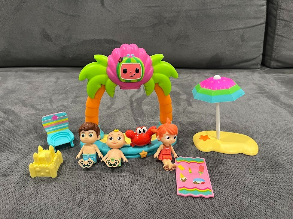 This limited-time deal offers a 4 items from the beloved show Cocomelon. Perfect for little fans (12-36 months) of the popular cartoon and TV character this mixed lot includes a variety of figures and accessories that will provide endless hours of imaginative play. With its detailed design and vibrant colors, this playset is sure to delight children and adults alike. Whether you're looking to enhance your child's toy collection or relive your own childhood memories, this Cocomelon playset is a must-have. Don't miss out on this amazing opportunity to own a piece of nostalgia! - Cocomelon Family Beach Time - Cocomelon Deluxe Clubhouse Playset - Cocomelon BooBoo Deluxe Feature Plush - Cocomelon Deluxe Family House playset