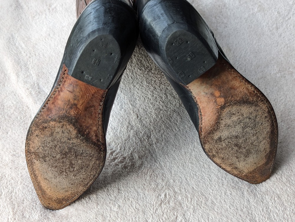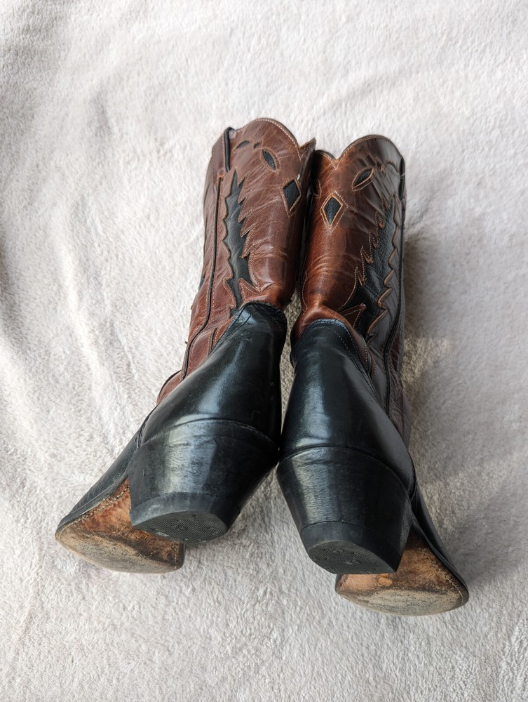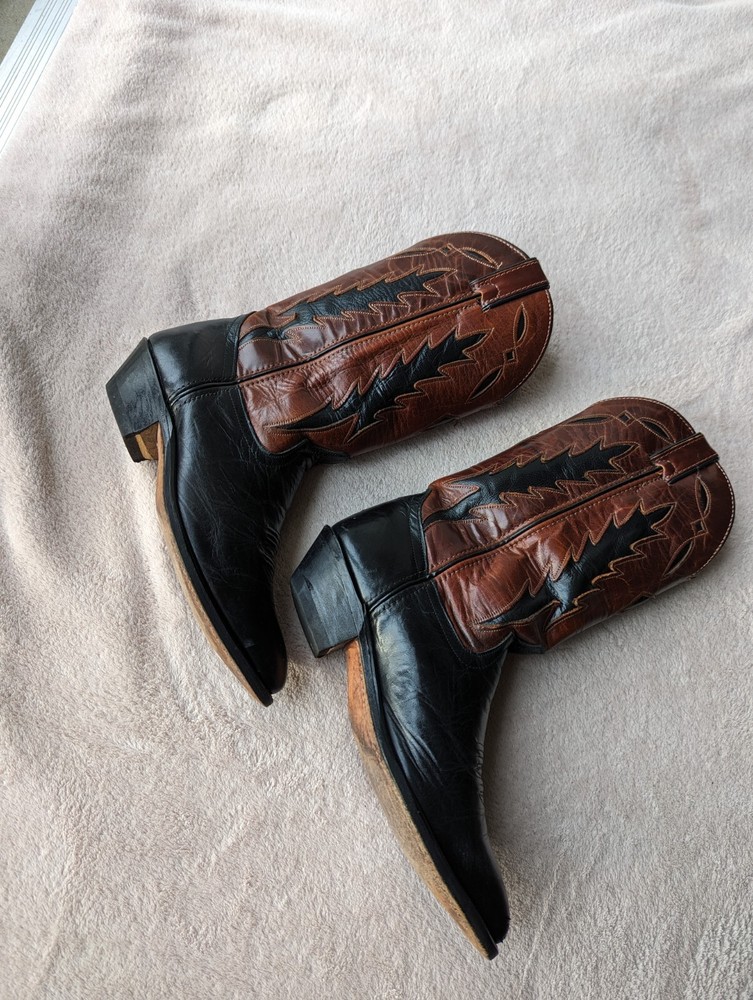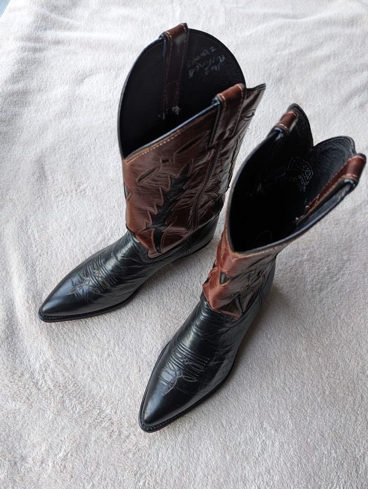 Women's Code West all leather black with brown size 6.5 US cowboy cowgirl Western boots. Well cared for. Heel & sole in good condition. Purchased new in 1993 in TX. Returns not accepted.