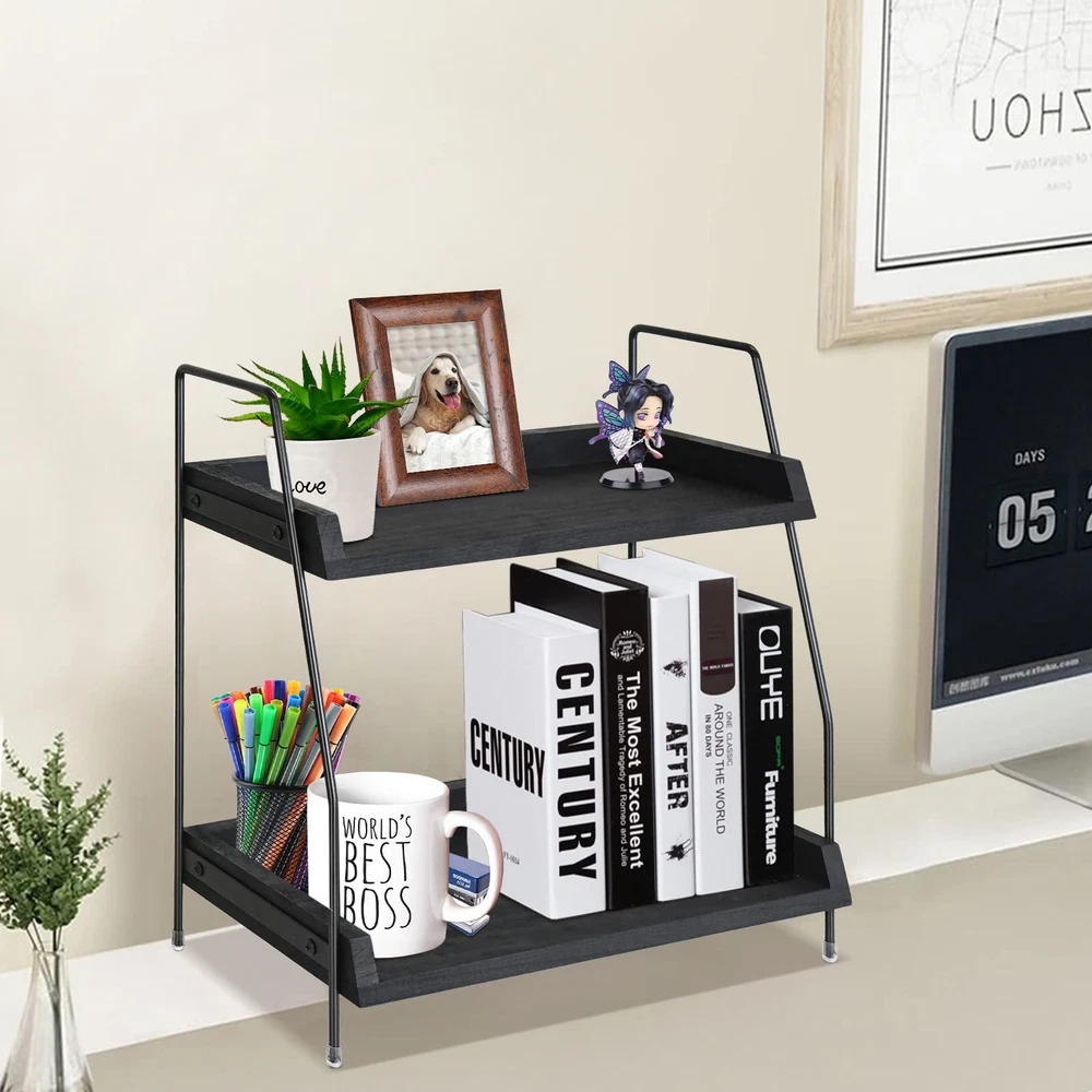 【MULTI-PURPOSE COUNTERTOP SHELF】2 tier design allows enough space to hold paper cups, coffee cups, tea bags, coffee bags, sugar packets, cookies, napkins and anything that needs to be organized. Also,It can be used as a condiment and spice rack organizer to store condiments, spices, cans and kitchen supplies in the kitchen ;btw, It can be used as a bathroom coutertop organizer to store bath towels, lotions, cosmetics and shampoo in the bathroom. 【COFFEE BAR ORGANIZER COUNTERTOP】This 2-tier coffee bar holder is perfect for storing coffee beans, sugar, instant coffee or coffee cups.Add more space to your pantry, kitchen, or dining room to store beverage condiments including creamer, sugar, coffee packets, ketchup mustard packets, and salt pepper packets, as well as cups, bowls, spoons, and more wait. The top shelf measures 14.6x6.4'', bottom shelf measures 14.6x7.6'' and the total height is 15”. Please enjoy your coffee time with it! 【BUILT TO LAST & SPACE SAVING】Are you troubled with the messy countertop due to coffee beans, kcups, cups and straws? Don't worry, our upgraded coffee rack can solve all of the problems. This coffee bar shelf organizer is made of metal and solid wood, lightweight and sturdy. The two-level design allows you to make better use any countertop or coffee area, perfect for the kitchen, office,breakroom, or catering, allowing you to find what you need at a glance. 【AMAZING GIFT IDEA】Best gift idea for parents, wife/ husband, daughter and friends. This coffee station organizer shelf with great looking, practical and amazing quality is a great gift for coffee lover on housewarming, Thanksgiving day, Christmas or birthday party, bringing a rustic and elegant atmosphere to any room.Perfect storage for countertop or table where space is limited. It is the best choice to save space and solve storage problems. 【EASY INSTALLATION & SATISFACTORY SERVICE】This countertop organizer is easy to install and clean.You will complete the installation within 5 minutes. Nothing matters more than your utmost satisfaction! We stand behind the quality and durability of our bathroom counter organizer. With our 100% Customer Satisfaction Guarantee, you can be sure of a great buying experience. Please feel free to contact us in case of any order-related issues. We will reply to you within 24 hours.
