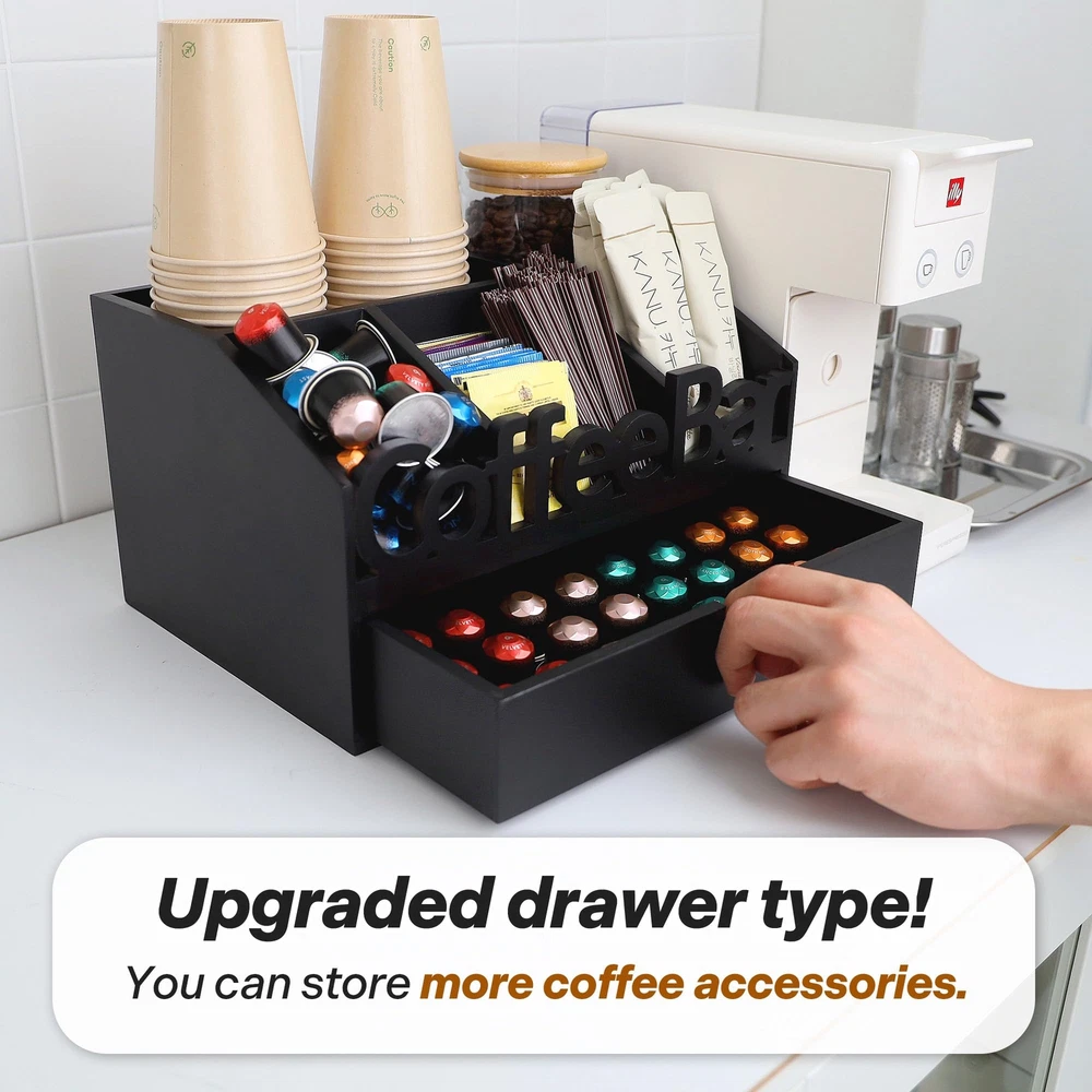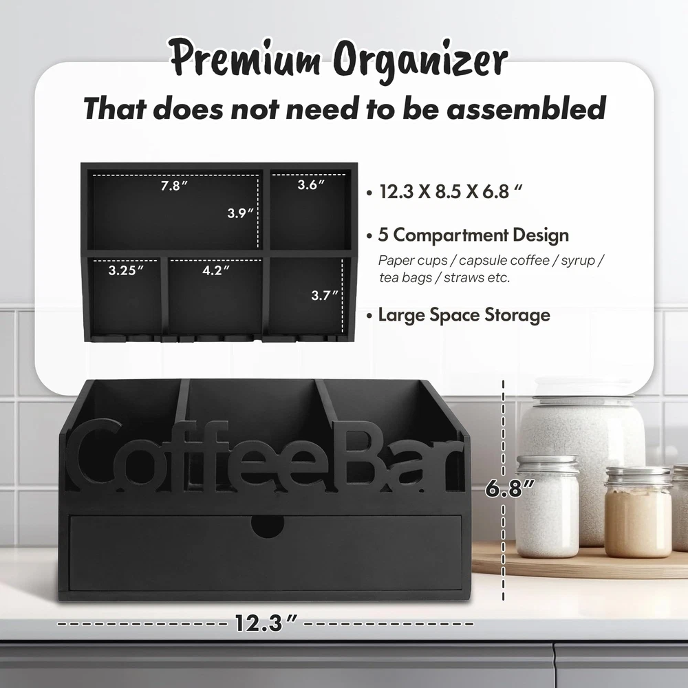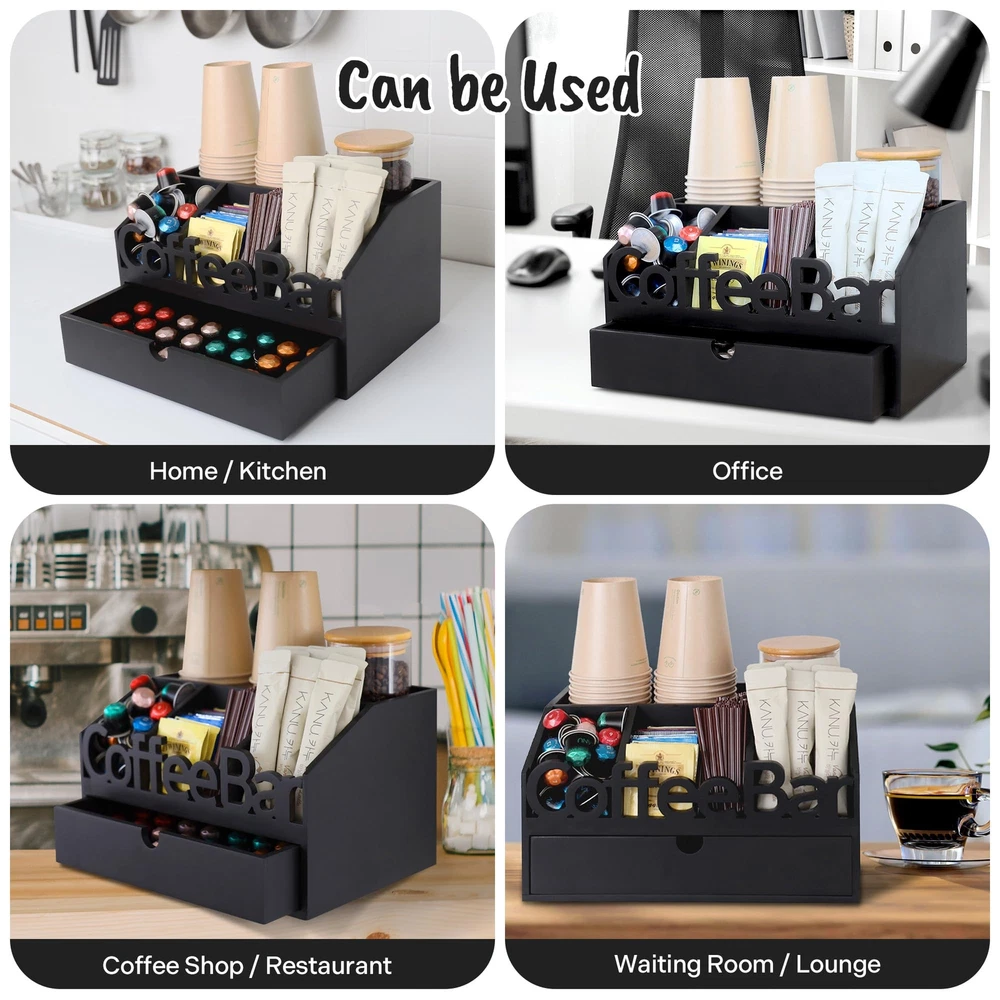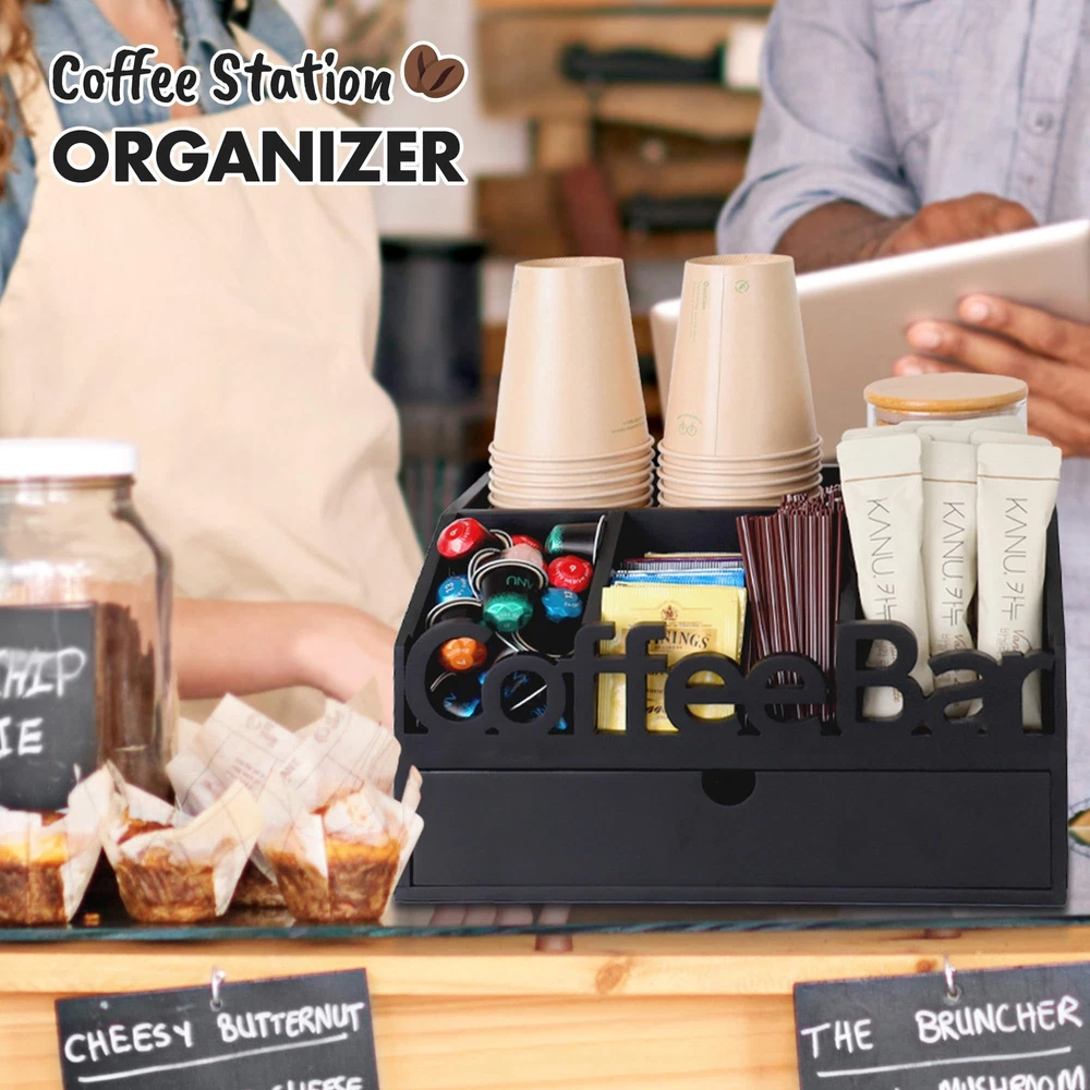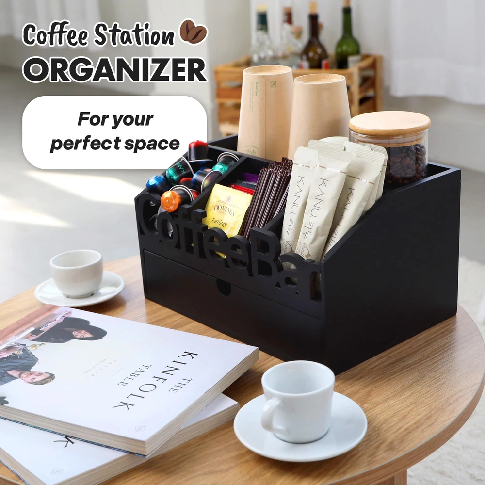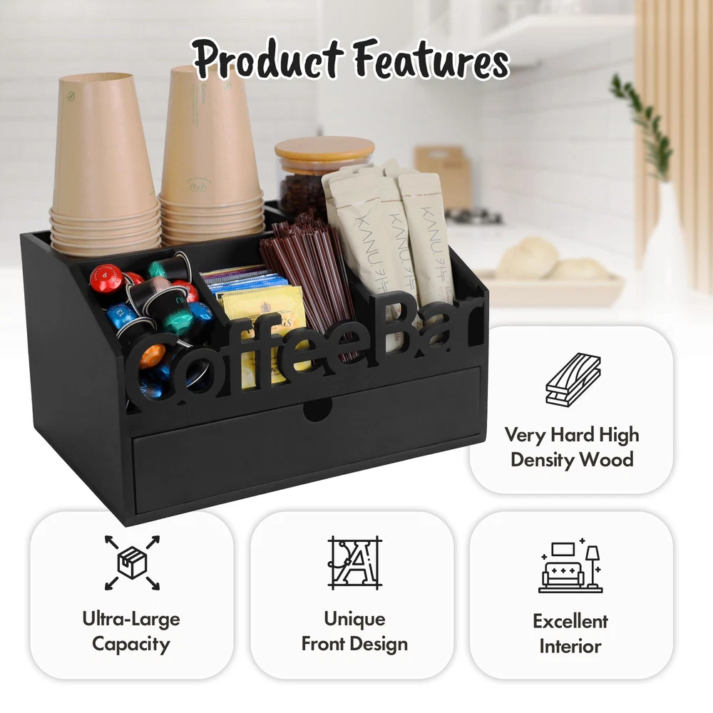 ADDFIT HOUSE Coffee Bar Organizer for Countertop - Wooden Coffee Organizer Station, Coffee Station Organizer for Home & Office, K Cup Stand for Counter, Coffee and Tea Organizer - Black Drawer Type U.S. Patent Pending ORGANIZE YOUR COFFEE BAR: The ADDFIT HOUSE Coffee Bar Organizer is the perfect solution for keeping your coffee area neat and tidy. This coffee station organizer for countertop fits perfectly in any kitchen, home, or office setting. VERSATILE COFFEE ORGANIZER: Featuring multiple compartments, this coffee organizer station can hold K cups, tea bags, sugar, and more. Use it as a coffee tea station organizer to keep all your coffee and tea essentials in one place. HIGH-QUALITY MATERIALS: Made from 100% solid wood, this coffee bar organizer is sturdy, odorless, and designed to last. The elegant design complements any decor, from modern to rustic farmhouse. MULTIFUNCTIONAL DESIGN: This coffee organizer station for countertop includes a drawer for extra storage, making it a coffee drawer organizers and storage solution. Use it to store your coffee pods, tea bags, stir sticks, and more. PERFECT FOR ANY SETTING: Ideal for use as a snack bar station, K-cup coffee station, or coffee station organizer for home. The sleek design ensures it fits seamlessly into any environment, enhancing the look of your coffee bar. KEEP EVERYTHING IN PLACE: With its large capacity, this coffee pod organizer for countertop can hold a significant number of pods, keeping your coffee bar organized and your favorite brews within reach. EASY ACCESS AND STORAGE: The ADDFIT HOUSE Coffee Organizer ensures easy access to all your coffee accessories. Whether you need a coffee k cup holder for countertop or a K-cup organizer station for countertop, this organizer has you covered. STYLISH AND FUNCTIONAL: The coffee and tea organizer design is both stylish and functional, making it a great addition to any kitchen or office coffee station. The compact size makes it perfect for small spaces and small house storage ideas. IDEAL GIFT IDEA: This coffee station organizer for countertop makes a great gift for coffee lovers. It's perfect for housewarming, birthdays, or any special occasion. SHIPPING - We offer FREE shipping on all orders! - We ship within 3 business days of payment, usually sooner - We use a selection of shipping services such as UPS, FedEx, USPS etc - We only ship to the lower 48 states, no APO/FPO addresses or PO Boxes allowed International buyers – please note: Import duties, taxes, and charges aren't included in the item price or postage cost. These charges are the buyer's responsibility. - Please check with your country's customs office to determine what these additional costs will be prior to bidding or buying. - We have confidence in our products, but if you are not fully satisfied please contact us within 30 days of purchase and you will get full refund. * Order Cancellation Policy ** You can return a product for up to 30 days from the date you purchased it. 1. The seller reserves the right to cancel the special case only due to eBay cancellation fee. 2. The decision of seller is the final. 3. The seller will respond to the cancellation request within 2 business days. Please wait for the result of cancellation. 4. In case the cancellation is not completed by some reasons, the buyer can follow the options below to get the refund. 4.1 The buyer can reject the item when it arrives. 4.2 The buyer can send the item back to the seller within 30 days If the buyer receives item (USA Shipment ONLY). The seller will provide the FREE return label to the buyer when the buyer opens " Return Item" case on eBay by using the reason as "Change my mind" ONLY. 5. When buyer has placed the order. The order will be processed and completed by automatic warehouse system within 5 minutes. In case that buyer sends the cancellation request after 5 minutes of placing the order, the request will be rejected. **Sending direct message to cancel the order is not allowed for every case.* Return Policy For the return case - If buyer would like to return the items for refund or replacement, please CONTACT SELLER to receive the free return label from seller. The refund or replacement will be processed with the tracking number of return label which is provided by seller only. The other ways of return which are not approved by seller will not be processed for the refund or replacement. CUSTOMER SERVICE - We try our best to make sure every customer is completely satisfied. - If there's a problem, feel free to message us! - We're happy to help.