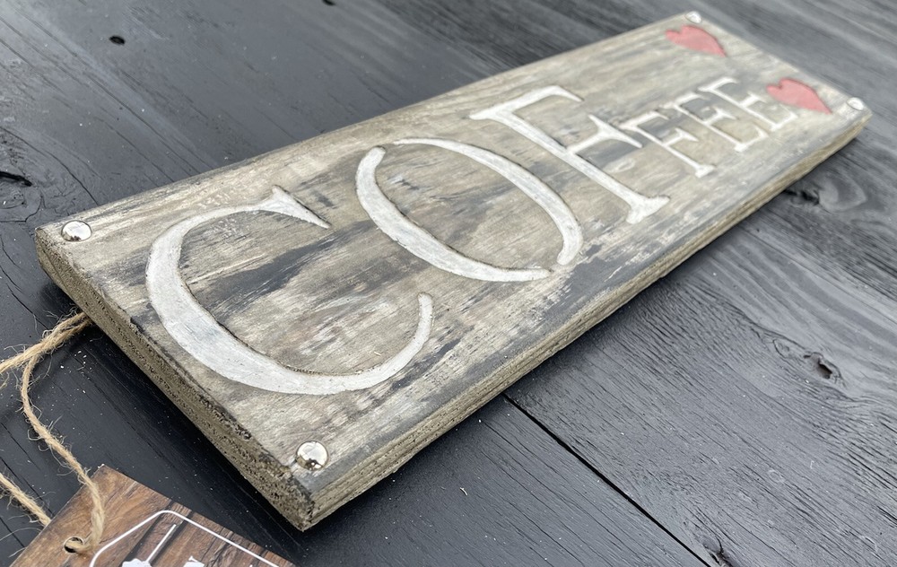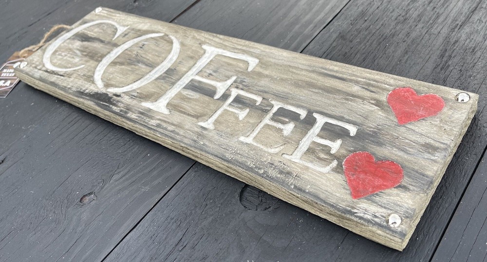 Coffee Farmhouse Rustic Wood Sign Handmade Engraved Home Decor 19.5x5.5 Inches New