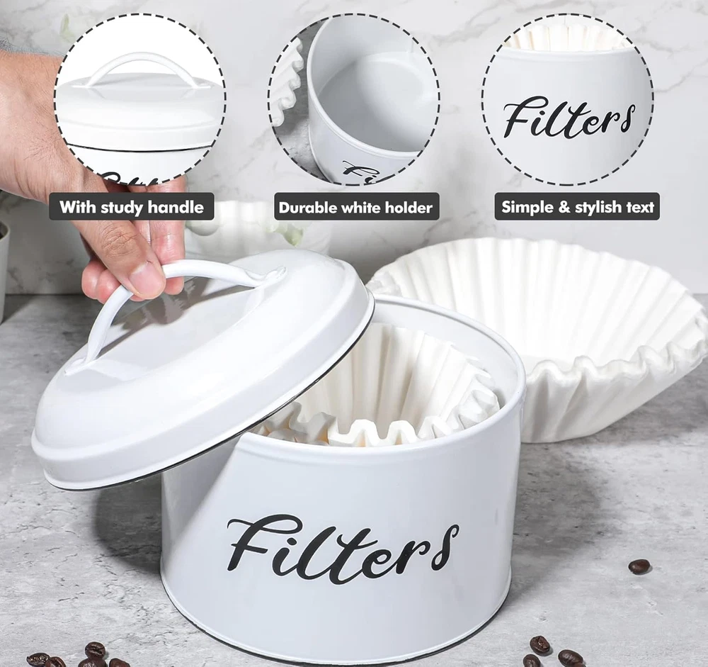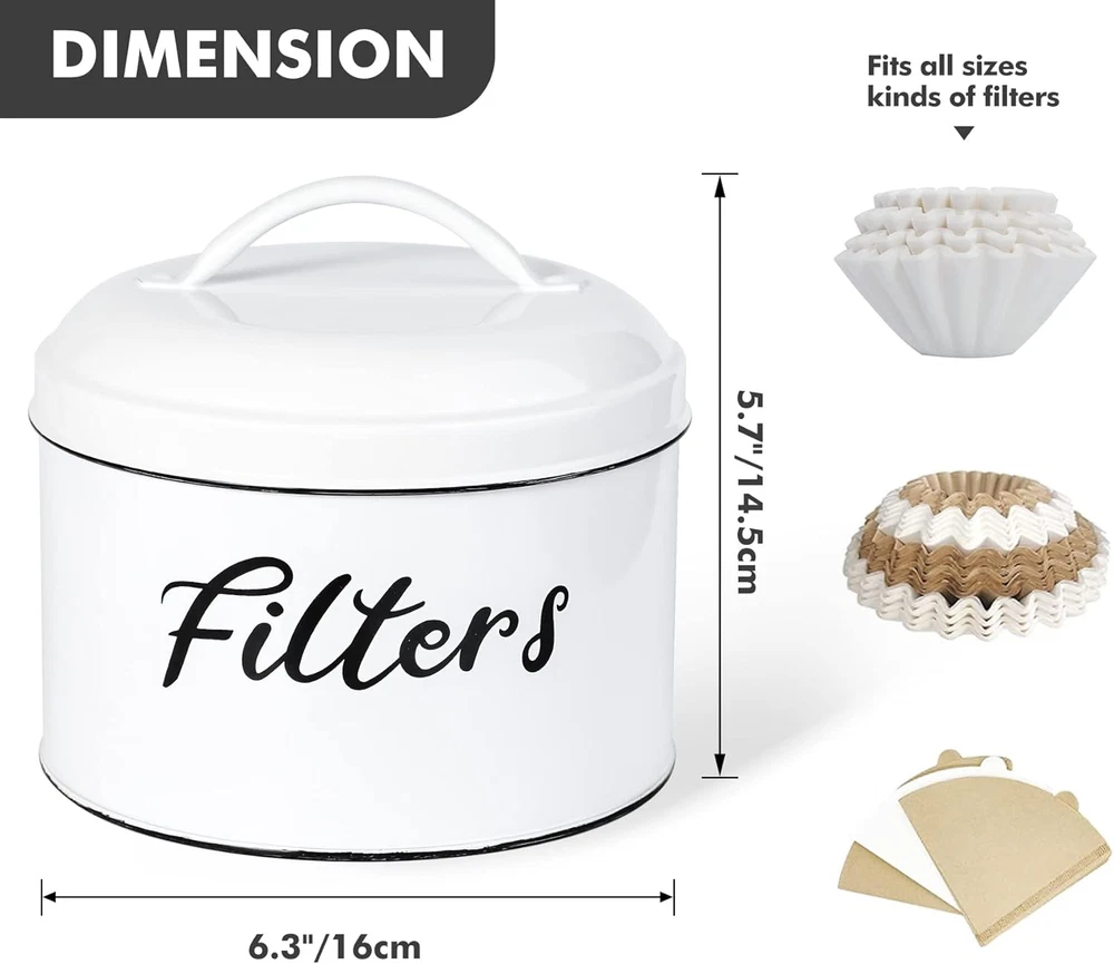 Store New Arrivals Add to Favorite View Feedback Contact Coffee Filter Holder, Farmhouse White Coffee Filter Storage Container with Lid round Coffee Filter Storage Dispenser for Counter Kitchen Coffee Bar Décor Description Item model number COF-D-01 Color White Product Dimensions 6.3"L x 6.3"W x 5.7"H Material Alloy Steel Country of Origin China Item Weight 15.5 ounces Finish Type Polished CLASSIC FARMHOUSE DESIGN: Webake farmhouse coffee filter with a white appearance and bold black lettering printed on the exterior, the overall look is both elegant and premium, it not only as a coffee filter storage but also as a bright decoration to enhance the appearance of your house and kitchen. STURTY AND DURABLE; The coffee filter storage is made of high end steel plate polished to help keep your coffee dry for a long time or store your K cups/coffee filters, is strong and reliable enough not to break or deform easily. ENOUGH CAPACITY: Our coffee filter holder storage with 5.7 inches tall by 6.3 inches diameter; INTERIOR: 4.1 inch deep by 6.2 inches wide, suitable for most filter papers, no matter coffee filters or pods can fit in perfectly which is a good choice for filter & k cup storage. COFFEE FILTER CONTAINER WITH LID: This coffee filter container with lid to keep your keep your filters dry and clean, and the handle on the lid is convenient for you to take the coffee filter paper, very practical. MULTI USE: Webake coffee filter holder is not only designed for coffee filters and K-cup holders, but also can hold sweeteners, milk balls, change, coins, hair ties and individually wrapped snacks or other accessories to help you clean your table and to meet the various needs of different people. Webake Coffee Filter Holder, Farmhouse White Coffee Filter Storage Container Rustic Style White Basket for Counter, Coffee Bar Decor ABOUT US We offer the best prices around on high quality products. Our E-store includes media such as books, movies, music and games while offering electronics, toys, sporting apparel, clothing, tools, general home, garden items and more. SHIPPING We are always working hard to ensure your package arrives as soon as possible. Please understand that some factors like weather, high postal traffic, and the performance of shipping companies are outside of our control. We offer free shipping to the lower 48 states and ship within 2 business days of payment, usually sooner. We do not accept P.O. Boxes. Please provide a physical address. For shipping outside of the continental USA, we only use eBay's Global Shipping Program.The item is shipped to KY and then sent to the rest of the world. International customers are responsible for all duties and taxes. Continue to check out in order to calculate costs for shipping the item to your country. Messages regarding eBay's Global Shipping Program MUST be directed at eBay EXCLUSIVELY. RETURNS We offer a 30-Day Return Policy on items which you are not completely satisfied with. You have the option for a full-refund or an exchange of the item. No returns are available on items shipped outside of the USA. PAYMENT We accept PayPal. CONTACT US This page content is yet to come Please ad us to your favorite seller and visit again later Thank You CUSTOMER SATISFACTION We try our very best to make sure every customer is completely satisfied. If there's a problem, message us! We're happy to help. WE ACCEPT Copyright © 2021 AutoDS. | All Rights Reserved