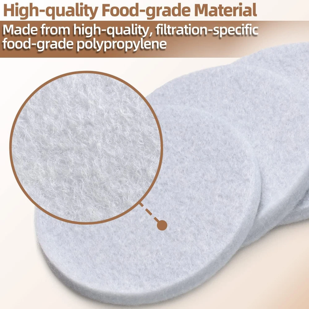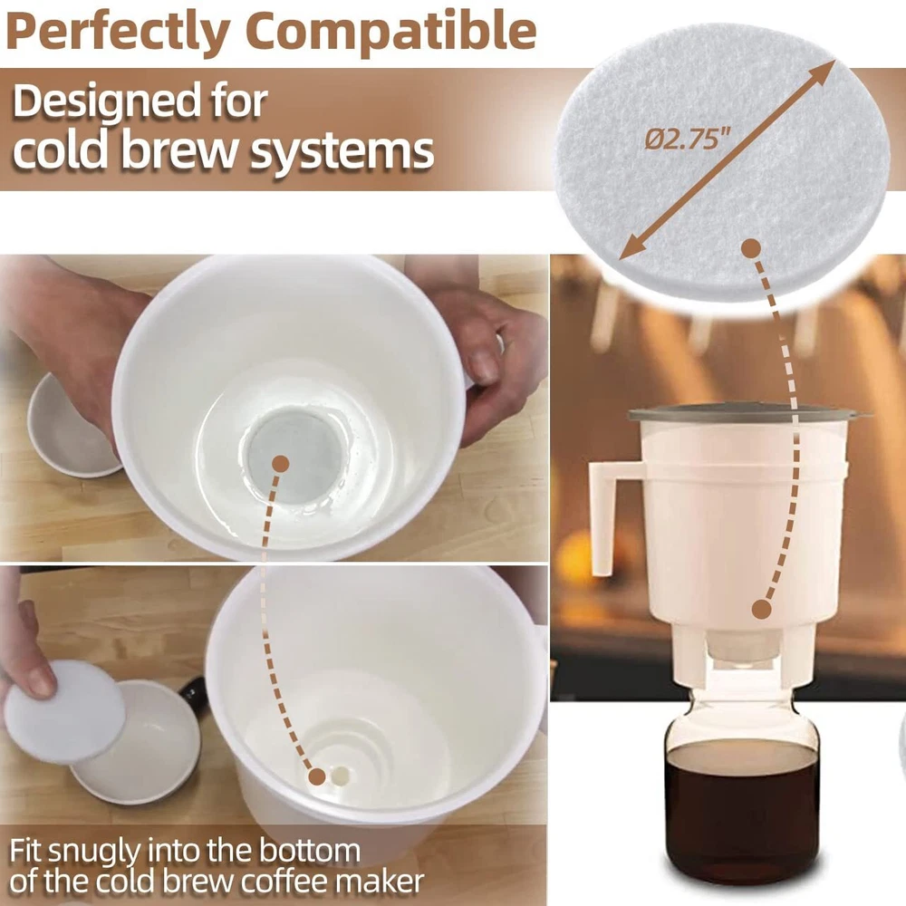 cold brew coffee filters are designed specifically for cold brew system, traping sediment and fines and extracting all the natural and delicious flavors of coffee and tea, and leaving behind the bitter acids and oils attached to their warm brew counterparts to give you a fresh, flavorful glass of cold brew. Our coffee filters are washable and reusable kits mading of quality polypropylene. You can clean simply requires rinsing under running water to remove any residue, squeezing off any moisture, and storing in an airtight container in your refrigerator or freezer in between uses. Package Includes: 10 x reusable coffee filters replacements Usage Suggestions: Coffee filters are suggested to be changed after 10 to 12 uses or after three months, whichever comes first. ๐๐ถ๐ด๐ต-๐พ๐๐ฎ๐น๐ถ๐๐ ๐๐ผ๐ผ๐ฑ-๐ด๐ฟ๐ฎ๐ฑ๐ฒ ๐ ๐ฎ๐๐ฒ๐ฟ๐ถ๐ฎ๐น: coffee filter is made from high-quality, filtration-specific food-grade polypropylene, custom engineered and tested for cold brew coffee maker. It's perfect filter for your cold brew system. ๐ก๐ถ๐ฐ๐ฒ ๐๐ถ๐น๐๐ฟ๐ฎ๐๐ถ๐ผ๐ป ๐๐ฑ๐๐ฎ๐ป๐๐ฎ๐ด๐ฒ: Our coffee filters are uniquely designed specifically for cold brew filtration, traping sediment and fines and extracting all the natural and delicious flavors of coffee and tea, and leaving behind the bitter acids and oils attached to their warm brew counterparts to give you a fresh, flavorful glass of cold brew. ๐๐ฎ๐๐ ๐๐ผ ๐๐น๐ฒ๐ฎ๐ป ๐ฎ๐ป๐ฑ ๐ฆ๐๐ผ๐ฟ๐ฒ:Cleaning simply requires rinsing under running water to remove any residue, squeezing off any moisture, and storing in an airtight container in your refrigerator or freezer in between uses. No soap needed. ๐ฃ๐ฒ๐ฟ๐ณ๐ฒ๐ฐ๐๐น๐ ๐๐ผ๐บ๐ฝ๐ฎ๐๐ถ๐ฏ๐น๐ฒ: Reusable coffee filters are designed for cold brew systems. These small round coffee filters will fit snugly into the bottom of the cold brew system. ๐ฉ๐ฎ๐น๐๐ฒ ๐ฃ๐ฎ๐ฐ๐ธ: Our 10-pack of coffee filter for cold brew drip coffee maker will keep your system stocked with filters. Itโs ideal for coffee shops, offices, and heavy coffee home users.Filters are suggested to be changed after 10 to 12 uses or after three months, whichever comes first. This value pack is enough for long-time use.