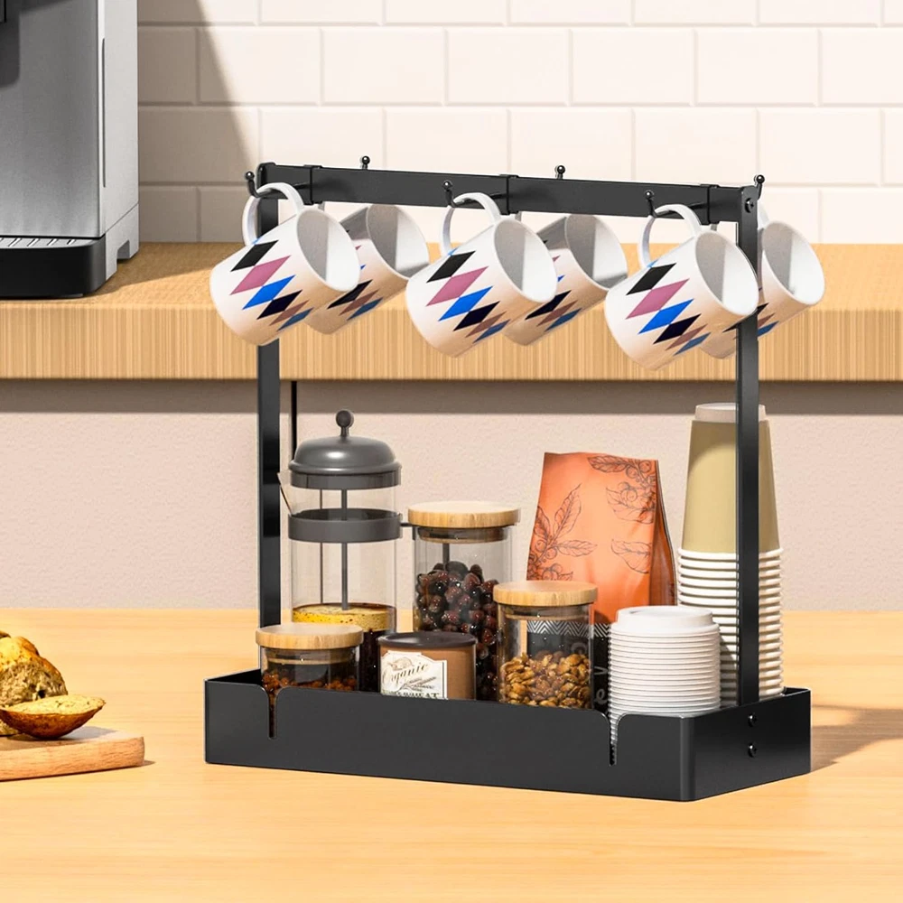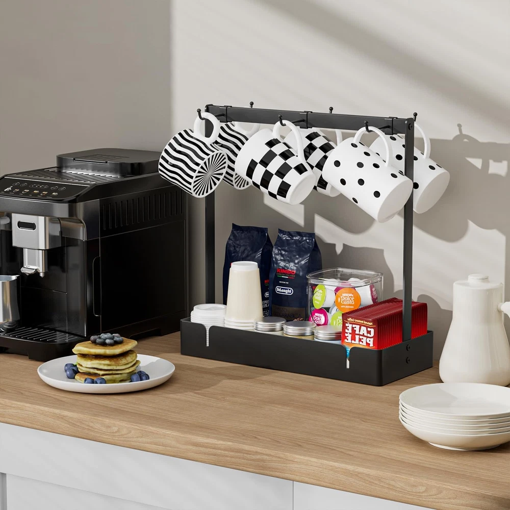 Store New Arrivals Add to Favorite View Feedback Contact Coffee Mug Holder Organizer with Movable Hooks, Coffee Cup Holder for Countertop, Metal Coffee Mug Tree Stand with Storage Basket, Cups Mug Rack for K Cup Pod Coffee Bar Kitchen, Black Description Style Industrial Batteries Included? No Room Type Kitchen Is Customizable No Assembly Required Yes Product Dimensions 6"D x 13.5"W x 14"H Material Alloy Steel, Aluminum Finish Type Powder Coated Included Components Accessories Indoor/Outdoor Usage Indoor Batteries Required? No Item Weight 1.5 pounds Finish Powder Coated Number of Shelves 1 Special Features Heavy Duty Special Feature Heavy Duty Mounting Type Countertop Shelf Type Cubby Shelf Color Black Shape Square Recommended Uses For Product Mugs Size 6Hooks 【Large Storage Coffee Mug Holder】 - 6 mug hooks and large capacity tray. RCHYFEED coffee cup organizer owns large capacity, the top shelf with hooks holds up to 6 coffee mugs. The bottom storage tray can hold various coffee beans, syrup, coffee cups, sugar bag, tea packet, creamer, snacks and other various items. A great coffee bar accessory. 【Movable Hooks】 - The coffee cups holder for countertop with 6 movable hooks. So you can adjust the position of the hooks according to the size of your cups. You can also remove unwanted hooks as needed to prevent hooks and cups from colliding. The bottom with drain hole can help drain and dry, avoiding generate harmful substances in humid environments.It is totally a perfect coffee mug display stand for your home. 【Sturdy and Durable】 -The coffee mug tree rack made of high quality aluminum alloy, provides you with stronger stability and durability. All movable hooks are made of high-quality metal to keep your coffee mugs securely in place. And the surface is smooth, with an anti-rust coating, and easy to clean.The bottom of our mug display holder is supported by 4 mini pads, which can prevent the rack from scratching the table. 【Space Saving】 - The tree mug racks holder not only give you a place to store your coffee cups, but also storage various items keep your table and kitchen well-organized. The black metal frame also has a strong vintage industrial style atmospher, suitable for kitchen counter, coffee table, cabinet display or storage, living room, dinning room, outdoor dinning table. 【Easy Installation】 - The mug cups holder needs to be assembled on your own, but do not worry about this. All of the necessary accessories are included in the package, with an instruction manual. After reading the instructions, you can finish the installation in a few minutes. If you have any questions with your purchase, please . Product Description Are you still worrying about your beloved cups being messy and nowhere to put it? RCHYFEED coffee mug rack holder not only give you a place to store your coffee cups, but also storage various items keep your table and kitchen well-organized. movable hooks You can adjust the position of the mug hooks according to the size of your cups, and all movable hooks are made of high-quality metal to keep your coffee mugs securely in place. Heavy Duty Metal Frame The coffee mug rack made of high quality aluminum alloy, provides you with stronger stability and durability. Large Storage Space The bottom storage tray can hold various coffee beans, coffee cups, sugar bag, tea packet, creamer, snacks and other various items. Sturdy Hooks The coffee cups holder organizer owns large capacity, the top shelf with hooks holds up to 6 coffee mugs. Bottom Drain Hole Design The bottom with drain hole can help drain and dry, avoiding generate harmful substances in humid environments. You can assemble the coffee cup holder with easy-to-understand installation instructions in a few minutes. Prefer Gift for Coffee Lovers Both in terms of practicality and appearance, this mug stand holder is a perfect gift for coffee lovers, also perfect for a new home or refreshing your kitchen. More Options for RCHYFEED coffee bar accessory Add to Cart Add to Cart Add to Cart Add to Cart Add to Cart Customer Reviews 4.7 out of 5 stars 166 4.7 out of 5 stars 166 4.2 out of 5 stars 73 4.7 out of 5 stars 166 4.5 out of 5 stars 39 Price $26.99 $ 26 . 99 $29.99 $ 29 . 99 $29.99 $ 29 . 99 $31.99 $ 31 . 99 $32.99 $ 32 . 99 Function Store mugs,cups,pods,tea bags Store mugs,cups,pods,tea bags Store mugs,cups,pods,tea bags Store mugs,cups,pods,tea bags store cups,lids, straws,sleeve Material Aluminum Alloy Aluminum Alloy Aluminum Alloy Metal Aluminum Alloy Size 5.9"D x 13.5"W x 14"H 5.9"D x 16.5"W x 17.3"H 5.5"D x 16.5"W x 16.7"H 9.84"L x 9.84"L x 17.32"H 13.46"D x 5.9"W x 6.5"H Features Adjustable hooks,bottom tray Adjustable hooks,bottom tray Wall mounted,adjustable hooks 360 Degree rotating Height adjustable,bottom tray Easy Installation Yes Yes Yes Yes Yes ABOUT US We offer the best prices around on high quality products. Our E-store includes media such as books, movies, music and games while offering electronics, toys, sporting apparel, clothing, tools, general home, garden items and more. SHIPPING We are always working hard to ensure your package arrives as soon as possible. Please understand that some factors like weather, high postal traffic, and the performance of shipping companies are outside of our control. We offer free shipping to the lower 48 states and ship within 2 business days of payment, usually sooner. We do not accept P.O. Boxes. Please provide a physical address. For shipping outside of the continental USA, we only use eBay's Global Shipping Program.The item is shipped to KY and then sent to the rest of the world. International customers are responsible for all duties and taxes. Continue to check out in order to calculate costs for shipping the item to your country. Messages regarding eBay's Global Shipping Program MUST be directed at eBay EXCLUSIVELY. RETURNS We offer a 30-Day Return Policy on items which you are not completely satisfied with. You have the option for a fu