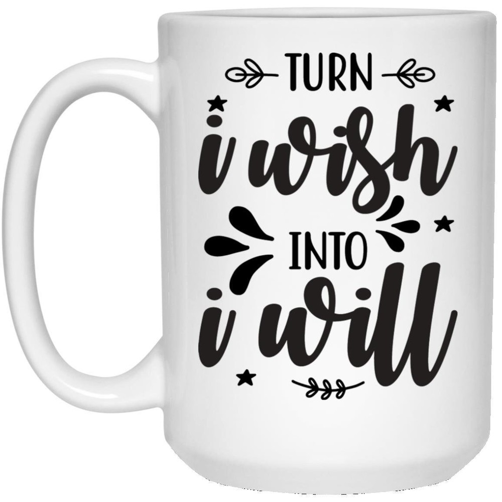 Coffee Mug Turn I Wish Into I Will Motivational Gift Inspirational Mug Funny Product Details.. This high quality 11oz. ceramic white mug has a premium hard coat that provides crisp and vibrant color reproduction sure to last for years. Perfect for all hot & cold beverages. The highest quality printing possible is used. It will never fade no matter how many times you wash it. Material: 100% Ceramic. Print both sides. Dishwasher and Microwave Safe. High Gloss + Premium White Finish. Printed in the U.S.A. Personalized & Custom. We support personalized and custom mug to add custom, when placing an order, you can add notes to the "order note" in shipping address section. Also you can contact us directly via message. Shipping Info. Ready to ship in 1 to 2 business days, All products are made-to-order and proudly printed in the United States. Shipped by USPS and DHL, You will receive your order in 5-7 days. Replace & Refund. All products are defective during shipping broken, chipped will be replaced free of charge. You are not satisfied with the product, we will refund 100% money to you. If any other issues arise, please do not hesitate to message, we would be more than happy to assist you.