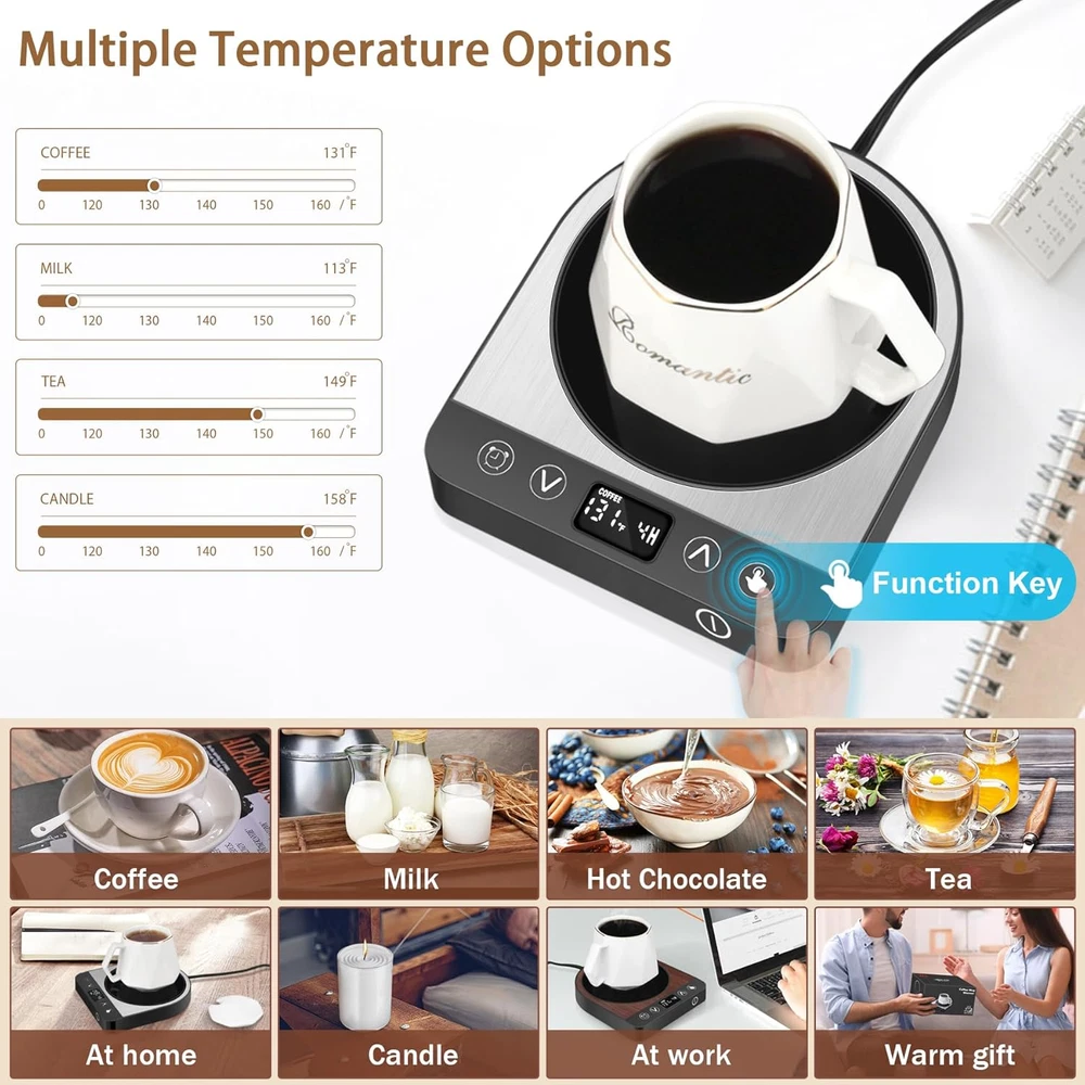 Store New Arrivals Add to Favorite View Feedback Contact Coffee Mug Warmer, 4 Hours Auto Shut-Off Electric Cup Warmer with Large Heating Plate for Office Desks, Travel and Home (50Watt) Description Item model number 50W Warmer - Stainless Steel Maximum Temperature 185 Degrees Fahrenheit Lower Temperature Rating 113 Degrees Fahrenheit Power Source Corded Electric Color Black Upper Temperature Rating 185 Degrees Fahrenheit Wattage 50 watts Material Plastic Country of Origin China Item Weight 1.1 Pounds Product Dimensions 6.3 x 8.4 x 1.5 inches Number of Trays 1 Voltage 1.1E+2 Volts Model 50W Warmer - Stainless Steel Heats Up Quickly and Keeps Your Coffee Warm - The mug warmer is great for keeping coffee warm for a long time, you don't have to rush through a cup of coffee in the morning before it gets cold. Large Heating Plate - The warming surface is large enough for us to put an extra large cup on, you can also use it for warming tea, milk, and larger candles. It's a great warmer if you are looking for something to heat up bigger candles (or mugs). Multiple Temperature Options - The cup warmer has a timer to adjust auto shut-off between 2-4-6-8-10-12 hours (4 hours by default), you can also adjust the temperature settings between 113°F-131°F-149°F-167°F-185°F. Coffee Mug Warmer on Desk - Sleek design, it will look great on our desk, and it's stable with rubber feet. The surface is easy to clean and and the top is sealed to prevent spills. This mug warmer is great for office desks, travel and home. Easy to Use - Heats beverage quickly, the display shows the temperature and easy to read, the controls are touch-sensitive for easy operation. It is versatile, we sure it will do a good job for you. Just add it to your cart, buy one for your friends or family. NOTE: Be careful when you are finished using it—that hot plate remains warm for a while after it is turned off. Product Description Firjoy Coffee Mug Warmer - 4 Hours Auto Shut-Off Electric Cup Warmer with Large Heating Plate This coffee mug warmer is highly recommended for its ability to keep coffee warm for a long time. It has a large heating plate and multiple temperature options. The LED display is bright and easy to read. The warmer is suitable for warming tea, milk, and candles. It has a timer and adjustable temperature settings. The surface is easy to clean and the unit is stable with rubber feet. It is versatile and can be used for heating larger candles. The controls are touch-sensitive and the top is sealed to prevent spills. Easy to Use Easy to Clean Stable with Rubber Feet ABOUT US We offer the best prices around on high quality products. Our E-store includes media such as books, movies, music and games while offering electronics, toys, sporting apparel, clothing, tools, general home, garden items and more. SHIPPING We are always working hard to ensure your package arrives as soon as possible. Please understand that some factors like weather, high postal traffic, and the performance of shipping companies are outside of our control. We offer free shipping to the lower 48 states and ship within 2 business days of payment, usually sooner. We do not accept P.O. Boxes. Please provide a physical address. For shipping outside of the continental USA, we only use eBay's Global Shipping Program.The item is shipped to KY and then sent to the rest of the world. International customers are responsible for all duties and taxes. Continue to check out in order to calculate costs for shipping the item to your country. Messages regarding eBay's Global Shipping Program MUST be directed at eBay EXCLUSIVELY. RETURNS We offer a 30-Day Return Policy on items which you are not completely satisfied with. You have the option for a full-refund or an exchange of the item. No returns are available on items shipped outside of the USA. PAYMENT We accept PayPal. CONTACT US This page content is yet to come Please ad us to your favorite seller and visit again later Thank You CUSTOMER SATISFACTION We try our very best to make sure every customer is completely satisfied. If there's a problem, message us! We're happy to help. WE ACCEPT Copyright © 2021 AutoDS. | All Rights Reserved