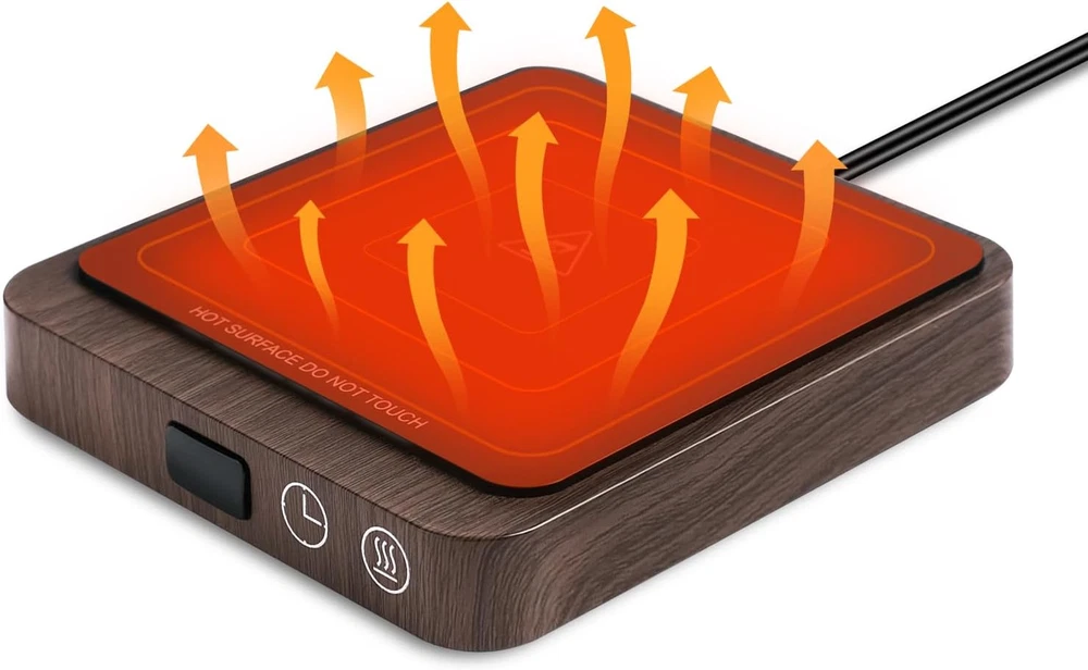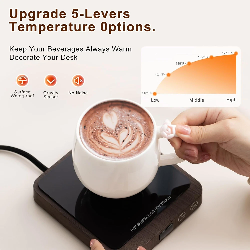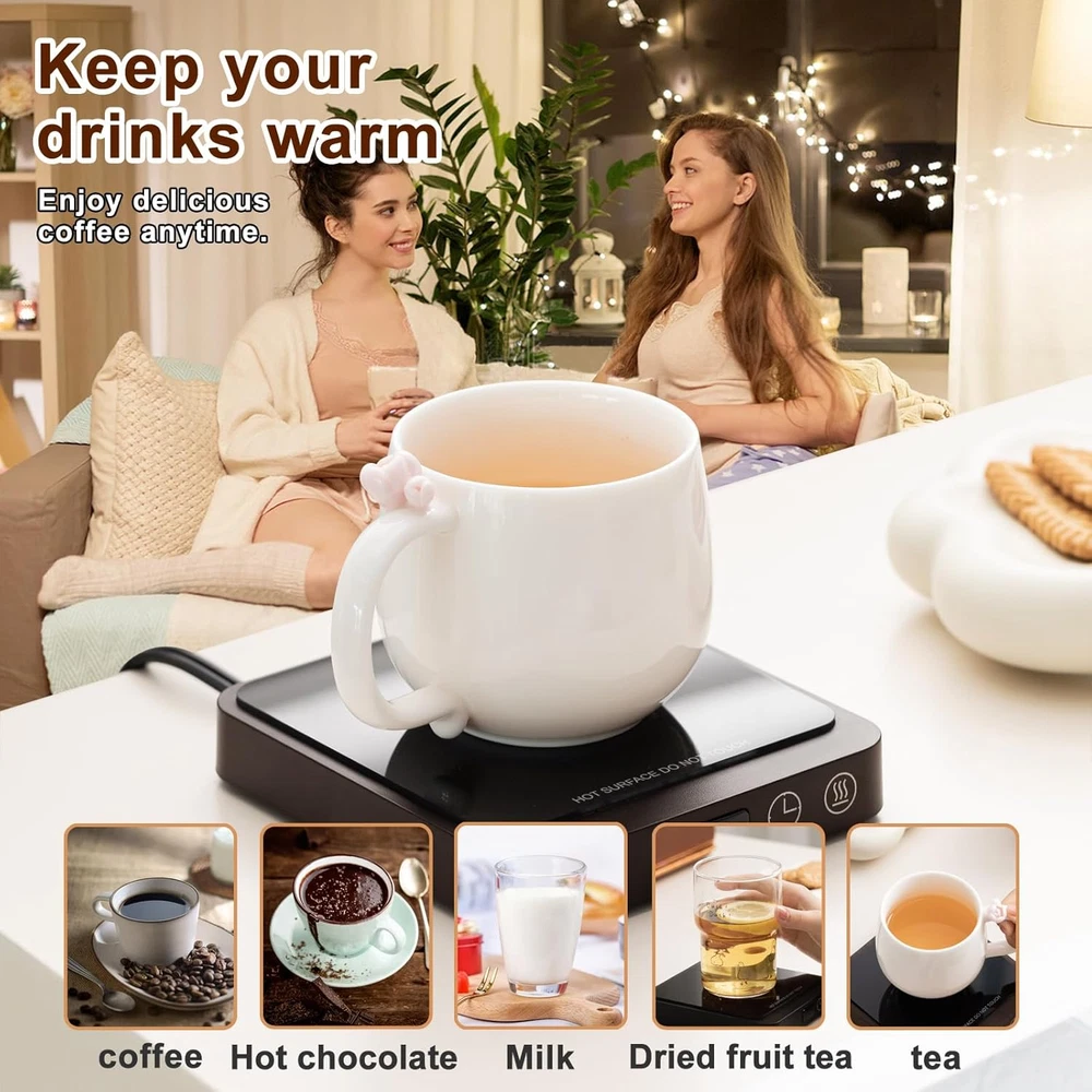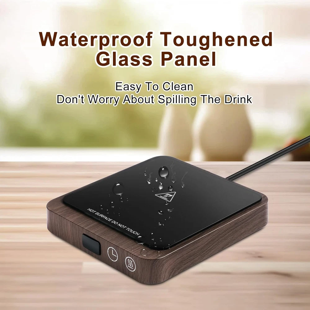 5 Temperature Settings Coffee Warmer: Provide more heat than other coffee mug warmers, say goodbye to lukewarm coffee! The Mug warmer is designed with 5 temperature settings, you can touch the “Temp Button” to keep or warm up your drink to 113℉/131℉/149℉/167℉/176℉. Only the most suitable temperature can release the best taste of the drink. JUNHETEK Mug warmer can keep your beverage at the ideal drinking temperature. 6Timer Settings & 4H Auto Shut Off: JUNHETEK coffee mug warmer has timing functions. You can touch the "timing button" , Set it to be automatically turned off after 2, 4, 6, 8, 10, 12 hours. If you don't set the timer function, the warmer will automatically shut down after 4 hours by default. This safety feature helps reduce the danger of forgetting to turn off the heater. JUNHETEK Coffee Warmer: This coffee warmer for desk is made of waterproof tempered glass and ABS flame-retardant material. heat-resistant and fire-resistant, which is waterproof and easy to clean,there is no need to worry about the safety of coffee occasionally overflowing. The simple and generous design of the insulating mat will make it complementary whether it is used in the office or at home. I am sure you will be pleasantly surprised. Widely Used: The mug warmer for desk made glass surface design, this cup warmer plate is suitable for flat tableware, stainless steel cup, mug, milk box, glass cup, baby bottles etc. It is suitable for hot coffee, hot chocolate, tea, milk, other beverages. It can also be used as a candle warmer plate to warm up your scent candles to fill your room with fragrance. We recommend using steel flat and thin-bottomed mugs to achieve the best thermal insulation effect. Perfect Gift: Keep Beverages Warm and Enjoy the Perfect Cup of Coffee. This coffee warmer is the ultimate gift for Thanksgiving, Christmas, New Year, Valentine's Day, birthdays, or any special occasion, The coffee cup warmer will be a great coffee gift for your friends as a coffee accessory. And express your care and warmth to your family, friends, dad, mom, wife, husbanor colleagues. It ensures that your loved ones can always enjoy their favorite hot beverages at the perfect temperature. Product Description