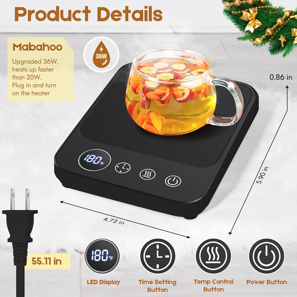 Store New Arrivals Add to Favorite View Feedback Contact Coffee Mug Warmer, Electric Coffee Cup Warmer for Desk, Milk, Tea, Auto Shut Off, 6 Temp Settings, Heated Plate for Office Kitchen Home, Gifts for Women Men (No Cup) Description Item model number 663330-1 Wattage 36 watts Maximum Temperature 180 Degrees Fahrenheit Lower Temperature Rating 130 Degrees Fahrenheit Power Source AC/DC Color Black Product Dimensions 5.9 x 4.7 x 0.79 inches Material ABS+Aluminum alloy+Metal Panel Country of Origin China Item Weight 0.54 Pounds Voltage 110 Volts Model 663330-1 [6 Adjustable Temperature] 36W coffee warmer with upgraded metal heating plat, which rapid heats your drink faster than others in a certain time. Just a simple tap, then you could choose the desired warmth from 130℉-140℉-150℉ -160℉-170℉-180℉. Easy to keep your drinks at ideal temperature while you’re working or relaxing. [12H Time Scheduled] Easy scheduled this mug warmer plate from 1 to 12 hours, save your time and ensure drink taste. Enjoy the convenience and safety with auto shut-off timer cup warmer. With 1.4m (55.2-inch) long power cord provides greater convenience use in office desk, home, kitchen, bedroom, living room, dormitory etc. Let this cup warmer warm your tummy and heart. [Safety & Efficiency Warmer] Coffee mug warmer features an auto shut-off function after 8 hours of continuous use, ensuring maximum safety. And low-power design keeps your coffee or tea warm efficiently, making it an ideal for long work sessions or extended relaxation periods. Besides, the anti-slip bottom provides stable placement on various tabletops to enhance safety. [Compact Size and Multi-Functional] Smart warmer size is 5.9 x 4.7x 0.79 inch. Coffee mug heater features only 0.79 inches thick, weight is just 0.54lb. Lightweight and space-saving design for you carry to anywhere. Very suitable for flat bottom like ceramic, stainless steel, glass cups etc. Perfect for heating coffee, milk, tea or chocolate. This heating plate used as a candle warmer, allowing you to enjoy the delightful scents of your favorite candles in safety situation. [A Warmer Coffee Gift] With its classic design, this coffee warmer for desk combines style and functionality, making it a perfect gift for your loved ones or friends in any occasion— White Elephant gift, Christmas gift, New Year, Valentine's gift or other festivals. It keeps your coffee or tea warm all the time, no coffee enthusiast can resist the desktop coffee cup warmer. Any questions about this warmer plate, please feel free to contact. Product Description ABOUT US We offer the best prices around on high quality products. Our E-store includes media such as books, movies, music and games while offering electronics, toys, sporting apparel, clothing, tools, general home, garden items and more. SHIPPING We are always working hard to ensure your package arrives as soon as possible. Please understand that some factors like weather, high postal traffic, and the performance of shipping companies are outside of our control. We offer free shipping to the lower 48 states and ship within 2 business days of payment, usually sooner. We do not accept P.O. Boxes. Please provide a physical address. For shipping outside of the continental USA, we only use eBay's Global Shipping Program.The item is shipped to KY and then sent to the rest of the world. International customers are responsible for all duties and taxes. Continue to check out in order to calculate costs for shipping the item to your country. Messages regarding eBay's Global Shipping Program MUST be directed at eBay EXCLUSIVELY. RETURNS We offer a 30-Day Return Policy on items which you are not completely satisfied with. You have the option for a full-refund or an exchange of the item. No returns are available on items shipped outside of the USA. PAYMENT We accept PayPal. CONTACT US This page content is yet to come Please ad us to your favorite seller and visit again later Thank You CUSTOMER SATISFACTION We try our very best to make sure every customer is completely satisfied. If there's a problem, message us! We're happy to help. WE ACCEPT Copyright © 2021 AutoDS. | All Rights Reserved