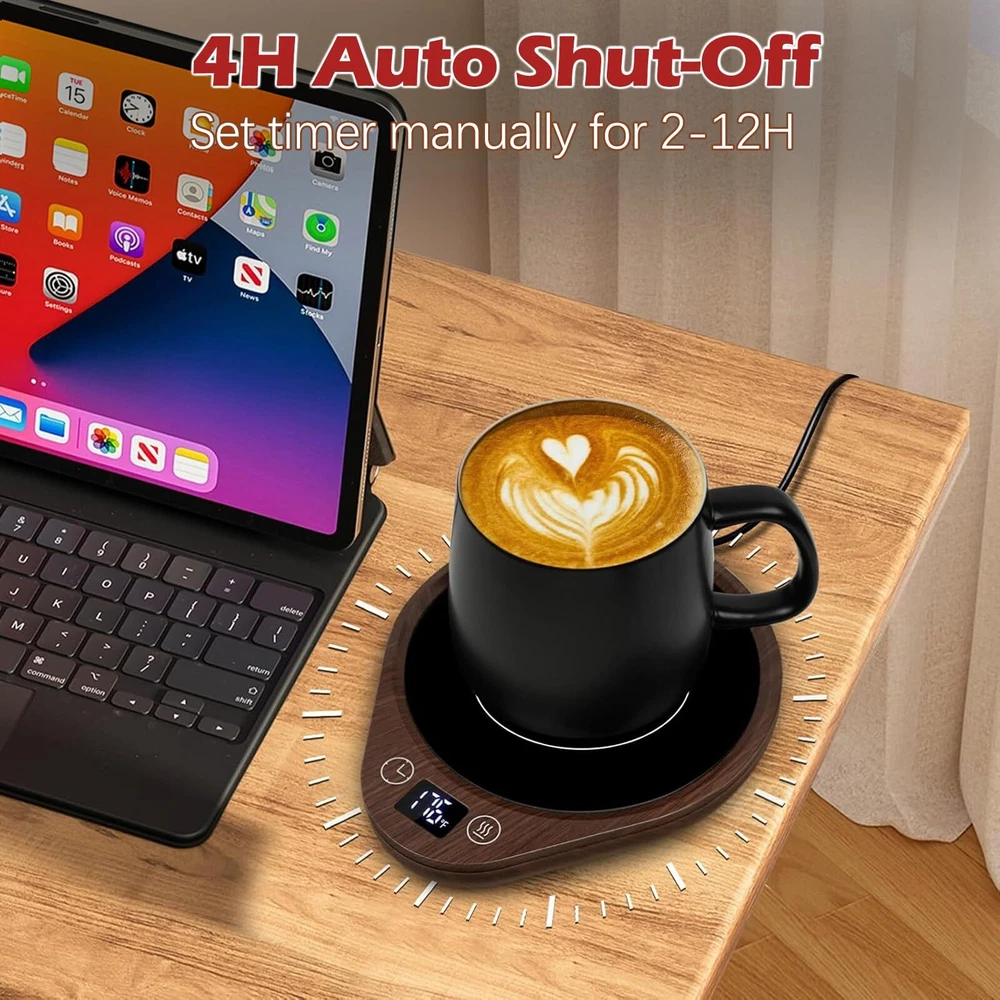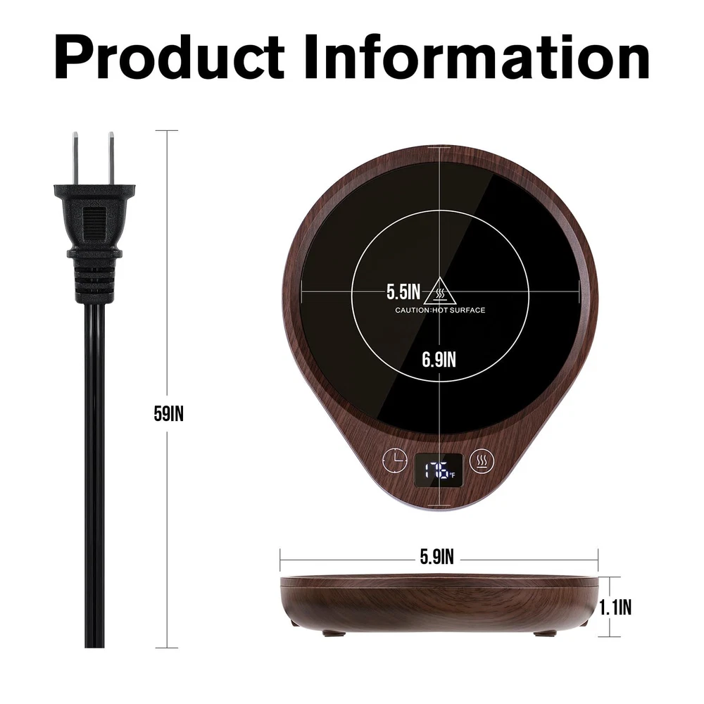 [3-Temperature Settings]-Unlike other mug warmers that only have 20W power, 36W coffee warmer can heat coffee faster and evenly. Our electric mug warmer can keep your candle or beverages at the perfect temperature for a long time, you can enjoy your favorite drinks at the perfect temperature (touching the "Temp Button" to choose130℉/150℉/176℉). [4 Hours Auto Shut Off]-This smart mug warmer default setting is auto shut off after working 4 hours. Need't worry about forgetting to turn it off. You can also set the auto-off time as you like (2H,4H, 6H, 8H, 10H, 12H). The LED display shows the time off intelligently and clearly. You can also turn it off manually. 1.5M/59IN charge cord makes it perfect warmer for office desk, home, kitchen, dorm and more. [Super Larger Heating Area]-The coffee/candle warmer plate is 5.5 inches in diameter, super large heating area, fitting most cups and candles. Perfect for heating candle and beverages as coffee, milk, tea, etc. This cup warmer has rubber non-slip foot pad, stable and not easy to slip off. [Safe & Durable]-upgrade warmer with high-tech materials make the coffee warmer heat-resistant and fire-resistant. The cup warmer uses a microcrystalline glass panel, which is waterproof and easy to clean. This large electric jar warmer allows you to safely enjoy the beautiful smells of your favorite candles without ever having to see or worry about a flame. [Best Gift Choice]-The coffee warmer for desks will be a great coffee gift for your friends as a coffee accessory. It's a great gift for lover, dad, mom, wife, husband, and all your loved ones on Valentine's Day, Thanksgiving, Christmas, and other special occasions to show you care.