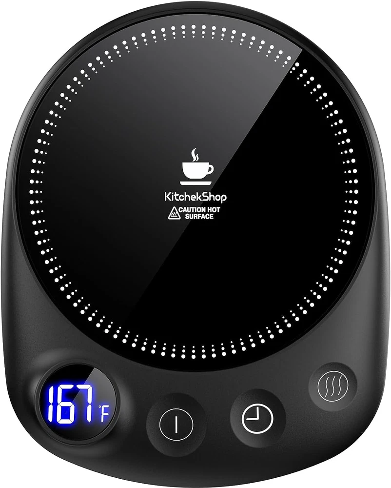 【Unparalleled Heating Speed】Enjoy the fastest heating and highest temperature with our coffee warmer. Keep your beverages—coffee, tea, hot chocolate, and more—consistently warm from the first sip to the last 【4 Temperature Settings for Your Preference】Easily customize your drink’s warmth with four temperature settings: 131°F, 145°F, 167°F, and 185°F. Whether you prefer a gentle warmth or a steaming hot beverage, this coffee warmer lets you enjoy it just the way you like 【Safety with Auto Shutoff】Our coffee cup warmer features a convenient timer shutdown function, offering a customizable range from 1 to 12 hours. This intelligent feature lets you relish your beverage without any concerns. Your drink remains wonderfully warm while also conserving energy, making it an ideal companion for extended work sessions, immersive reading marathons, and beyond. Prioritize safety and efficiency in your daily routines with this thoughtfully designed mug warmer 【Ample Heating Panel】Designed with a generous heating surface, our coffee warmer effortlessly accommodates a wide range of cup sizes. Enjoy the convenience of a larger heating panel that readily accommodates most cups, ensuring a snug fit and optimal warmth. This coffee cup warmer is suitable for glass cups, stainless steel cups, ceramic cups, milk cartons, etc. And using a flat or thin bottomed mug will give the best results 【Includes Coaster】Our desk coffee warmer complete with a complementary coaster that adds a touch of sophistication to your coffee nook. Elevate both the flavor and aesthetics of your coffee routine while maintaining a tidy and chic space. This coffee warmer and coaster duo also makes for a splendid gift choice on occasions like Valentine's Day, Thanksgiving, Christmas, Mother's Day, Father's Day, New Year's, and more. Elevate your coffee moments and gift-giving with this stylish and functional set Product Description 1 Scented Candle 2 Coffee Cup Warmer 3 Tea Cup Warmer 4 Milk Warmer 5 Water/Cocoa Warmer KitchekShop Coffee Mug Warmer Add to Cart Add to Cart Add to Cart Add to Cart Customer Reviews 4.6 out of 5 stars 2,838 3.7 out of 5 stars 197 4.6 out of 5 stars 2,838 4.6 out of 5 stars 2,838 4.6 out of 5 stars 2,838 Fastest Heating 4S 3S 4S 4S 4S Lights No 7 Color Lights No No No 4 Temperature Settings 131°F, 145°F, 167°F, and 185°F 131°F, 145°F, 167°F, and 185°F 131°F, 145°F, 167°F, and 185°F 131°F, 145°F, 167°F, and 185°F 131°F, 145°F, 167°F, and 185°F Timing Function 1-12H Timer 8H Timer 1-12H Timer 1-12H Timer 1-12H Timer On/Off Mode Touch Button Gravity-Induction Touch Button Touch Button Touch Button