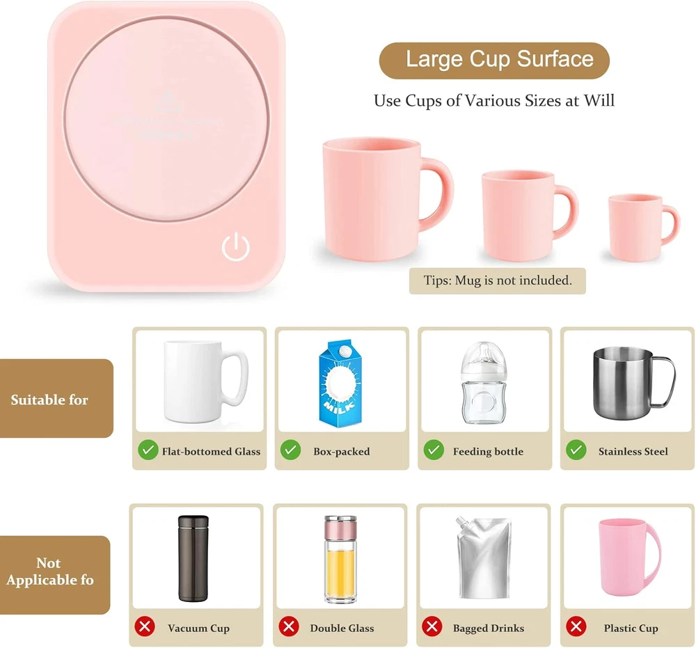 Store New Arrivals Add to Favorite View Feedback Contact Coffee Mug Warmer for Desk with Auto Shut off & 3-Temp Settings, Coffee Cup Warmer with Smart Safety Alert Home Office Accessory, Perfect for Coffee, Tea, Milk (No Mug) Description Item model number VOB-16 Maximum Temperature 149 Degrees Fahrenheit Lower Temperature Rating 104 Degrees Fahrenheit Power Source Corded Electric Color Pink Upper Temperature Rating 149 Degrees Fahrenheit Wattage 20 watts Material Aluminum Item Weight 10.2 ounces Product Dimensions 5.32"L x 4.33"W x 0.79"H Voltage 120 Volts Capacity 0.65 Pounds Adjustable Three-Temperature Setting: VOBAGA coffee warmer will keep your coffee at a perfect drinking temperature. You can control the temperature by tapping the button, keeping your coffee or milk up to 104℉-131℉-149℉ (40℃-55℃-65℃). Changing temperature is just a tap on of your finger. Automatic Shut-off & Smart Safety Feature: This smart cup warmer will shut off automatically after continually working 4 hours. No worry about forgetting to turn it off. The blinking red light indicator tells you the heating plate is hot and will stop until the temperature drops to 97℉ (36℃). Splash-proof & Large Heating Plate: The heating plate adopts sealed-insulation technology to prevent splashing water, which also fits most standard mugs well. The 59-inch plug cord will fits on your desk perfectly. Tips: Choose flat-bottom and thin-wall mug so that it can have a good connection to the warmer. Easy-to-Clean & Portable-to-Carry: The surface of the heating plate is easy to clean. The coffee warmer is lightweight and will be a ideal choice for gift on Birthday, Thanksgiving Day and Christmas and so on. Satisfactory Customer Service: Your satisfaction is our top priority. We will help you solve any problems in 24 hours. For more information on how to use the warmer, please scroll down to get a User Instruction. Product Description Just a tap on your finger, you can keep your coffee or milk up to 104℉-131℉-149℉(40℃-55℃-65℃). Tap the button four times, you can turn the beverage warmer off manually. Express Heating Tips Use a flat-bottom and thin-wall cup with a cover will help warm your beverage in a few minutes. Note: The warmer is designed to keep your heated drinks warm. If you want to heat a cold coffee, it will take a long time. Use Suitable Cup Vobaga cup warmer is not applicable for vacuum cup, plastic cup, double-glass cup and bagged drinks. Please choose flat-bottom cup, box-packed or stainless steel cup to warm. Easy to Clean The surface of the heating plate is easy to clean. Please use a tissue or dry cloth to wipe the heating plate. Multi-purpose Heating Plate The heating plate is suitable for cups up to 3.54 inches in diameter. The warmer can heat up candles and let your room fill with aroma. (No Fire) Energy Saving Feature 20w mug warmer will help you save energy. Enjoy your day with VOBAGA coffee warmer! Great Present Choice It will be a great choice for present on Birthday, Thanksgiving Day and Christmas and so on. ABOUT US We offer the best prices around on high quality products. Our E-store includes media such as books, movies, music and games while offering electronics, toys, sporting apparel, clothing, tools, general home, garden items and more. SHIPPING We are always working hard to ensure your package arrives as soon as possible. Please understand that some factors like weather, high postal traffic, and the performance of shipping companies are outside of our control. We offer free shipping to the lower 48 states and ship within 2 business days of payment, usually sooner. We do not accept P.O. Boxes. Please provide a physical address. For shipping outside of the continental USA, we only use eBay's Global Shipping Program.The item is shipped to KY and then sent to the rest of the world. International customers are responsible for all duties and taxes. Continue to check out in order to calculate costs for shipping the item to your country. Messages regarding eBay's Global Shipping Program MUST be directed at eBay EXCLUSIVELY. RETURNS We offer a 30-Day Return Policy on items which you are not completely satisfied with. You have the option for a full-refund or an exchange of the item. No returns are available on items shipped outside of the USA. PAYMENT We accept PayPal. CONTACT US This page content is yet to come Please ad us to your favorite seller and visit again later Thank You CUSTOMER SATISFACTION We try our very best to make sure every customer is completely satisfied. If there's a problem, message us! We're happy to help. WE ACCEPT Copyright © 2021 AutoDS. | All Rights Reserved