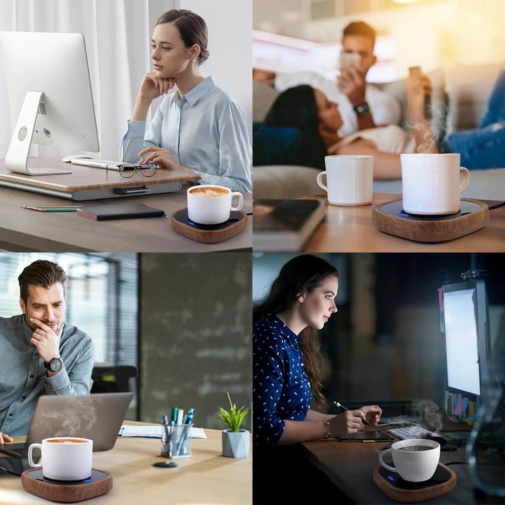 Coffee Mug Warmer - Smart Cup Warmer for Heating & Warming Milk, Tea, Candle Wax.coffee warmer for desk,heated coffee mug,self heating coffee mug,candle warmer,coffee warmer for desk Stay Warm Coffee Mug: This 19-watt cup warmer can be used to warm up coffee, tea, milk, hot cocoa, or used this as a candle warmer and it works great. It keeps your coffee and drinks at a perfect drinking temperature of, and can even warm up your maple syrup when making pancakes.With indicator light while working, which is stylish and beautiful. Easy-to-Use Coffee Mug Warmer: ① Size: 5.9*5.65*1.1in (15*14*2.8cm), its large heating area ensures faster and more even heating, with no grooves or bumps to limit the size of cups, meeting the needs of most cup sizes. ②Extra Long Plug Cord: An extra-long 63-inch (160 cm) plug cord provides more flexibility to place it anywhere on your desk while you work. Auto Shut ON/Off: coffee warmer for desk with gravity-Induction automatically turns on or off when you pick up or put down your mug. The easy-to-read blue indicator light is clearly visible in dark or low-light environments, making it clear at a glance whether the mug warmer for desk is energized or not. Say goodbye to worries about accidentally leaving it on. Safe & Waterproof: FCC Certificated. The beverage warmer heating plate is covered with a heat-conducting glass that is easy to clean in case of coffee spills. It weighs only 212 grams (0.46 pounds), equivalent to the weight of a . Compared to other brands, our mug warmer coffee warmer is thinner, lighter, and more portable - you can put it in your bag and have warm coffee everywhere. Coffee Lovers Gift Ideas: With a beautifully packaged gift box and a two-year . The simple and uncomplicated design is ideal for gift-giving on birthdays, Thanksgiving Christmas, or other festivals. It makes a perfect coffee gift for coffee lovers, yourself, parents, spouse, family, friends, coffee lovers, or office workers.