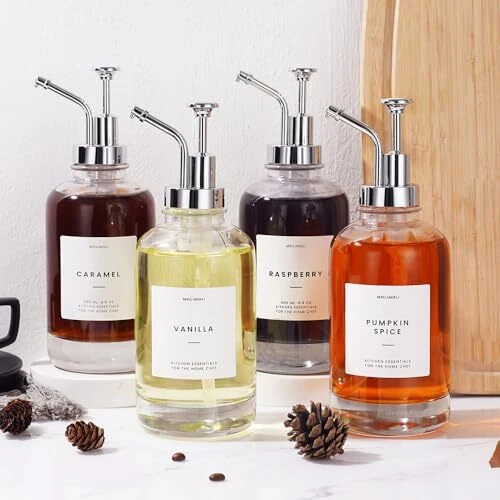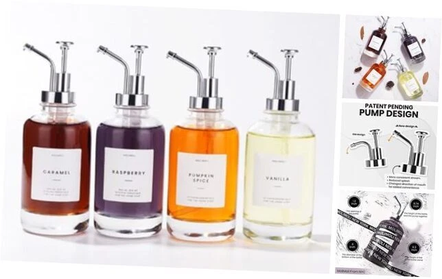 Return Policy Fast Delivery Trusted seller Coffee Syrup Dispenser for Coffee Bar, Coffee Pump 500ml, Set of 4 Silver Product Description Syrup Dispenser Set: Each Set includes four custom-made high quality coffee syrup bottles, four PVC industry-style pumps, a funnel and a prefixed label set. Versatile Usage : A great choice as a syrup dispenser, these versatile dispensers are also ideal for a wide variety of other condiments or liquids, including dish soap, hand soap, sanitizer, mouthwash, saline water, ketchup and mustard, or salad dressing! Coffee Syrup Label Included: Every syrup dispenser set includes a package of custom-designed coffee syrup labels and two blank labels to keep your kitchen organized . Sturdy Pumps: Every Coffee Syrup Pump is made of BPA-free, food-safe plastic and food grade PVC silver. Every press gives you the perfect amount of syrup or condiment, dispensing about half teaspoon at a time (2mL). Commercial Or Home Use: These dispensers are a great choice for commercial use, and add a classy touch to any establishment, whether it’s a diner, café, bar, shaved ice, or ice cream shop. It's also a Perfect Housewarming Gift. Shipping Returns Payment Shipping Shipping is FREE to all addresses other than APO/PO boxes in the lower 48 states. All our stock ships from US-based warehouses. Shipped via USPS or UPS (depending on location and package weight) Unless stated otherwise, all orders will ship within 24-72 hours of your payment being processed. Check our feedback to see the great reviews of FAST shipping we offer. Returns Seller does not accept returns Payment We currently accept payment via eBay managed payments only. Once payment is cleared, we will dispatch your shipment within 1-3 business days. Please refer to the "Shipping" tab for more information regarding shipping speed to your destination.