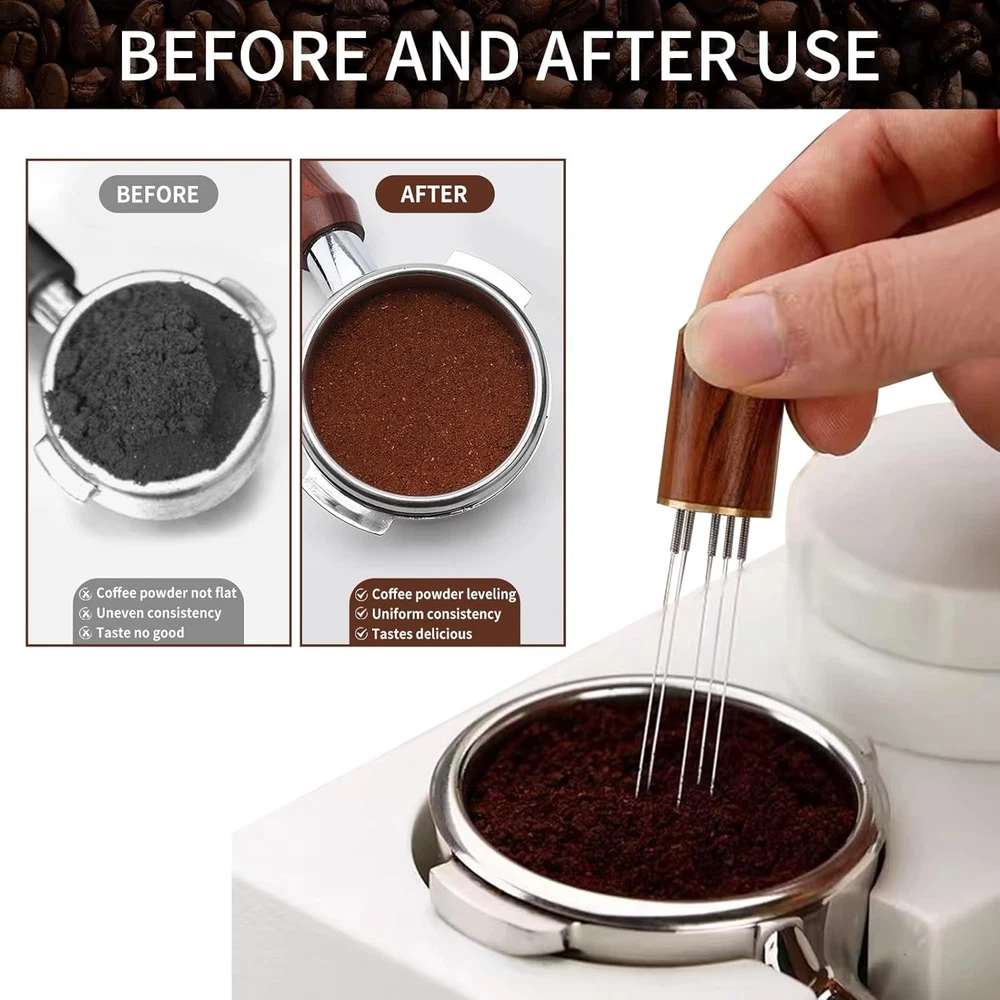 Coffee Tamper Set Espresso Accessories Kit Barista Tools 23 Pcs Description : 24Pcs espresso accessories tools barista set including1* 51mm coffee tamper 1* latte art pen 16* decorating stencils 1* coffee stirring spoon 1* 350ml milk frothing pitcher 1* coffee tamper mat 1 * barista towel 1*WDT tool 1*Puck Screen this kit isIdeal Gift for Coffee Lovers High-quality food grade and 316 stainless steel tamping base, high-temperature resistance, corrosion resistance, resistance Acid and alkali resistance, not easy to rust, solid wood handle easy to clean smooth surface, ergonomic handle provides comfort and precise control High quality food-grade316stainlesss teel Premium Materials milk frother marked with scales on the inside and outside for easy and accurate measurements ergonomic handle for it is dishwasher safe food-grade304 stainless steel espresso puck screen effectively isolating coffee grounds to prevent clogging, the silicone pad serves to safeguard your countertop and espresso tamper from potential damage , 304 stainless steel distribution tool art pens and decorative stencils can draw beautiful coffee patterns stirring spoon is the perfect coffee companion