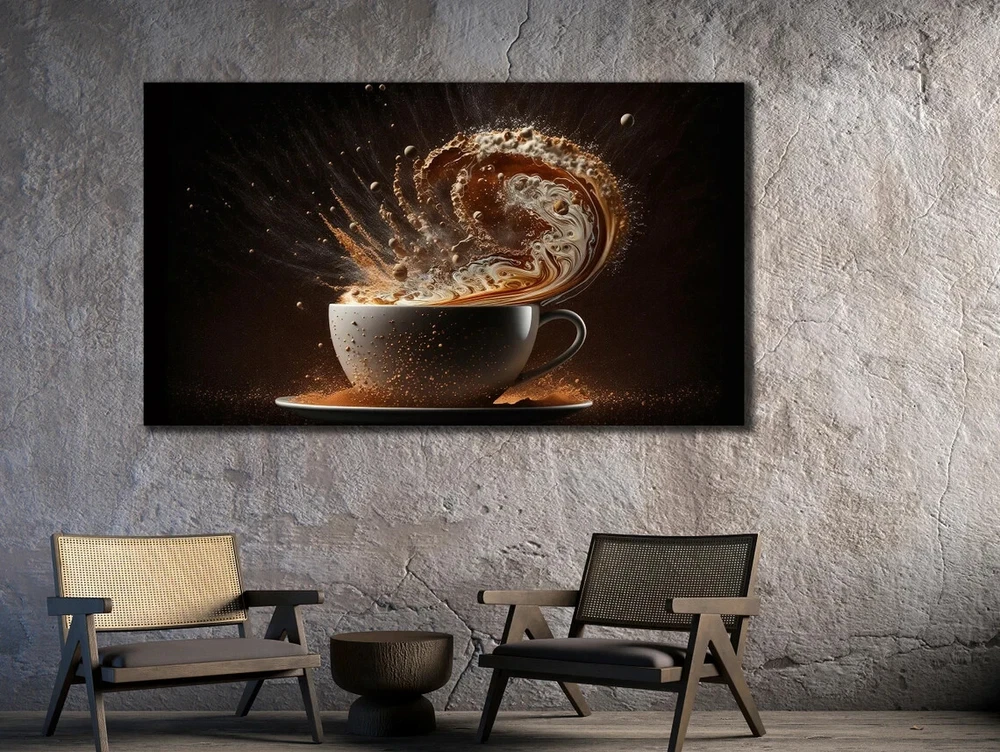 Coffee With Cup Art Stunning Abstract Unframed Canvas Print Australian Wall Art