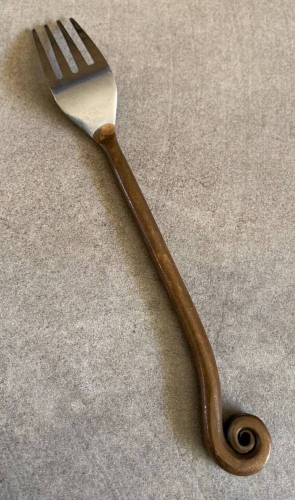 These elegant coiled fiddlehead forks are a stunning vintage find! The copper handles add a warm, rustic charm, and the 8 1/8" size is perfect for serving or display. Despite minor estate wear, they’re in great condition—ideal for collectors or anyone who loves unique, timeless pieces. A beautiful addition to any table setting!