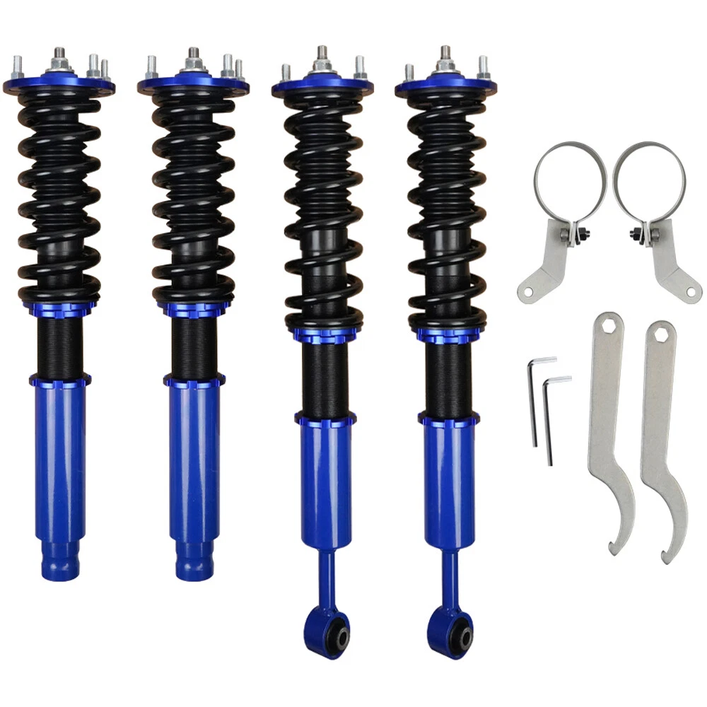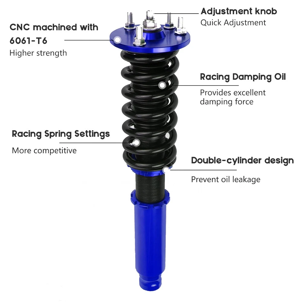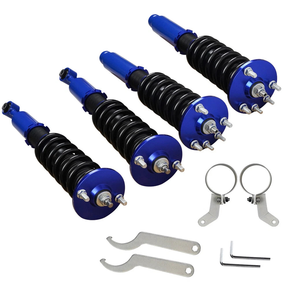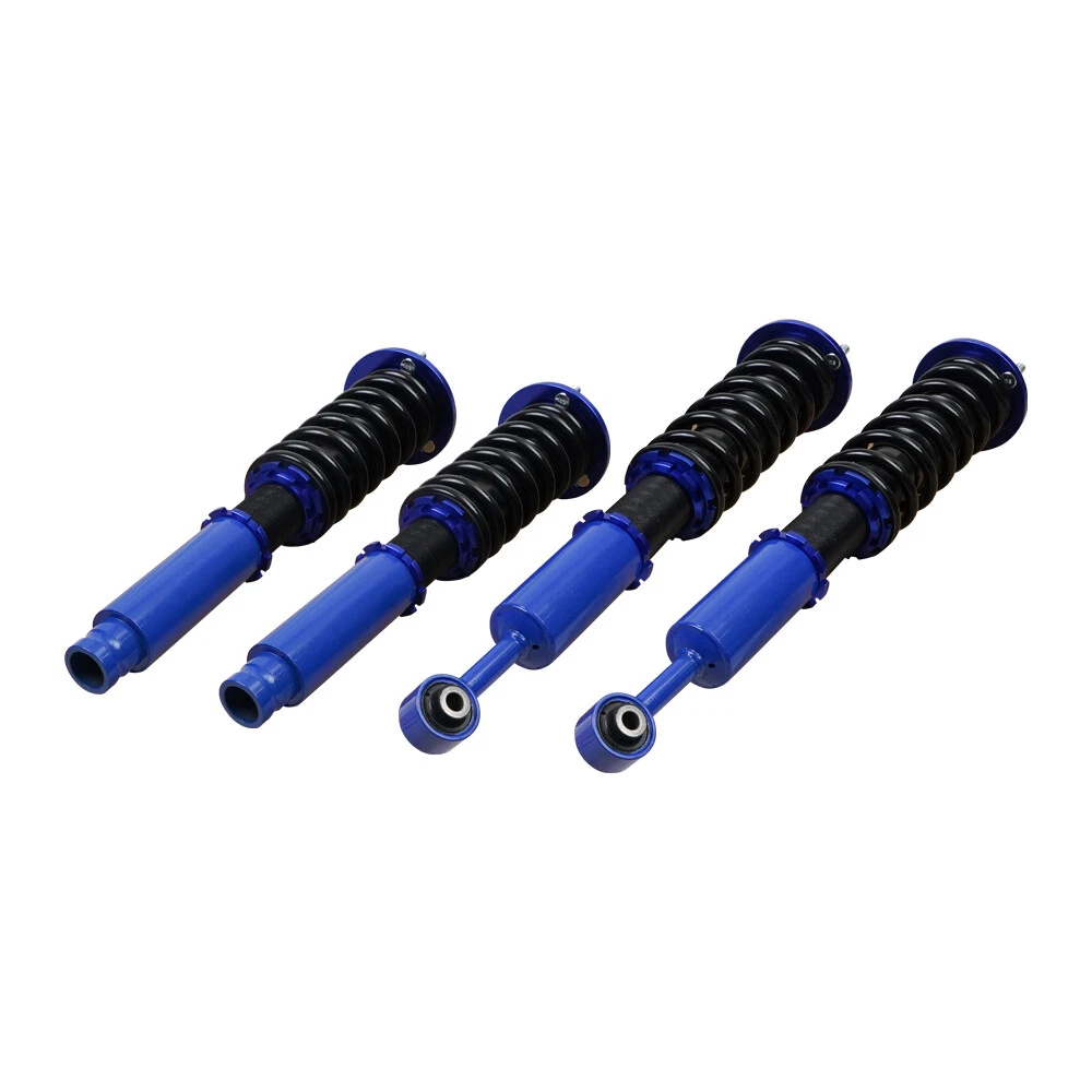 Coilover Suspension Kit Adjustable Height For 03-08 Honda Accord Acura 3.0 V6 Autoparts-Accs Introduction: Autoparts-Accs has been providing the quality products in automotive parts & accessories for years. Being a professional e-Bayer that provides you guys the greater shopping experiences is out mission. Product 100% Brand New Product, Quality Ensured, Provide You the Best Confident and Support! 90 Days Warranty, Money Back Guarantee, No Risk, No Hassle! Shipping Free Shipping. Handling time: 2 Business day. Item is shipped to ebay address.Leaving correct.address can minimize delay. Tracking information. will be sent once item is shipped. Contact We have a friendly and dedicated support teams to handle any problems you come up with our products. Please contact us first via email or message for replacement, refund or technical problem caused by any reason. Item Description: Autoparts-Accs Adjustable Height Coilover Suspension Kit For 03-08 Honda Accord Acura 3.0 V6 👀【APPLICABILITY】 the coilover suspension struts fit for 2004-2008 Acura TSX /2003-2007 Honda Accord. Professional installation recommended. 👀【ADJUSTABLE PERFORMANCE】2 piece front( 8kg/1), 2 pieces rear (6kg/1). The Coilover Struts is able to Independently adjust lower mount allows precise adjustment of the vehicle's height without affecting the stroke. You can according to personal needs to adjusted to personal satisfaction device within a certain range. 👀【24 Rebound Force Levels for More Control】 Level 0-8 suggest for street use;Level 9-16 suggest for mountain anfractuosities use;Level 17-24 suggest for race tracks use. You can adjust it at any time to suit your needs. 👀【Spring Rate】 Spring rate Front: 10 kg/mm (560 lbs/in); Spring rate Rear: 6 kg/mm (336 lbs/in); Hi Tensile performance spring - Under 600,000 times continuously test, the spring distortion is less than 0.04%. Plus, the special surface treatment is to improve the durability and performance. 👀【Lowering Kits】 The height adjustable by 1-3 inches, allowing you to have a more aggressive stance, allowing you to have a more aggressive stance.This design helps eliminate turning noise and also improves steering feel and response.(NOTE): These coilovers struts will "Lower your car" and DOES NOT keep to original ride height. 👀【Quick Installation Guide】 We offer a quick installation guide service. After purchasing coilover, we will provide you with the most comfortable parameters for a quick installation after we have tested it in car. (Note: the experience varies from person to person, so you can still adjust it at any time to suit your needs) 👀【NOTIFICATION】 Our Coilover Shocks are specifically designed to provide smooth, safe rides and provide drivers with superior driving control, helping them find ride comfort and improved handling. Any questions about the product, please contact us in time Features: Ride Height Adjustable - Drops From 1 to 3 Inch From Factory Ride Height Independent Ride Height And Spring Tension Settings High Rigidity 55CrSi Steel Cold-bent Coil Springs Anodized Shock Body With Anti-Corrosion Coating CNC Billet Aluminum Parts/Hardware Specifications: 100% Brand New Warranty :90 Day Free Reurn:30 Day Color:As Show Top mounts: Front pillow ball top mounts Adjustable height: Yes, lowering 1" to 3" Shock length (Front):480mm-575mm Shock length (Rear):590mm-700mm Adjustable camber plate: No Spring rate Front: 10 kg/mm (560 lbs/in) Spring rate Rear: 6 kg/mm (336 lbs/in) Shock type: Twin tube Spring Preload: 7-10 mm Color: Blue Fits for: For Acura TSX 2004-2008 For Honda Accord 2003-2007 Packing List: 1 x Set of Coilover Spring Kit (2 Front + 2 Rear) 1 x Pair of wrenches for height adjustment ( as shown in the picture ). NOTE: (1) Items would be shipped within 24 hours with cleared payment(Exclude Weekend and Holidays) (2) Items wont be shipped to Puerto Rico(Please check your address before placing an order!) (3) Please allow 1-3mm differs due to manual measurement. Due to the different display and different light, the picture may not reflect the actual color of the item (4)It would be highly appreciated if you might contact us first once you have any problems concerning the items. And you can expect all the issues would be resolved ASAP! Payment Delivery details Terms of sales About us Contact us Payment 1.Payment must be received within 7 days after winning the item,UPI (Unpaid Item Case) will be filed automatically if buyers fail to make the payment in 7 days after item ends. 2.If you have difficulty paying for the item, please email us to cancel the order Delivery details 1.Items will be sent out in 48 hours on payment received from Monday to Friday. Orders during weekends and holidays will be posted in the following working day. 2.Please make sure your shipping address and the order information is correct before placing an order. We will not be responsible for item loss due to wrong or unknown address. Terms of sales 1.We accept 30 days return/refund guarantee 2.If the item you received is faulty, damaged or incorrect, or any further problems, you can return it for replacement or refund, please contact our customer service on eBay within 30 days from item received. 3.For damaged items on arrival, please contact us immediately, sending us an email with a photo is preferred. We will offer solutions to such cases. Full refund or replacement will be guaranteed. About us Welcome to Super Auto Parts Processing Plant! we have been providing the quality products in automotive parts & accessories for years. Being a professional e-Bayer that provides you guys the greater shopping experience is our mission. Contact us 1.Please contact us first if you have any questions such as product damaged, item not arrived, wrong item sent and item does not work. All those issues would be solved immediately with your satisfactory! 2. Please contact us first before you left us a negative/neutral feedback and we are pleased to