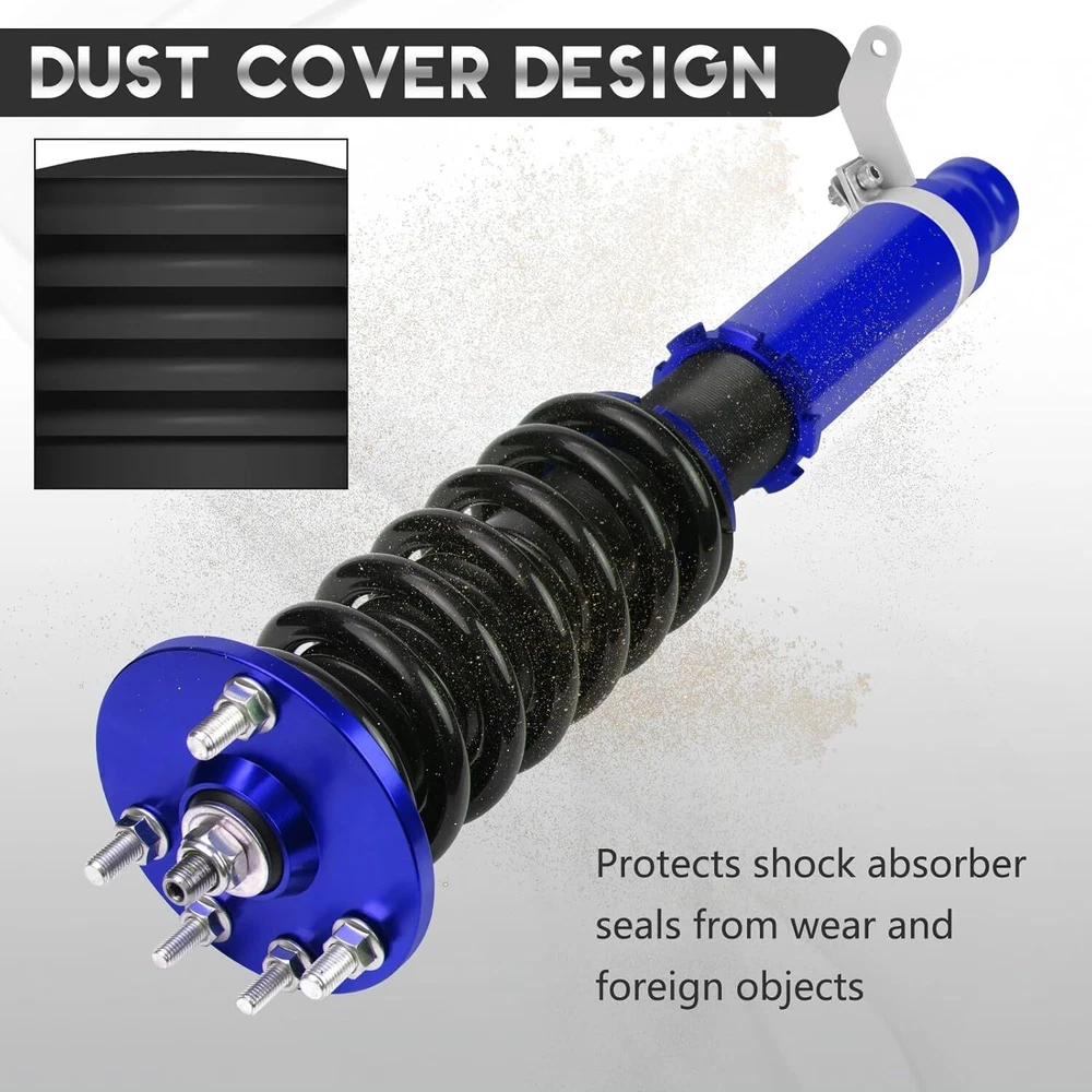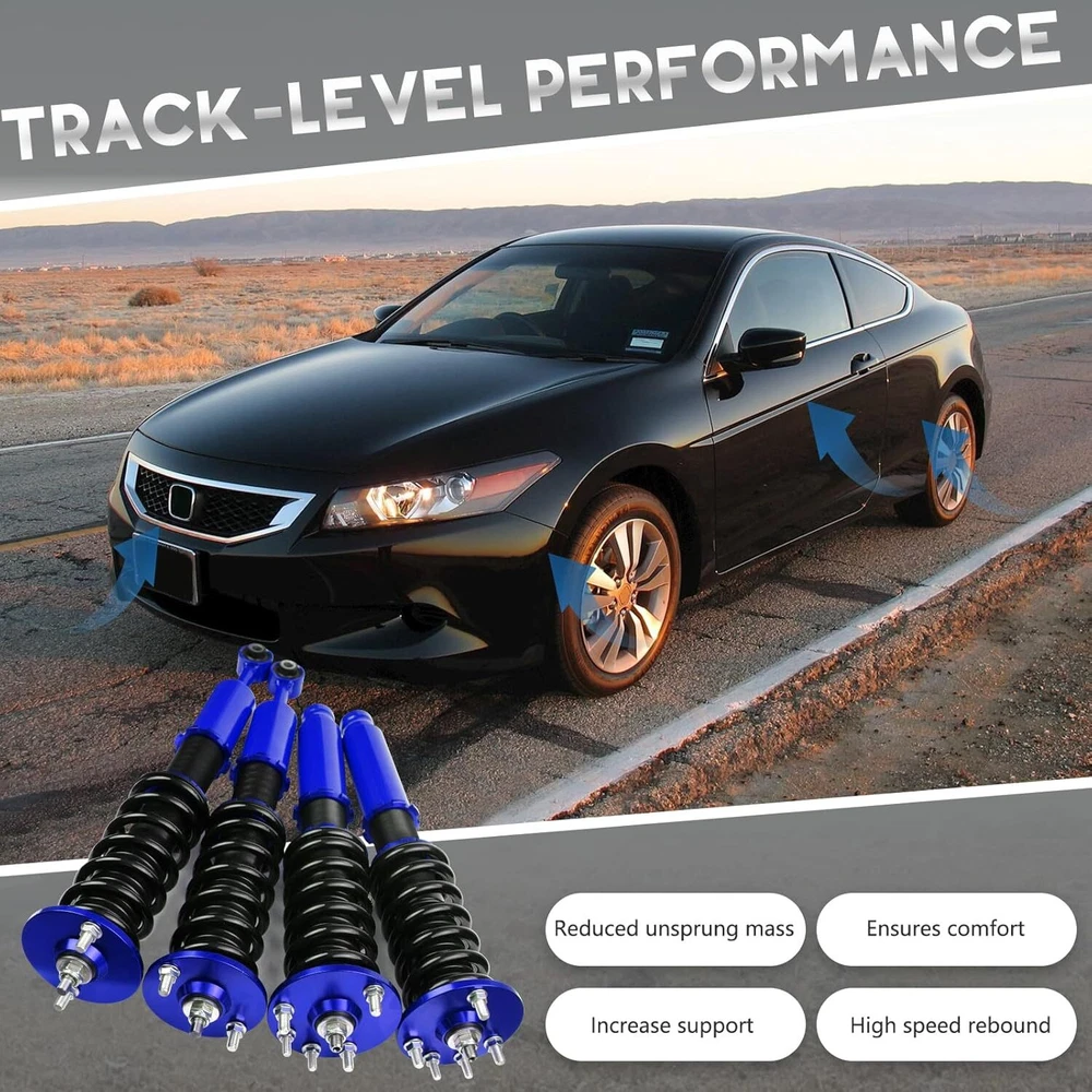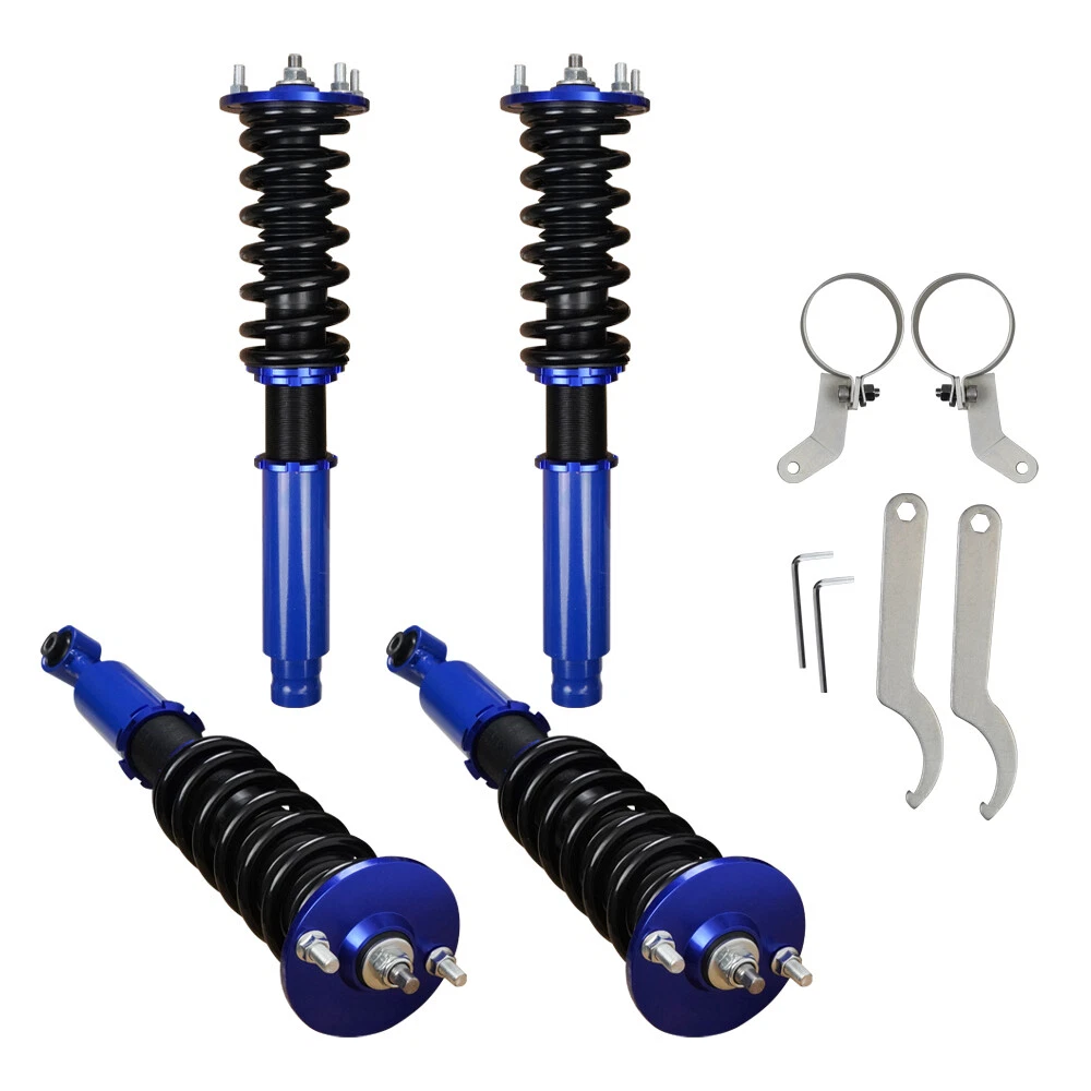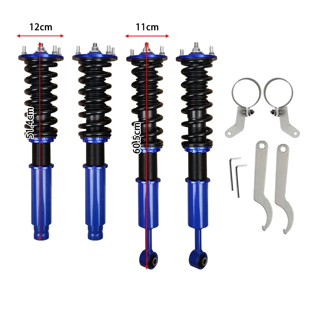 Coilover Suspension Kit Adjustable Height For 03-08 Honda Accord Acura 3.0 V6 Autoparts-Accs Introduction: Autoparts-Accs has been providing the quality products in automotive parts & accessories for years. Being a professional e-Bayer that provides you guys the greater shopping experiences is out mission. Product 100% Brand New Product, Quality Ensured, Provide You the Best Confident and Support! 90 Days Warranty, Money Back Guarantee, No Risk, No Hassle! Shipping Free Shipping. Handling time: 2 Business day. Item is shipped to ebay address.Leaving correct.address can minimize delay. Tracking information. will be sent once item is shipped. Contact We have a friendly and dedicated support teams to handle any problems you come up with our products. Please contact us first via email or message for replacement, refund or technical problem caused by any reason. Item Description: Autoparts-Accs Adjustable Height Coilover Suspension Kit For 03-08 Honda Accord Acura 3.0 V6 👀【APPLICABILITY】 the coilover suspension struts fit for 2004-2008 Acura TSX /2003-2007 Honda Accord. Professional installation recommended. 👀【ADJUSTABLE PERFORMANCE】2 piece front( 8kg/1), 2 pieces rear (6kg/1). The Coilover Struts is able to Independently adjust lower mount allows precise adjustment of the vehicle's height without affecting the stroke. You can according to personal needs to adjusted to personal satisfaction device within a certain range. 👀【24 Rebound Force Levels for More Control】 Level 0-8 suggest for street use;Level 9-16 suggest for mountain anfractuosities use;Level 17-24 suggest for race tracks use. You can adjust it at any time to suit your needs. 👀【Spring Rate】 Spring rate Front: 10 kg/mm (560 lbs/in); Spring rate Rear: 6 kg/mm (336 lbs/in); Hi Tensile performance spring - Under 600,000 times continuously test, the spring distortion is less than 0.04%. Plus, the special surface treatment is to improve the durability and performance. 👀【Lowering Kits】 The height adjustable by 1-3 inches, allowing you to have a more aggressive stance, allowing you to have a more aggressive stance.This design helps eliminate turning noise and also improves steering feel and response.(NOTE): These coilovers struts will "Lower your car" and DOES NOT keep to original ride height. 👀【Quick Installation Guide】 We offer a quick installation guide service. After purchasing coilover, we will provide you with the most comfortable parameters for a quick installation after we have tested it in car. (Note: the experience varies from person to person, so you can still adjust it at any time to suit your needs) 👀【NOTIFICATION】 Our Coilover Shocks are specifically designed to provide smooth, safe rides and provide drivers with superior driving control, helping them find ride comfort and improved handling. Any questions about the product, please contact us in time Features: Ride Height Adjustable - Drops From 1 to 3 Inch From Factory Ride Height Independent Ride Height And Spring Tension Settings High Rigidity 55CrSi Steel Cold-bent Coil Springs Anodized Shock Body With Anti-Corrosion Coating CNC Billet Aluminum Parts/Hardware Specifications: 100% Brand New Warranty :90 Day Free Reurn:30 Day Color:As Show Top mounts: Front pillow ball top mounts Adjustable height: Yes, lowering 1" to 3" Shock length (Front):480mm-575mm Shock length (Rear):590mm-700mm Adjustable camber plate: No Spring rate Front: 10 kg/mm (560 lbs/in) Spring rate Rear: 6 kg/mm (336 lbs/in) Shock type: Twin tube Spring Preload: 7-10 mm Color: Blue Fits for: For Acura TSX 2004-2008 For Honda Accord 2003-2007 Packing List: 1 x Set of Coilover Spring Kit (2 Front + 2 Rear) 1 x Pair of wrenches for height adjustment ( as shown in the picture ). NOTE: (1) Items would be shipped within 24 hours with cleared payment(Exclude Weekend and Holidays) (2) Items wont be shipped to Puerto Rico(Please check your address before placing an order!) (3) Please allow 1-3mm differs due to manual measurement. Due to the different display and different light, the picture may not reflect the actual color of the item (4)It would be highly appreciated if you might contact us first once you have any problems concerning the items. And you can expect all the issues would be resolved ASAP! Payment Delivery details Terms of sales About us Contact us Payment 1.Payment must be received within 7 days after winning the item,UPI (Unpaid Item Case) will be filed automatically if buyers fail to make the payment in 7 days after item ends. 2.If you have difficulty paying for the item, please email us to cancel the order Delivery details 1.Items will be sent out in 48 hours on payment received from Monday to Friday. Orders during weekends and holidays will be posted in the following working day. 2.Please make sure your shipping address and the order information is correct before placing an order. We will not be responsible for item loss due to wrong or unknown address. Terms of sales 1.We accept 30 days return/refund guarantee 2.If the item you received is faulty, damaged or incorrect, or any further problems, you can return it for replacement or refund, please contact our customer service on eBay within 30 days from item received. 3.For damaged items on arrival, please contact us immediately, sending us an email with a photo is preferred. We will offer solutions to such cases. Full refund or replacement will be guaranteed. About us Welcome to Super Auto Parts Processing Plant! we have been providing the quality products in automotive parts & accessories for years. Being a professional e-Bayer that provides you guys the greater shopping experience is our mission. Contact us 1.Please contact us first if you have any questions such as product damaged, item not arrived, wrong item sent and item does not work. All those issues would be solved immediately with your satisfactory! 2. Please contact us first before you left us a negative/neutral feedback and we are pleased to