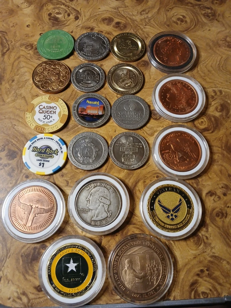 3x HALF POUND .999 COOPER BARS. 10x 1oz COOPER SQUARE. SILVER 10.4 GRAMS. 5X 10 GRAM SILVER BARS. 5X 1 GRAM SILVER BARS. 3X 5 GRAM TRUMP SILVER ROUNDS. 4X PCGS SLABS. 13 ROLLS WHEAT PENNY'S. THERE IS A TOTAL OF 1000 TRULY UNSERCHED WHEAT PENNY'S. 1977-S $1 PF69 ULTRA CAMEO. 1943-D MS 65 5FS. 1958-D 1C. MS 66 RD. 8X GEM STONE SLABS. SAPPHIRE. RUBY. TANZANITE. EMERALDS. 1912 BARBER DIME. 1916 MERCERY DIME. 1945 WASHINGTON QUARTER. 1960 UNCERTALATED ROOSEVELT DIME TONER. 1943-D STEEL WHEAT PENNY. BOLDLY DOUBLED MINTMARK. 1968-D UNCERTALATED TONER 40%SILVER KENNEDY HALF DOLLAR. 1945-P. 1945-D. 1943-S 35%SILVER WAR NICKLES. BOX OF 90 COINS. PENNY'S. BUFFALO NICKLES. JEFFERSON NICKLES. INDAIN HEAD PENNY'S. V-NICKLE. WASHINGTON QUARTERS. KENNEDY HALF DOLLARS. 95% OF THEM ARE UNCERTALATED AND PROOFS. 1oz COOPER ROUNDS. OLD CASINO TOKENS. DATES 1958 TO 2000. Lots of great coins for the price