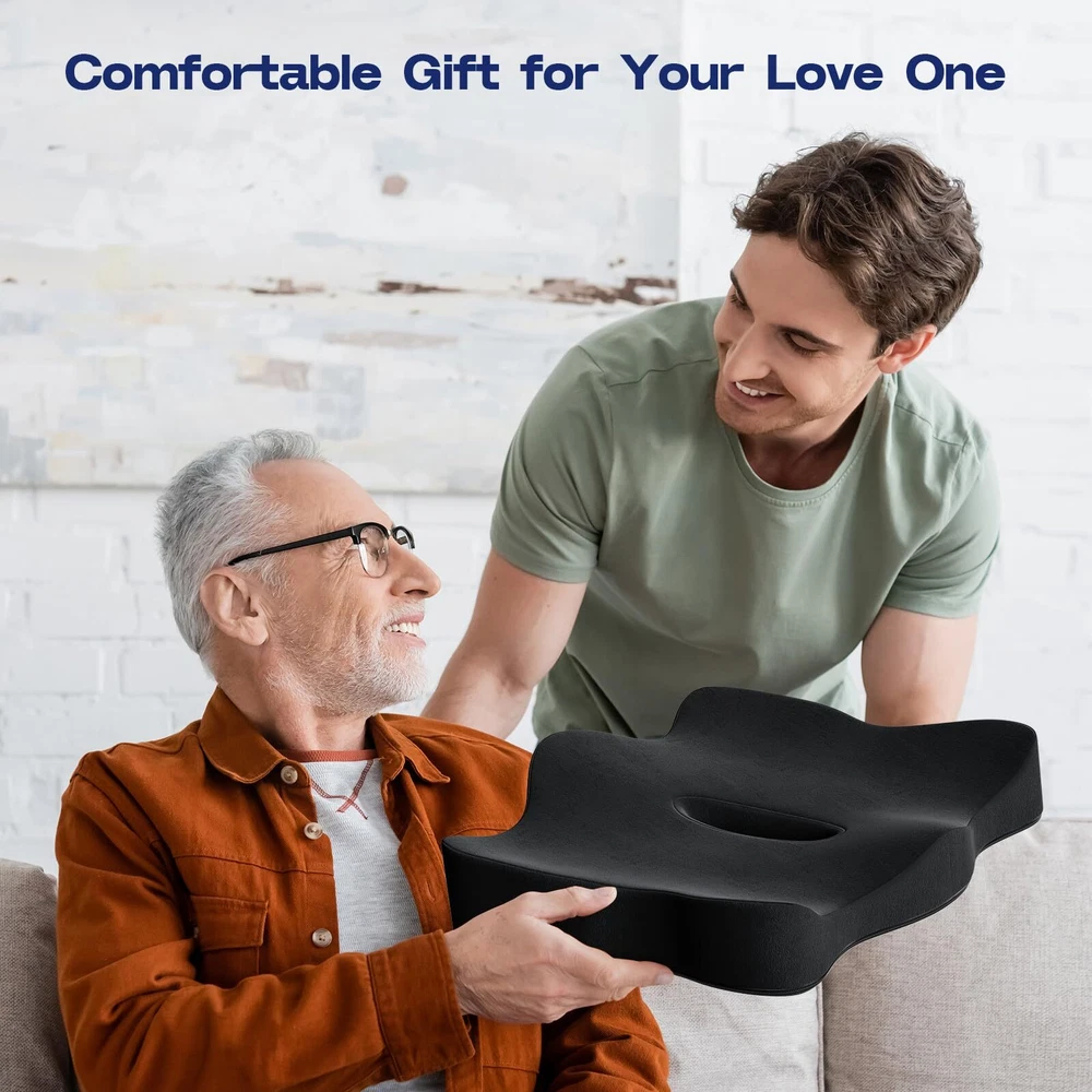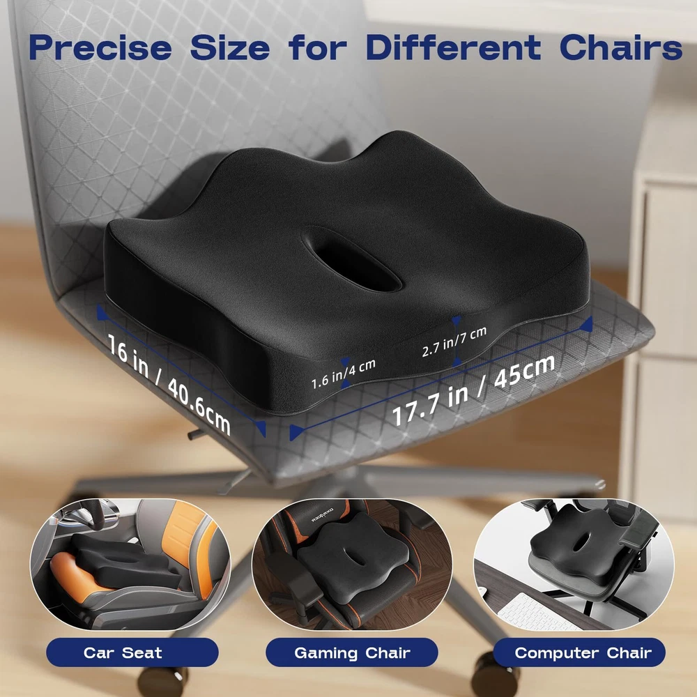 【For Working from Home】 Our orthopedic cushion for sitting is made of premium memory foam, providing proper softness and comfort for long sitting. The memory foam cushion for chair will gradually guide you into a more upright posture, and provide enough support you need to stay comfortable while sitting for long periods. 【For Office & Car Seat】 The size of this office chair butt cushion is 17.7 X 16 inches, it can be able to fit well in most standard office chairs and driver seats. This car butt cushion is compact with a portable storage bag, you can take your comfort seat cushion everywhere—from your office to your car and anywhere else. 【Non-Slip & Machine Washable】 The cover of this memory foam car seat cushion is fully removed with a smooth zipper and machine washable. The bottom has a non-slip surface to ensure the optimum position of the car butt cushion for long trips. This butt cushion for car can also provide a little extra seating height, which may help with sciatic pain relief. 【Supportive & Posture Adjustment】 This ergonomic office chair cushion is designed to support the thighs and hips. Unlike other butt cushion for office chair with large holes, this office chair butt cushion is designed with a properly sized hole to protect the hemorrhoid area and help with sitting posture adjustment. 【Multifunctional Use for All】 memory foam orthopedic seat cushion is supportive but not rigid. Using the memory foam cushion makes sitting for long periods more comfortable than sitting on a seat alone. It is suitable for offices, and working from home. Enjoy the sitting with your friends and colleagues.