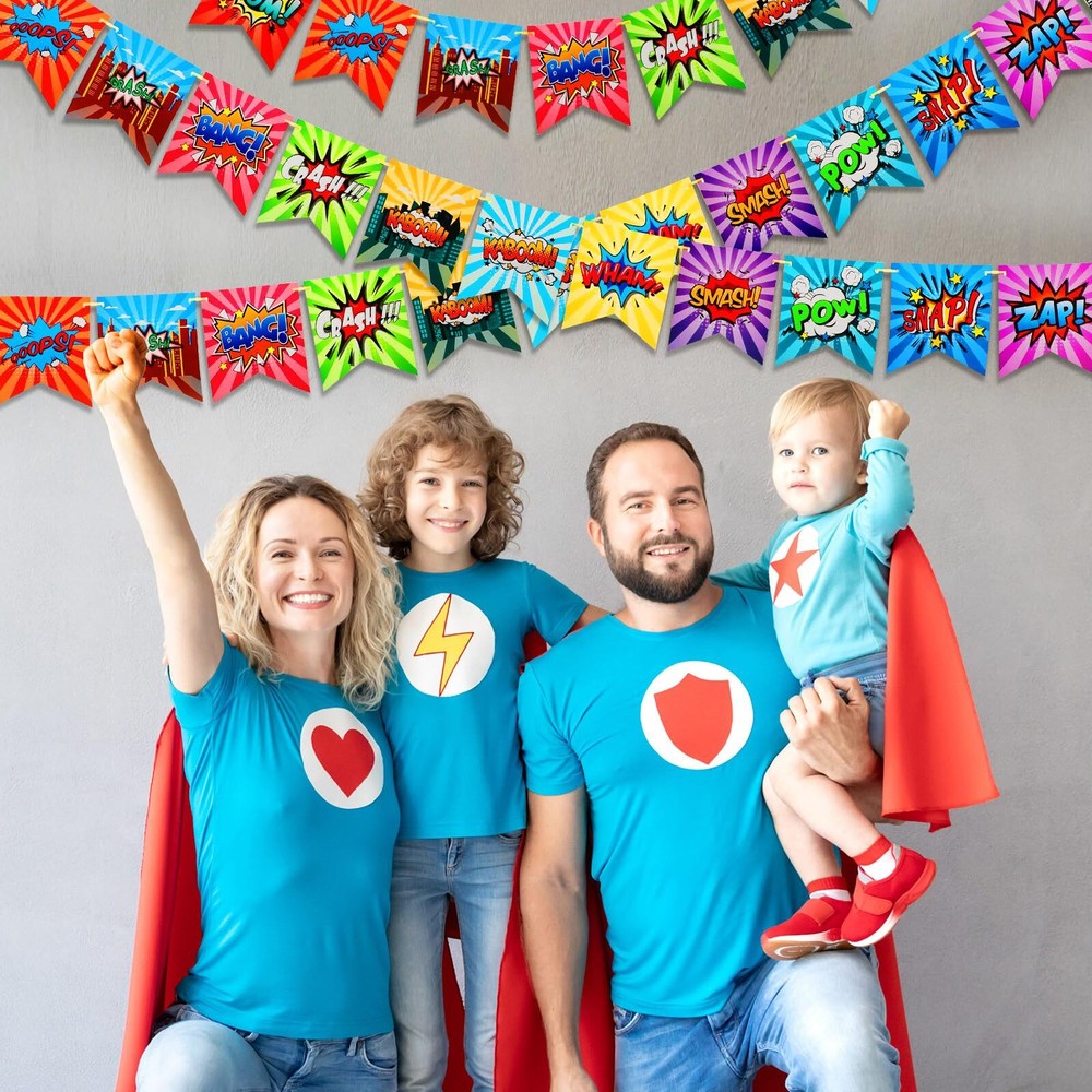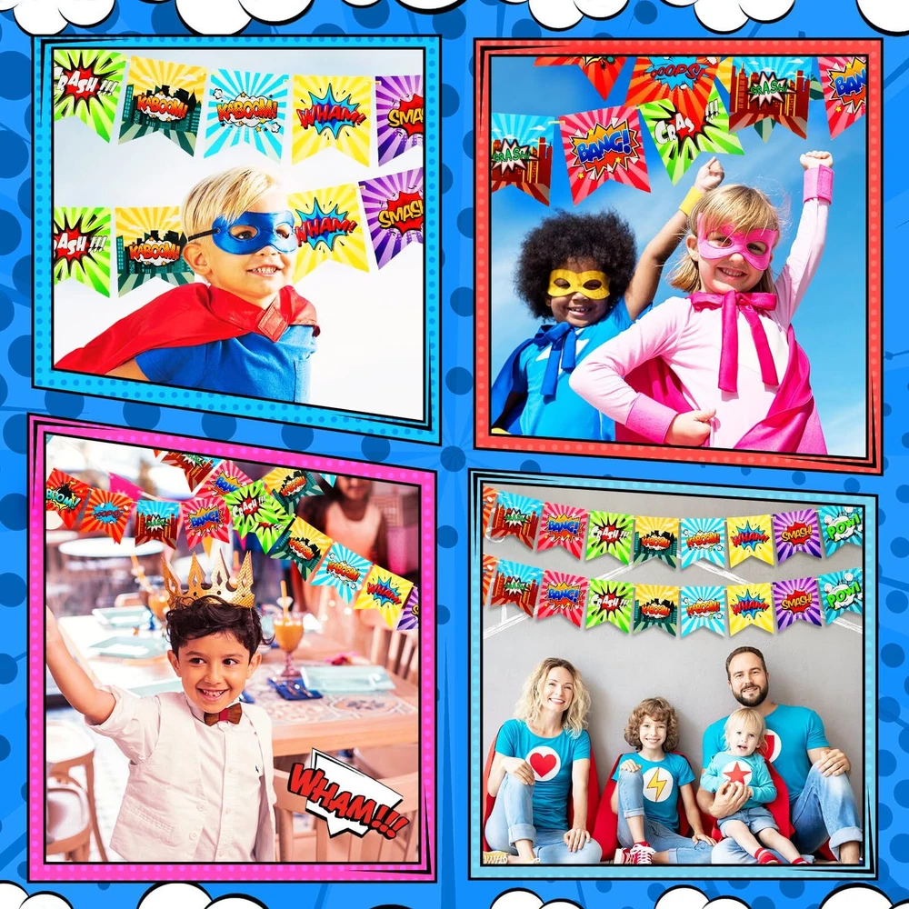 Colarr 4 Pieces Hero Party Decorations Boys Birthday Hero Theme Birthday Bann...