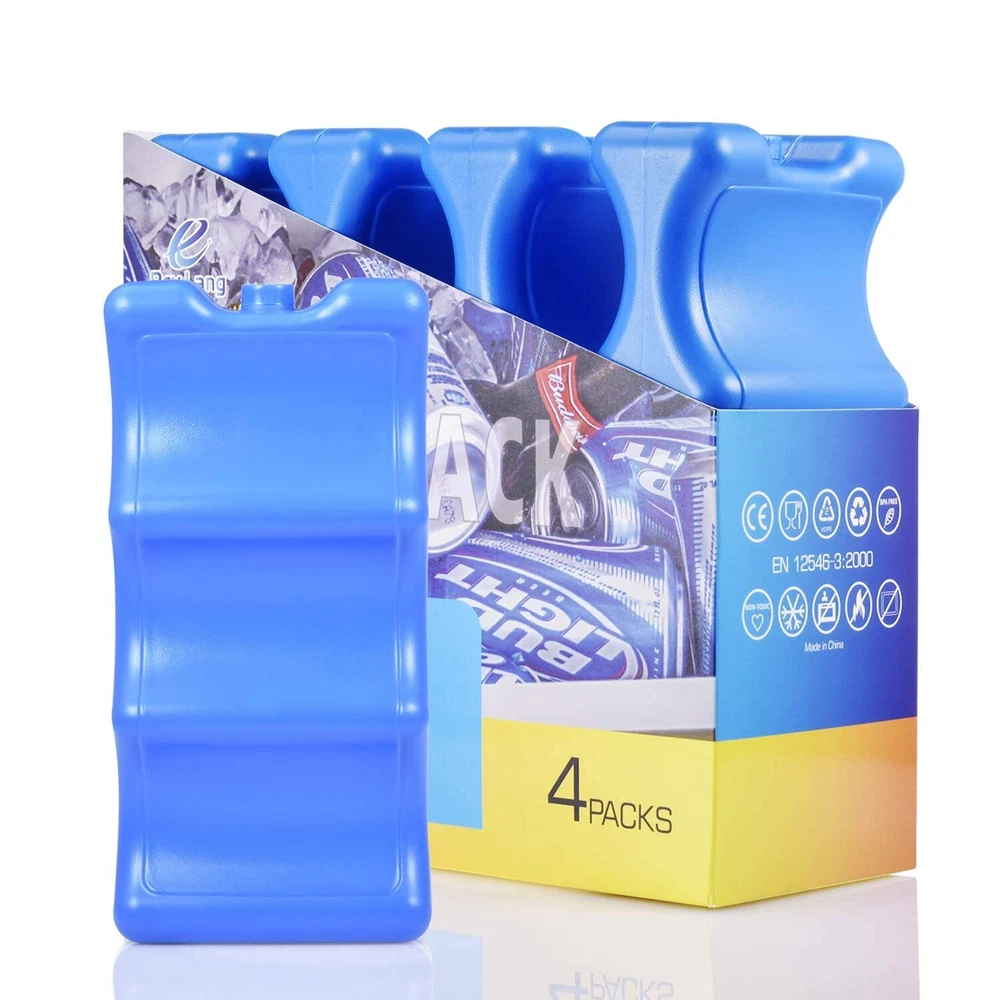 ★ GOOD AND DURABLE: Set of 4 reusable rigid ice packs,each one measures 8.1*3.9*1.8 inches and weights 600 g. Inside ice gel has premium formula and outside is made of food-grade HDPE plastic shell. Reusable, leak-proof and sturdy. It can be brought through TSA security checkpoints when fully frozen or otherwise stored in checked baggage. ★ Ingenious Contoured Design: The Stylish Double-Sided freezer pack has can-shaped contours can make the ice pack and the fresh-keeping product close to the distance. It can keep breast milk baby bottles and your favorite drinks in direct contact with the ice pack – cooling them quicker and longer. ★ EASY FOR USE AND LONG LASTING--Are you tired of cleaning melted ice water? Only need to be frozen at household refrigerator freezer (-10 degrees) for only 3 hours before used. The high performance ice gel inside can absorbs a massive amount of heat and keep cold longer. Formed to fit around breast milk bottle and also canned Soda & Beer. It can keep 6 cans/bottles cold for hours. Stays cold longer than ice with no mess after thawing. ★ SUPER VERSATILE: The long lasting freezer packs are ideal for cans, bottles, beverages and breast milk or anything you need to keep cool in the office, on picnics, road trips, outdoor camping or traveling! Perfect chillers for everyday use in coolers, breast milk bags, lunch boxes and insulated tote bags. ★ QUALITY GUARANTEED--Try the best ice packs available risk-free. You won't regret it. For any quality issues, shoot us an email and we'll fully refund you no questions asked.offers a life-time new replacement, we'll fix it hassle-free!
