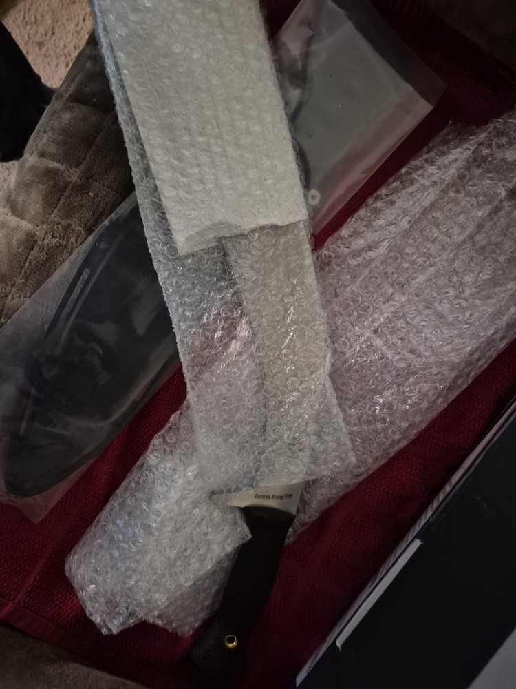 The Cold Steel Kukri Plus is a modern fixed blade knife with a full tang design, perfect for survival situations. The blade color is silver, and it is manufactured by Cold Steel. New and getting hard to find!!!