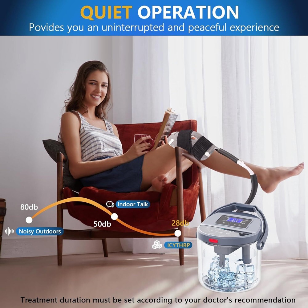 This cold therapy machine is a game-changer for post-surgery recovery! The adjustable timer and steady cold circulation provide amazing pain relief for knees, shoulders, or ankles. The compression pad adds extra comfort while reducing swelling. It's easy to use, quiet, and way better than constantly changing ice packs. Highly recommend for anyone recovering from surgery or dealing with joint pain!
