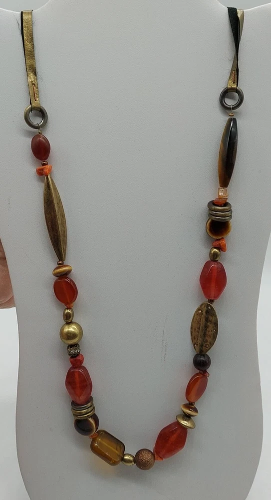 Coldwater Creek Beaded Necklace Ribbon Plastic Metal READ