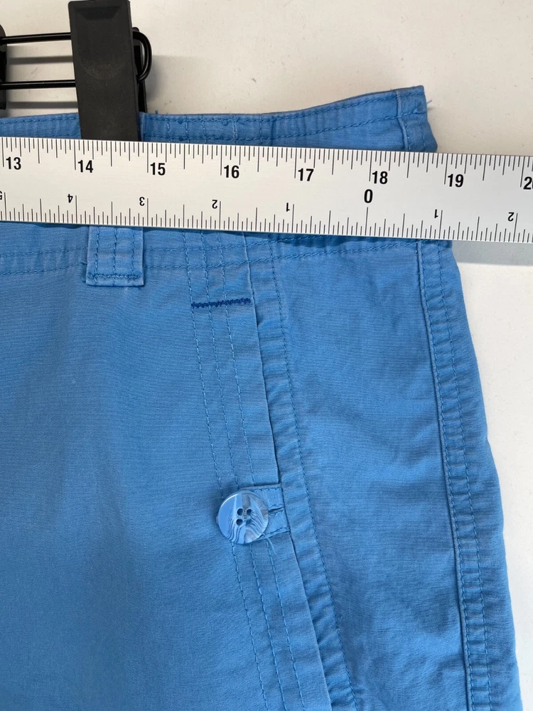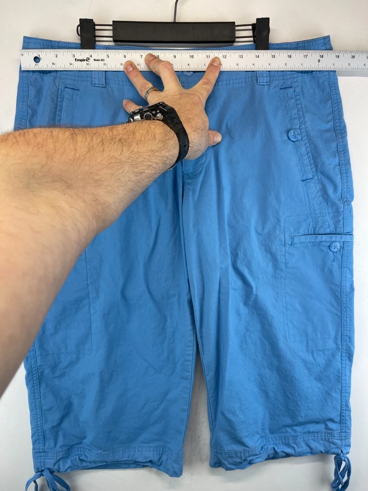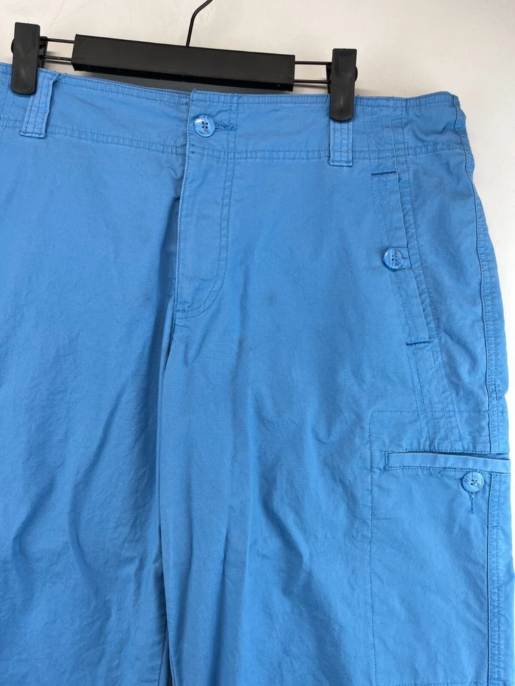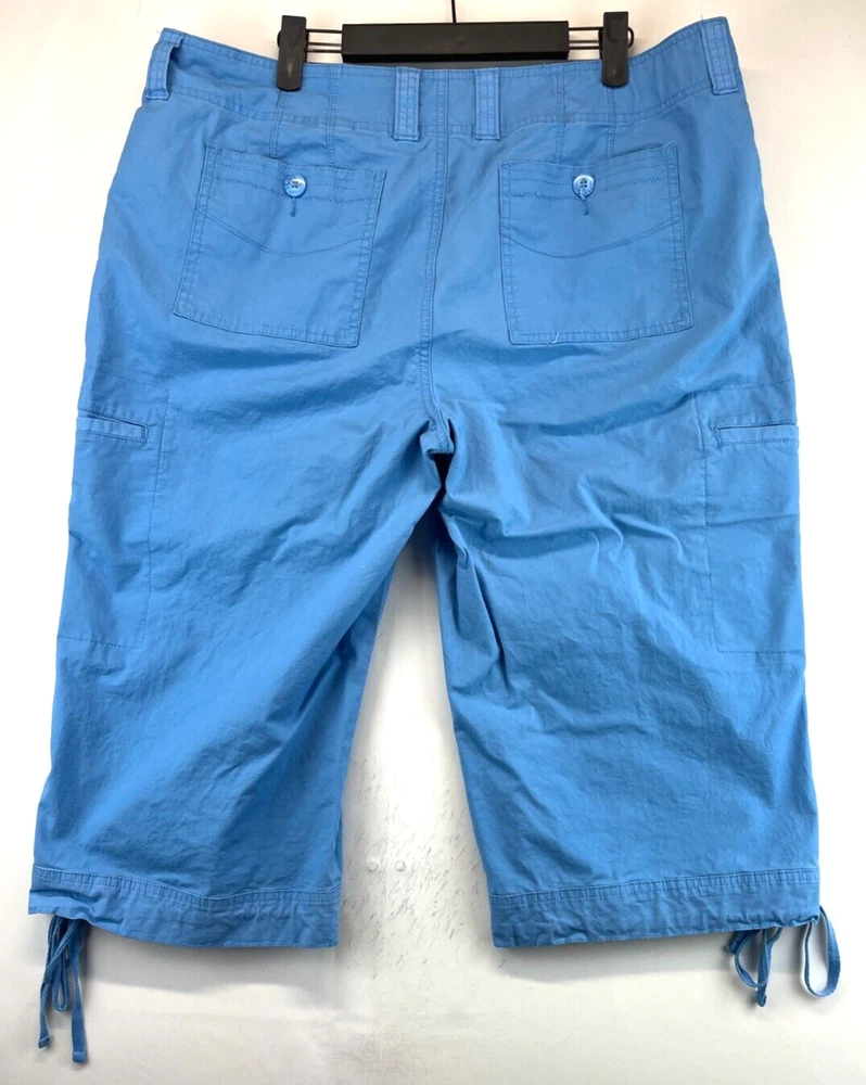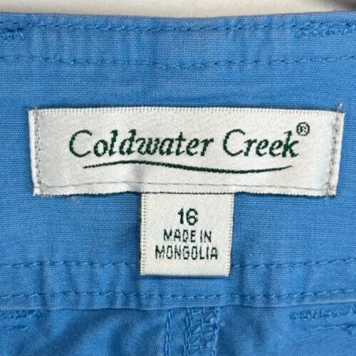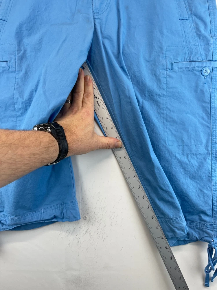 Coldwater Creek Capri Pants in blue, size 16 for women. These pants feature a zip and button closure, with cargo pockets for added convenience. Made of cotton and spandex blend fabric, they have a high rise and a straight leg style. Ideal for travel, casual, or workwear occasions in summer, fall, or spring. The pants have a solid pattern with nature, flower, bohemian, and preppy themes, and can be machine washed for easy care. Good preowned condition with a few dark spots on the front as pictured. These are in otherwise great condition. Please see all photos. For clothing specifically, see photos for all measurements and/or any issues if applicable. Pay close attention to the measurements as the size of the garment may quite possibly be different than the actual measurement(s) due to washing, shrinkage, or stretching as these are used clothes. The size in the title is the size on the tag of the garment. See photos for measurements of actual measurements as they may differ. ALWAYS CHECK THE MEASUREMENTS IN THE PHOTOS. This will remove any questions on measurements as well as always cover the possibility of human error in the listing(s) in the case of a typo or oversight. All clothing and shoes have been washed/cleaned, and comes from a smoke free environment. If shoe trees appear in the photos, they are for photography purposes only to illustrate how the shoes look filled out, and are not included. I am available for questions. I accept or negotiate reasonable offers. Have an amazing day. Thank you.