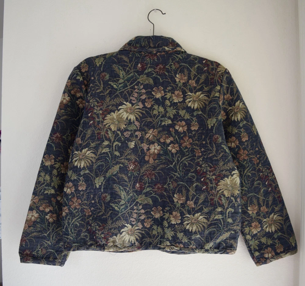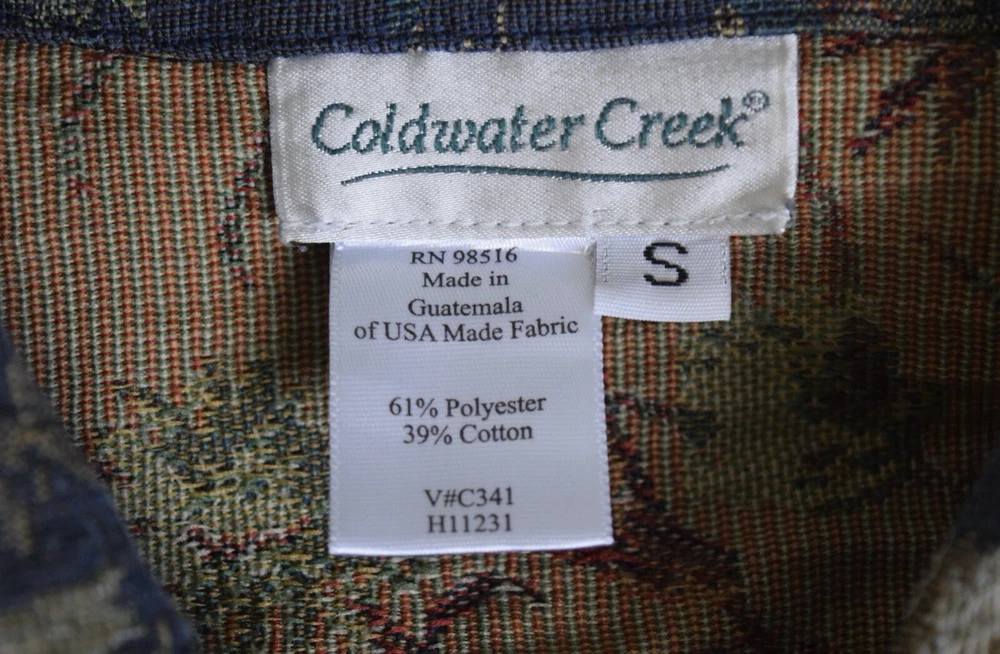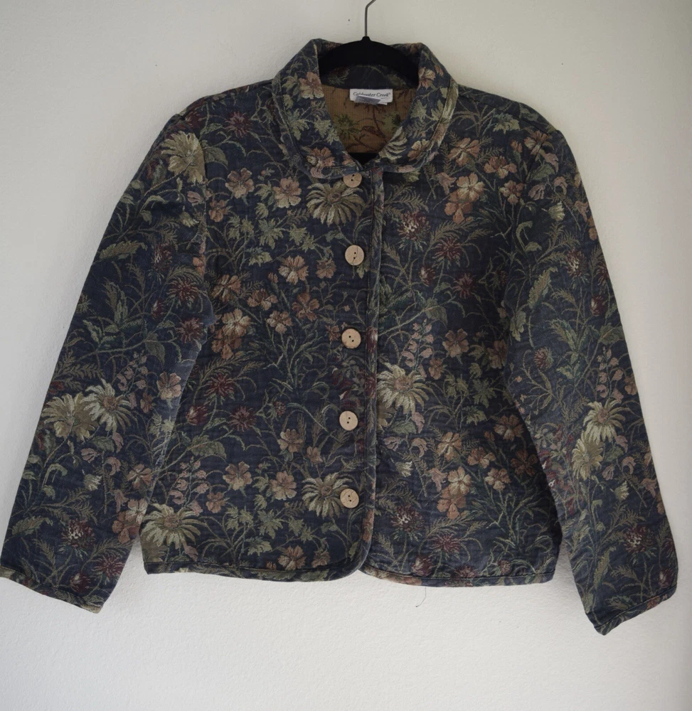 Fit: N/A Closure: Button Garment Care: Machine Washable Season: Fall, Spring, Winter, Summer UPC: Does not apply Theme: Colorful, Flower, Floral, Tapestry, American Insulation Material: N/A Outer Shell Material: Polyester Blend Size Type: Regular Style: Basic Jacket Personalize: No Pattern: Floral Model: N/A Department: Women Lining Material: Polyester Accents: Button Country/Region of Manufacture: China gtin13: Does not apply Type: Jacket Features: Pattern, Lightweight, Collared Jacket/Coat Length: N/A Fabric Type: N/A Occasion: Casual Sleeve Length: N/A Color: Multicolor MPN: N/A Brand: Coldwater Creek Size: S Handmade: No