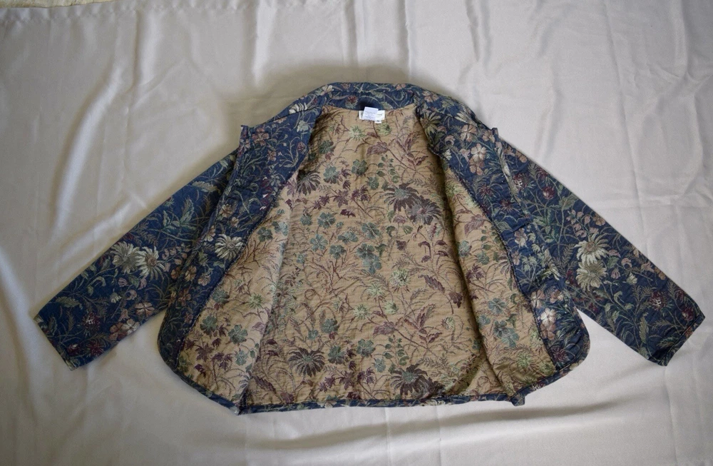 Coldwater Creek Floral Tapestry Brocade Blazer Jacket Navy Floral Size Small