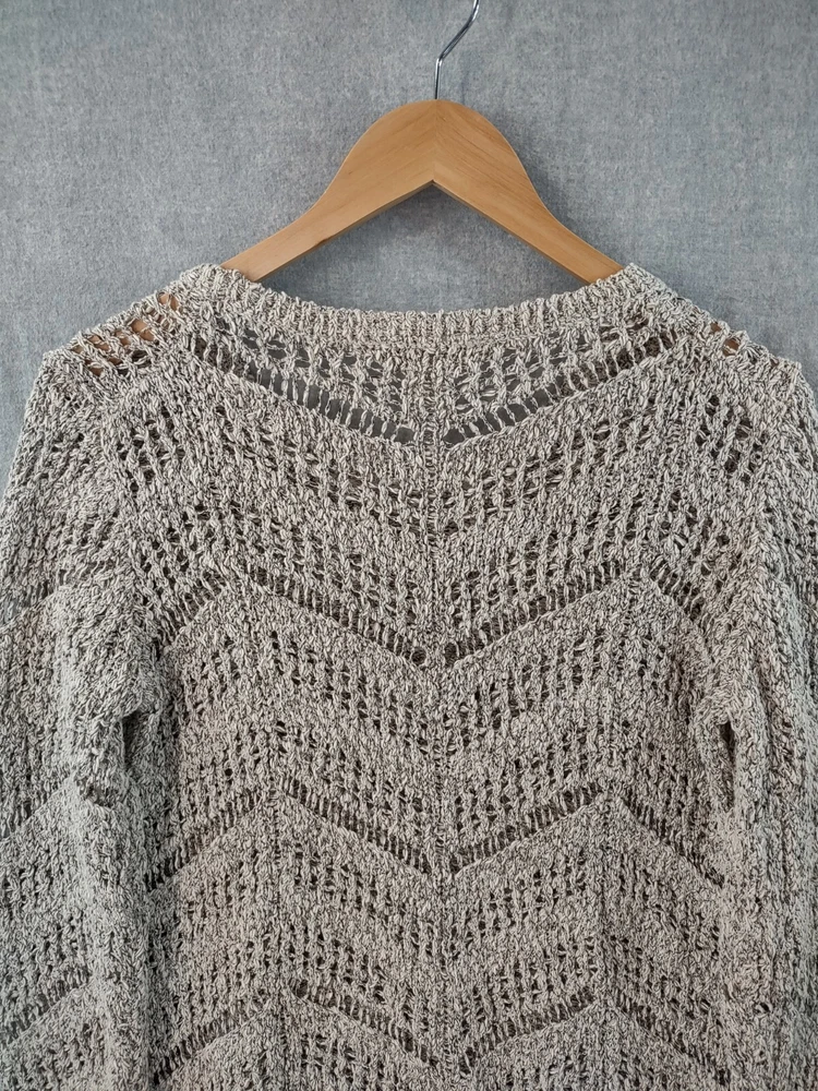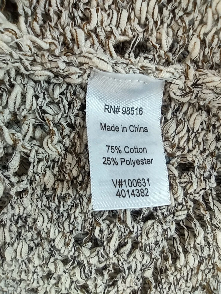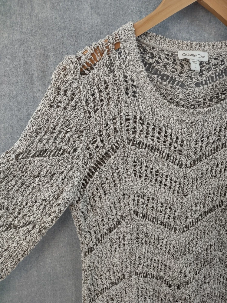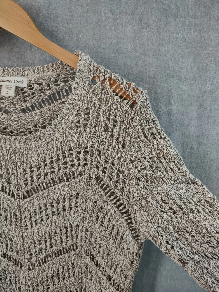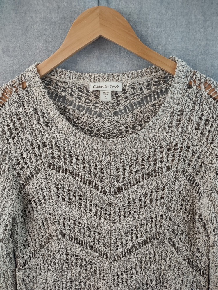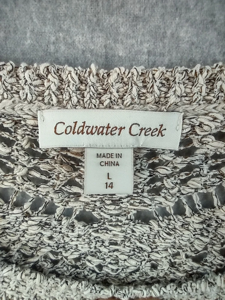 Season: Fall, Spring, Winter Color: Beige Occasion: Casual Type: Sweater Sleeve Length: Long Sleeve Neckline: Scoop Neck Theme: Bohemian, Classic, Western Features: All Seasons, Breathable, Lightweight Department: Women Sleeve Type: Casual Sleeve Garment Care: Machine Washable Style: Pullover Seller Notes: “Excellent pre-owned condition. See the photo gallery to view this items measurements and condition.” Fit: Regular Brand: Coldwater Creek Fabric Type: Crochet Size: L Material: Cotton, Polyester Knit Style: Open-Knit Country of Origin: China Size Type: Regular Accents: Crochet