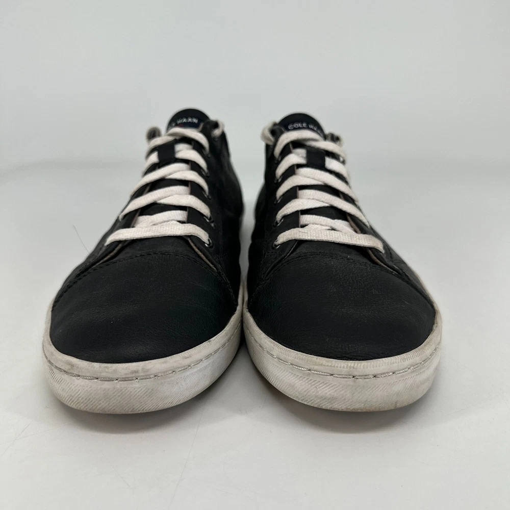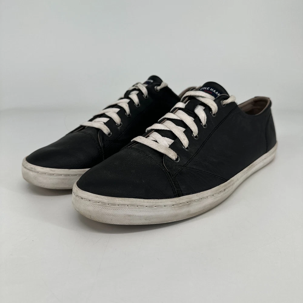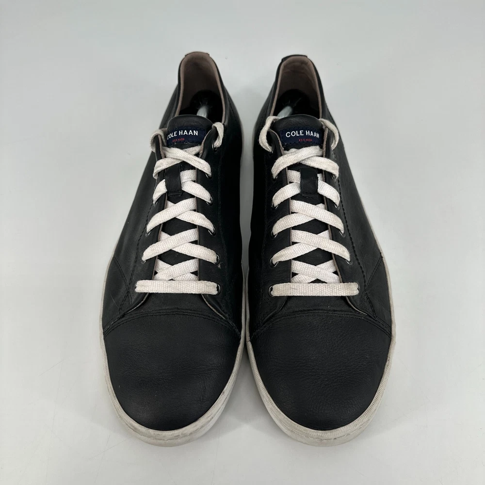 Cole Haan Grand OS Crosscourt II Shoes Mens 13 Black Leather Sneakers Casual In good used condition. Please see photos for additional details and exact condition. Laces are in usable condition with no flaws, but are slightly discolored.