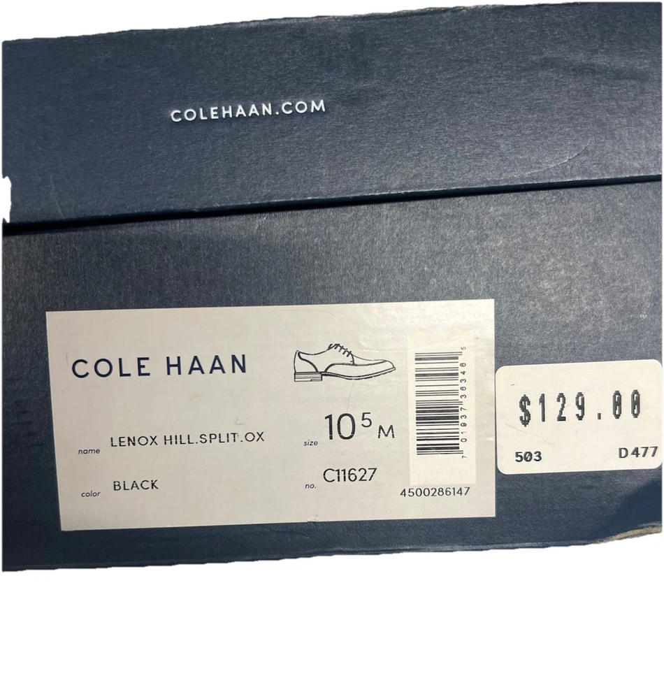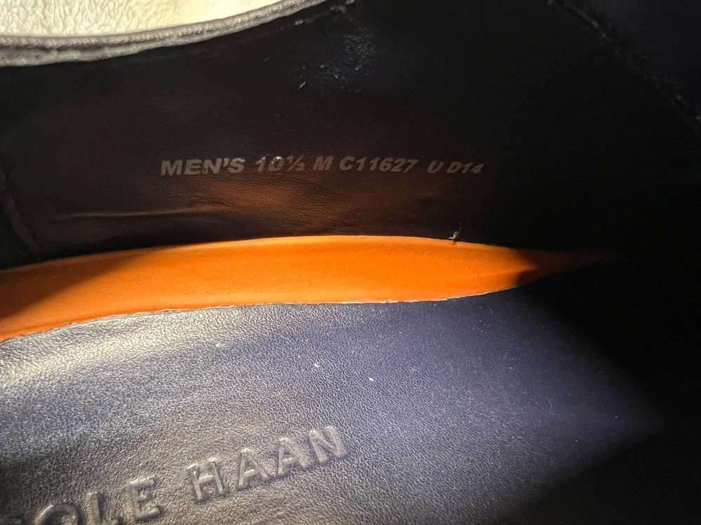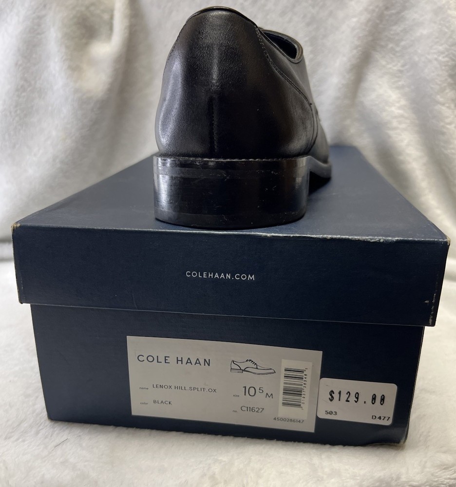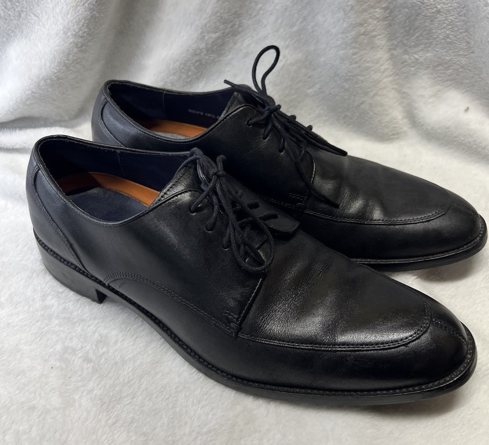 Preowned in Good condition. The Cole Haan Men's Black Leather Lenox Hill Split Toe Derby C71627 size 10.5 M is a stylish and sophisticated dress shoe perfect for any formal occasion. Crafted with high-quality leather and featuring a classic split toe design, these shoes exude a timeless elegance. The Derby style and medium width make them both comfortable and versatile for everyday wear. Made in India, these shoes showcase the Cole Haan brand's signature quality and attention to detail.