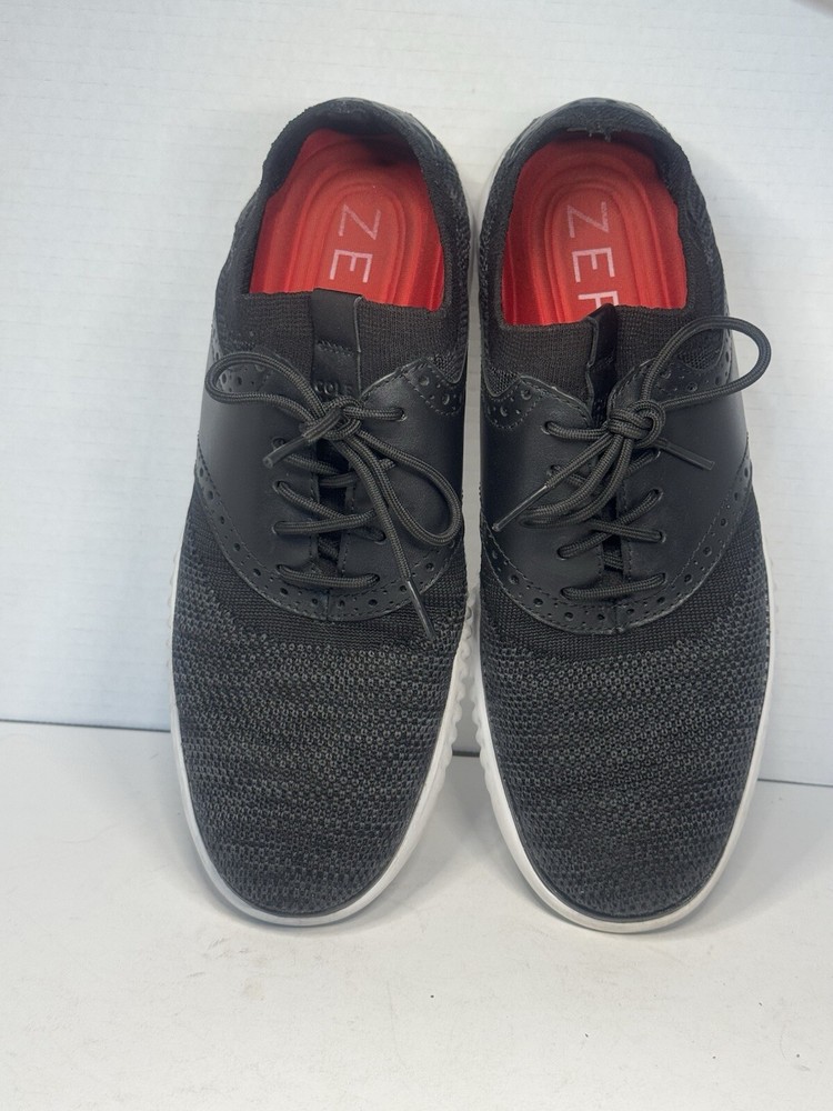 Cole Haan 2.Zerogrand Saddle-Knit Oxford Black/Optic Casual Shoes C25259 Sz 8. Condition is Pre-owned. Shipped with USPS Ground Advantage.