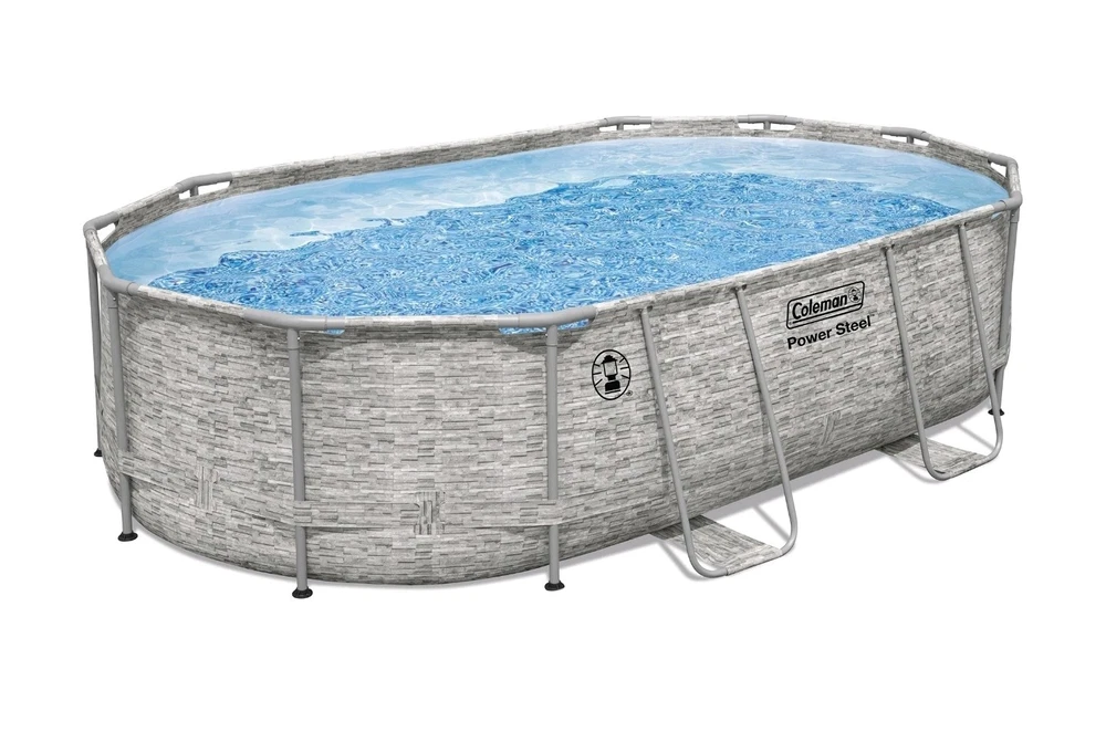The Coleman Power Steel 16' x 10' x 42" Oval Pool Set is a durable and spacious above ground pool perfect for cooling off in the summer heat. Made of polypropylene and steel, this pool features a filter pump system, ladder, and easy draining capabilities for convenience. With a capacity of 2893 gallons, this multicolor pool is designed for easy installation and assembly, making it a great addition to any backyard. The oval shape and height of 42 inches provide plenty of space for splashing and relaxing. Ready to be shipped. Delivers fast. Start off your summer with this great pool