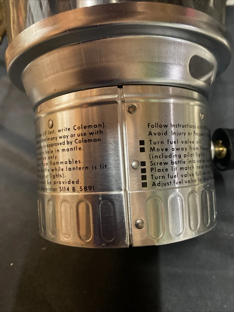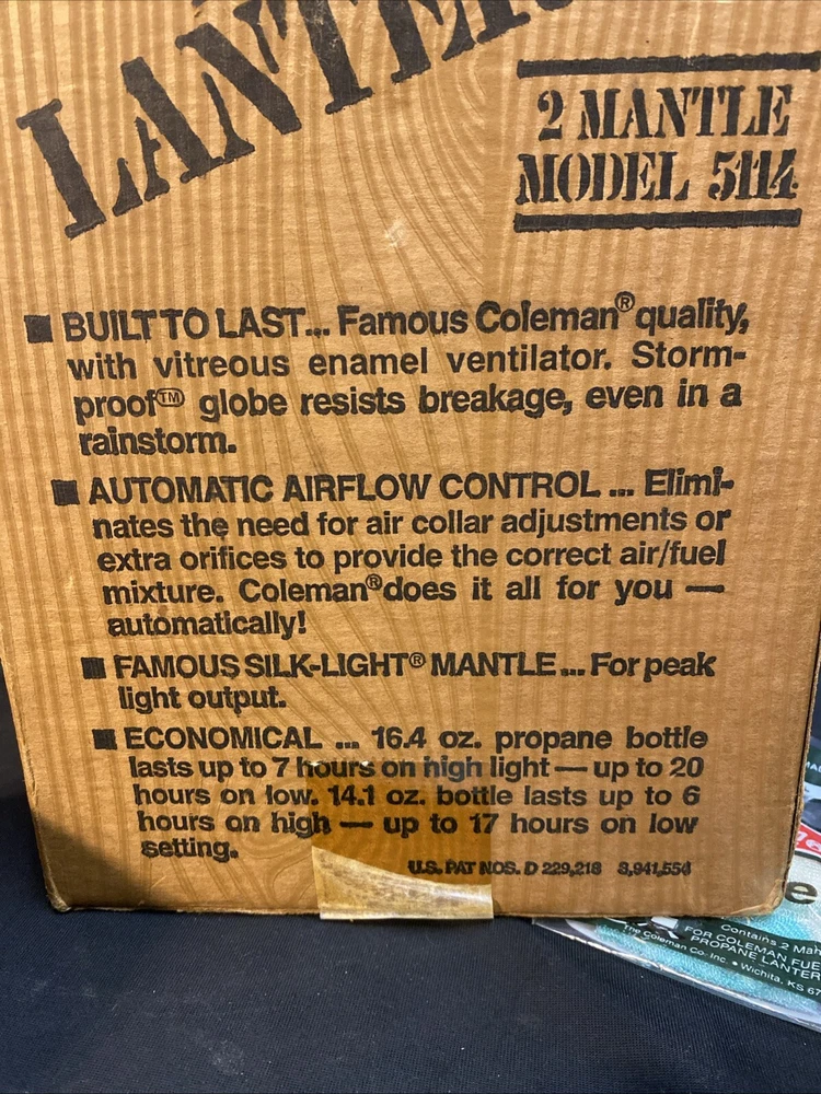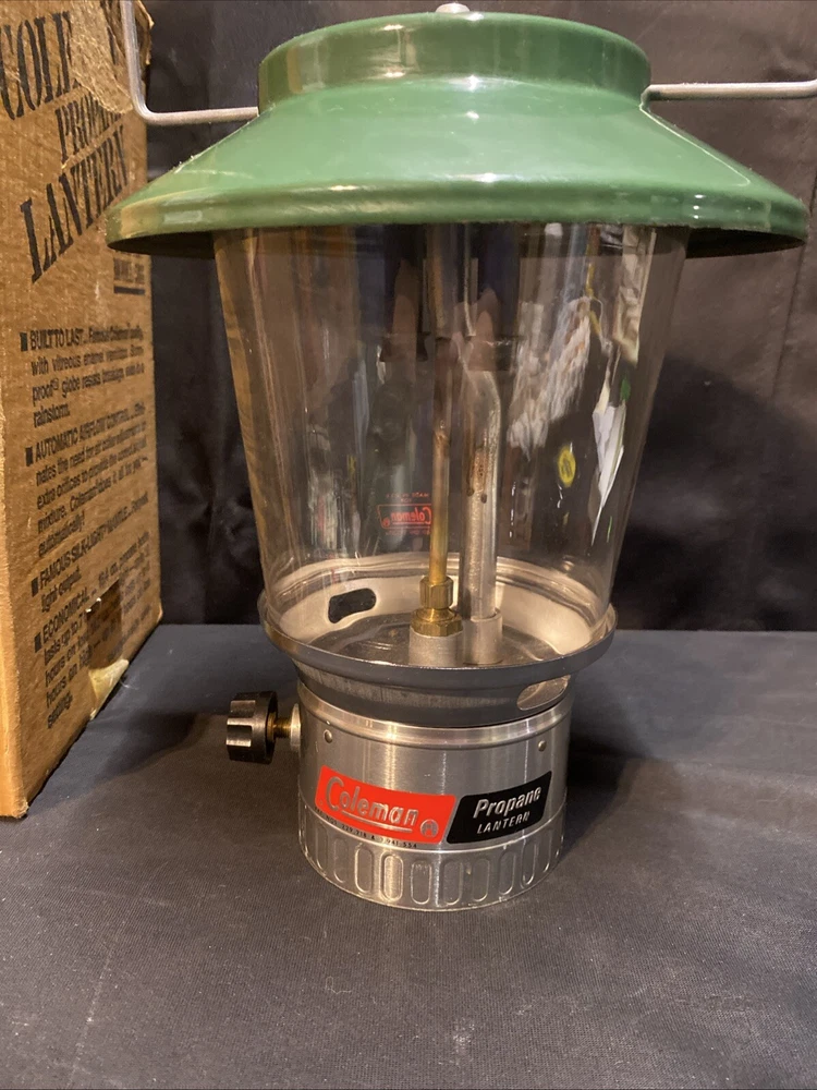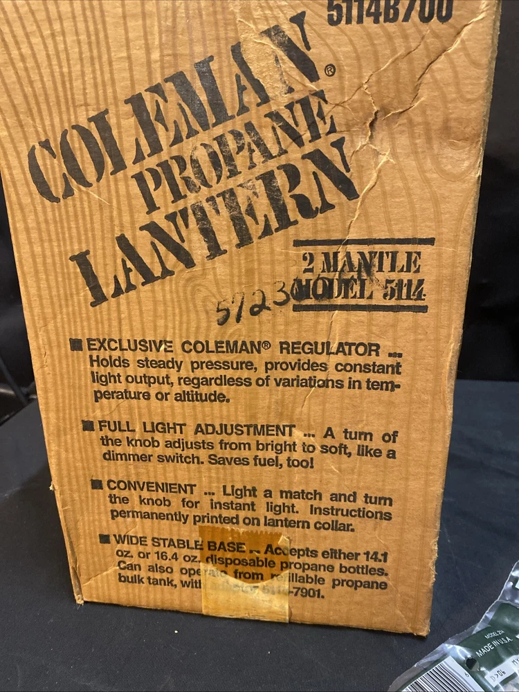 This Coleman 5114 Lantern is a high-quality product that will meet all your camping and hiking needs. It is a lantern featuring a tapered fluted pyrex globe design that ensures maximum durability and longevity. The lantern is powered by propane gas and comes in a green color that adds a touch of elegance to your outdoor setting. The lantern is made of glass and metal materials, and it is manufactured in the United States. This product is perfect for those who are looking for a reliable and efficient lantern for their outdoor adventures. It comes with a box and other extras, making it a great value for your money. Get your hands on this Coleman 5114 Lantern now and enjoy the convenience of a quality product. Comes with some unused mantles. Unsure if they’re useable. Lantern in excellent condition with minimal wear. Box has damage/ writing