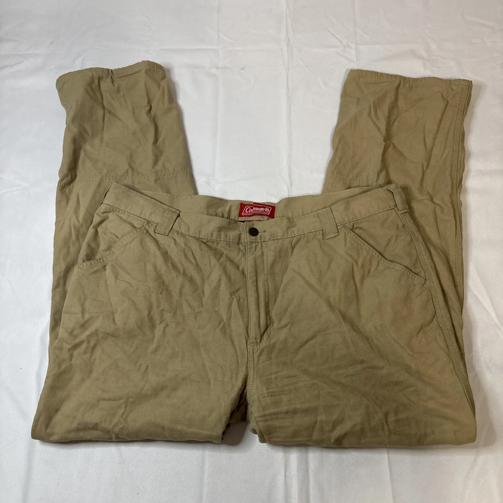 Coleman Chino Work Pants 40x32 Brown Canvas Fleece Blanket Lined Straight Leg. Condition is Pre-owned. Shipped with USPS Ground Advantage.